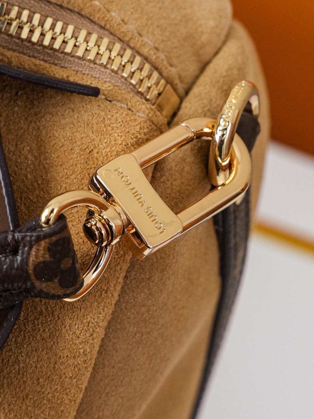 - Material: Suede Leather, Leather Trim, Fabric Lining, Metal Hardware