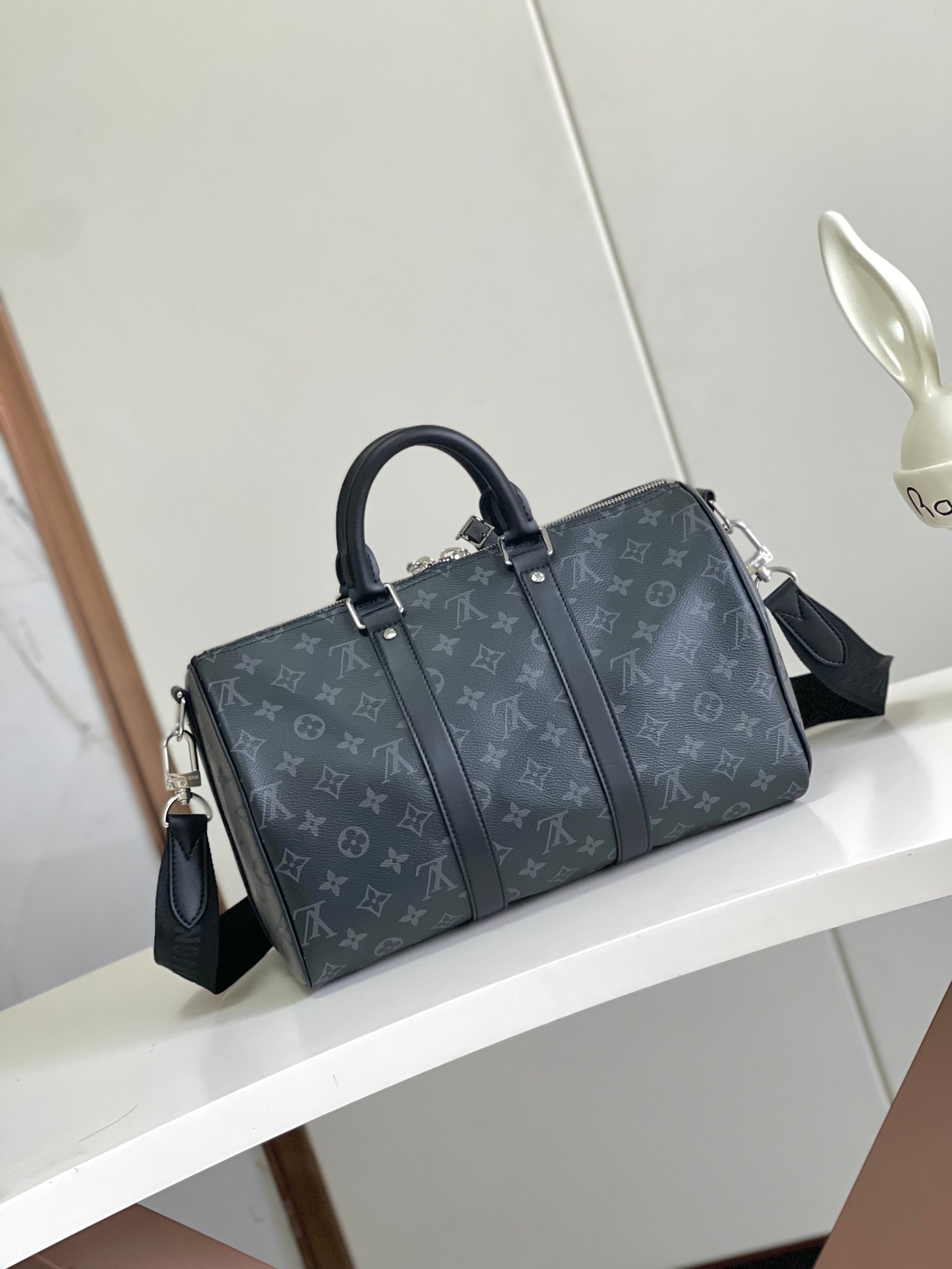 Elevate your style with the Keepall Bandouliere 35. Crafted from Monogram Eclipse coated canvas, this bag exudes luxury and sophistication.