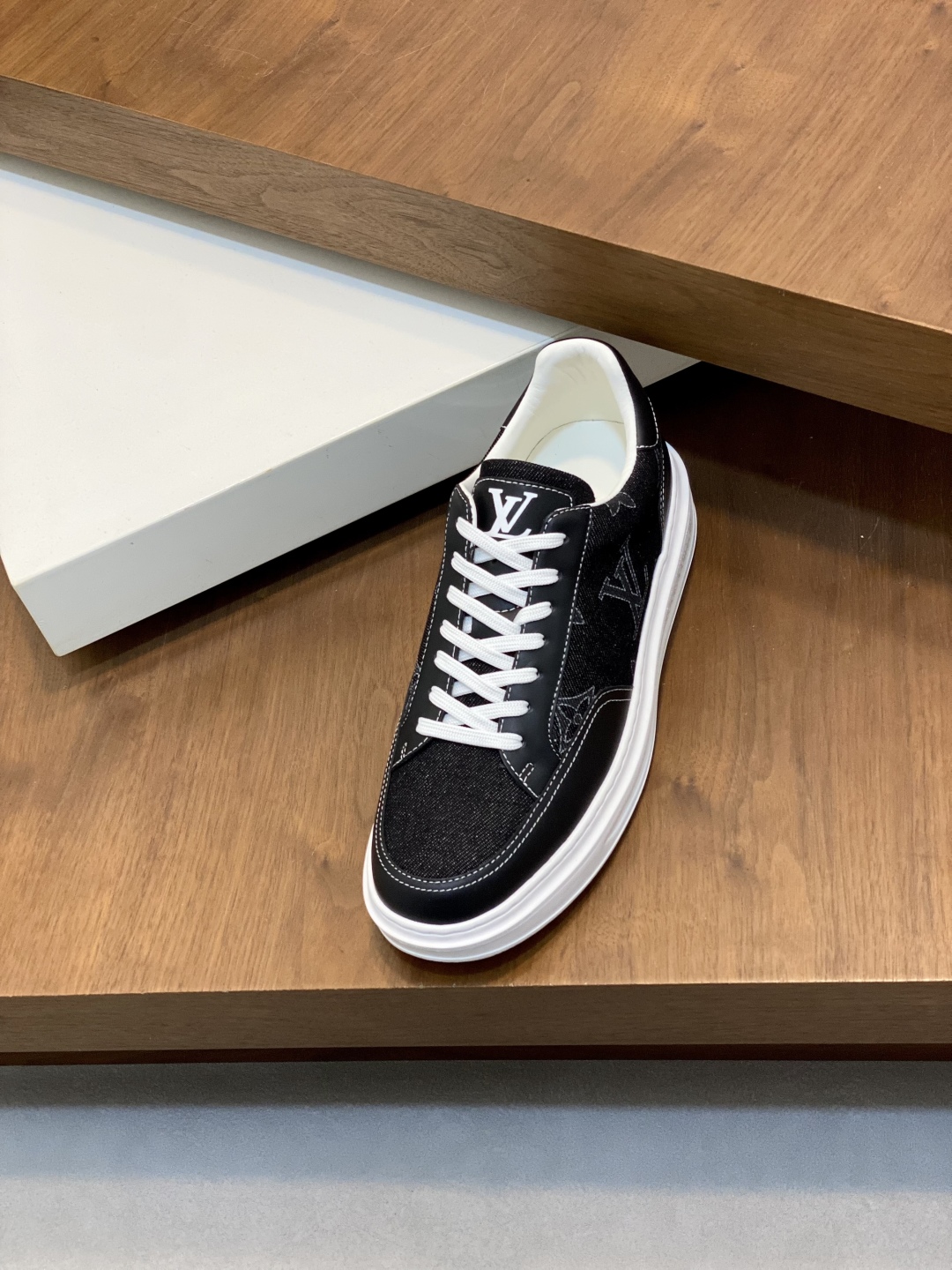 Louis Vuitton Men's Black Leather Monogram Casual Sneakers,Classic Style