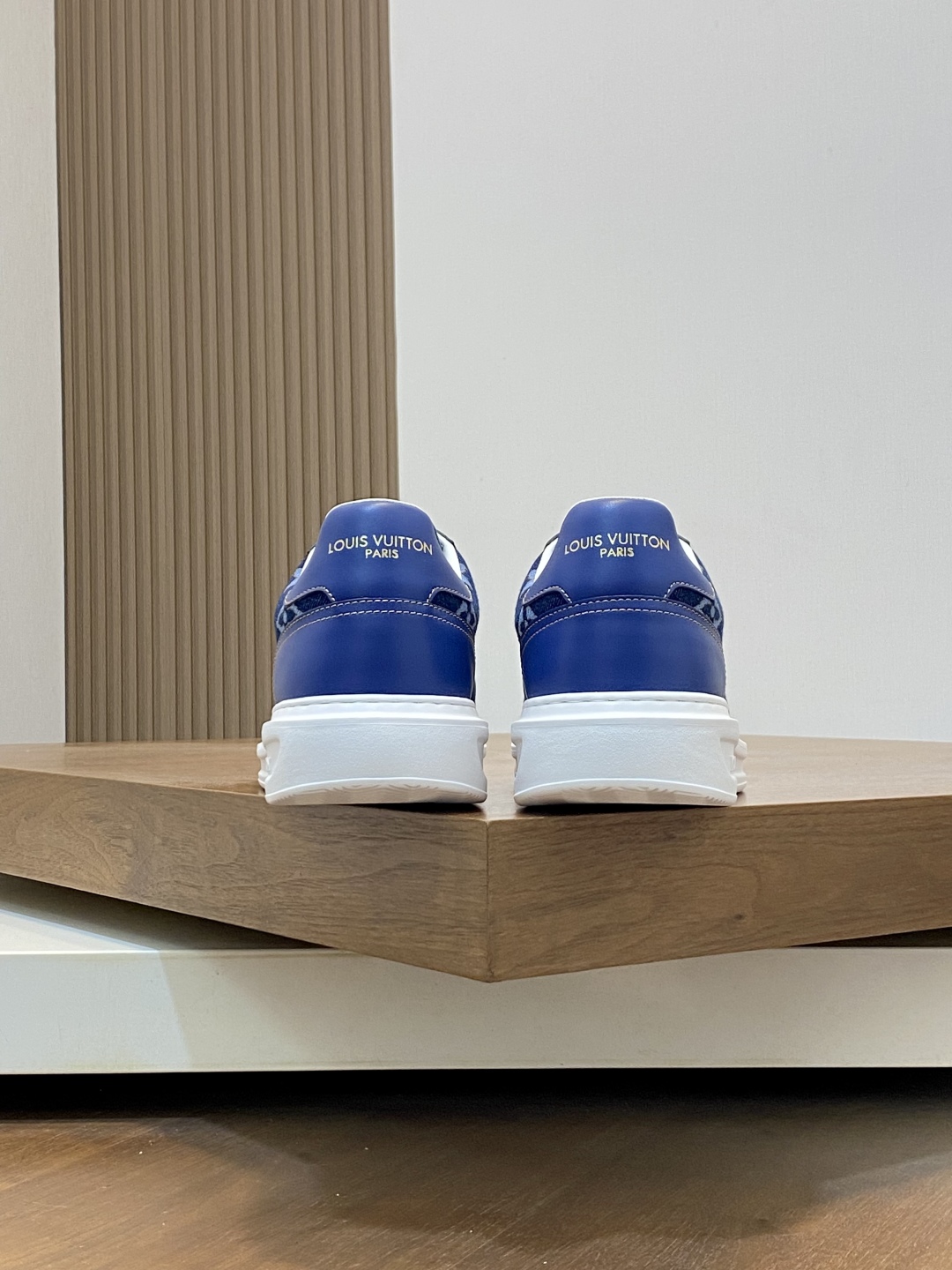 Louis Vuitton Men's Blue Leather Monogram Sneakers Classic Style