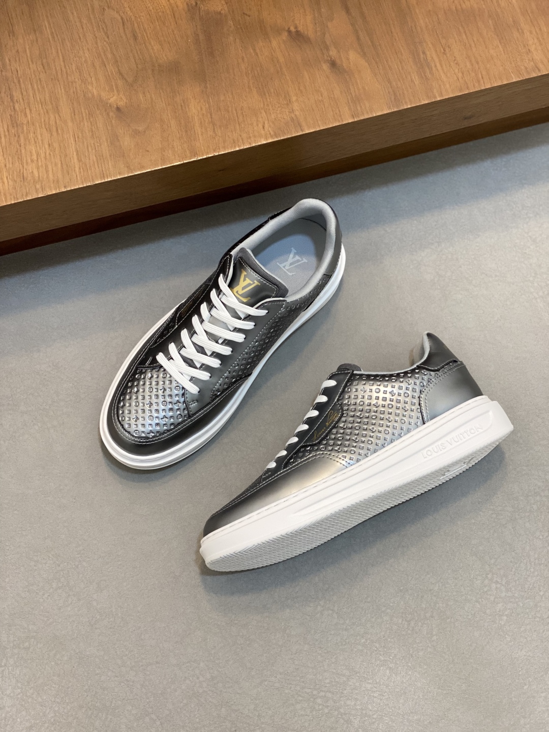 The Louis Vuitton men's casual sneakers are a stylish and comfortable choice for the modern man. These sneakers combine luxury materials with a classic design, making them versatile for various occasions.