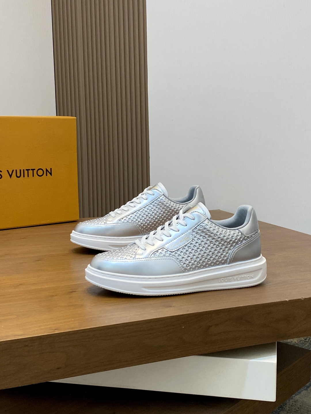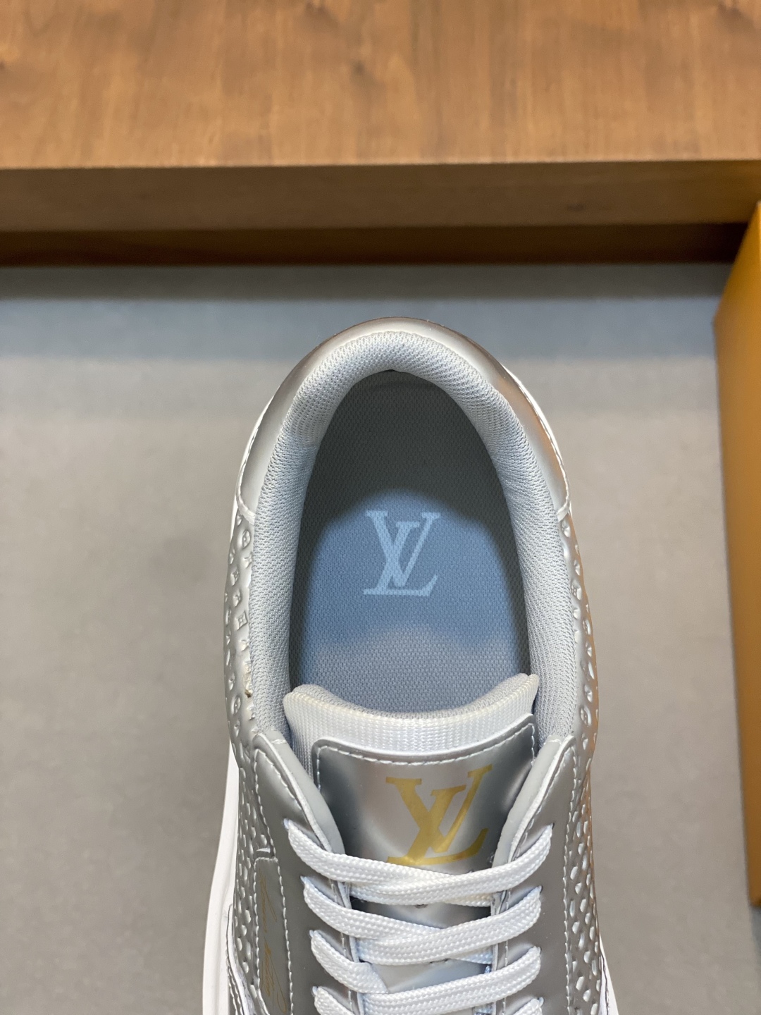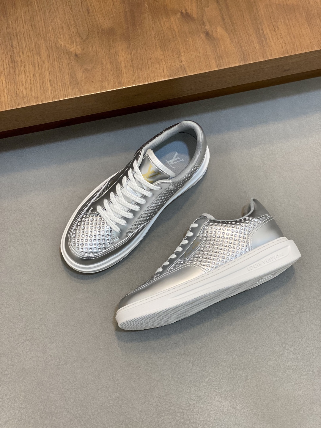 Louis Vuitton Men's Silver Leather Monogram Casual Sneakers, Lightweight TPU Outsole