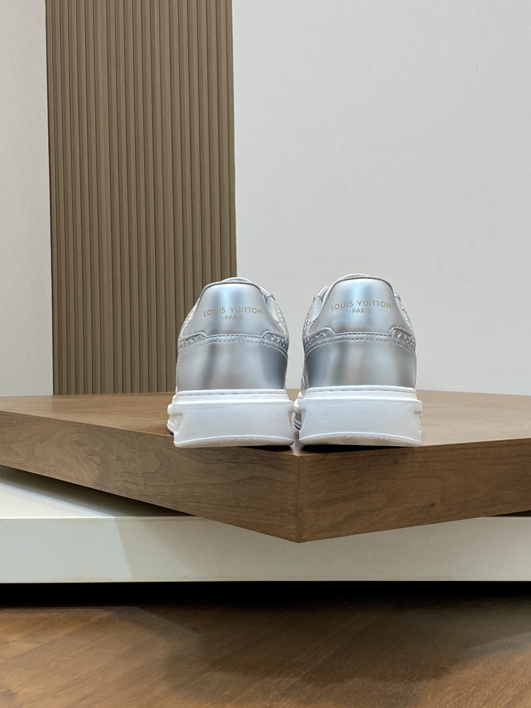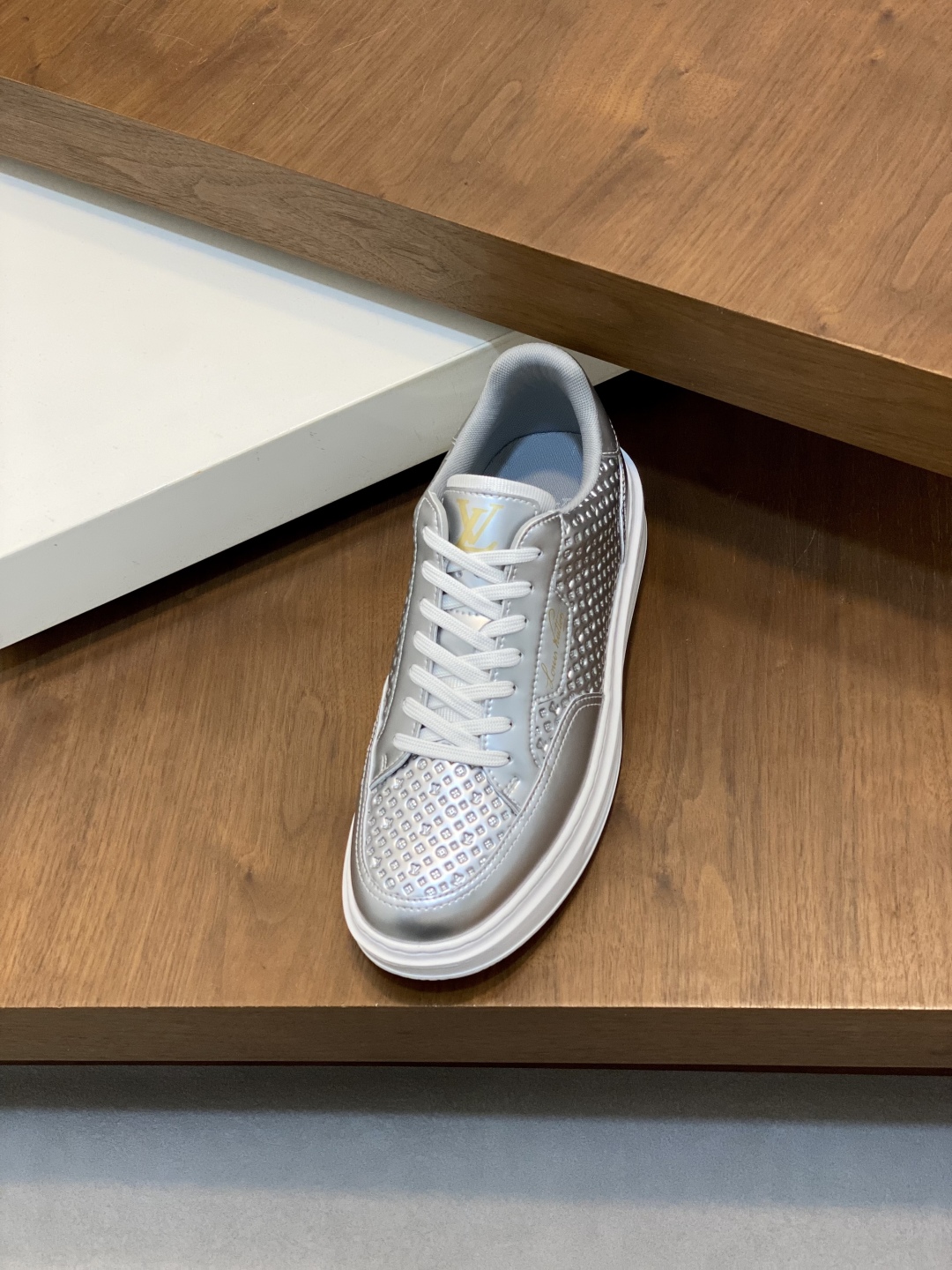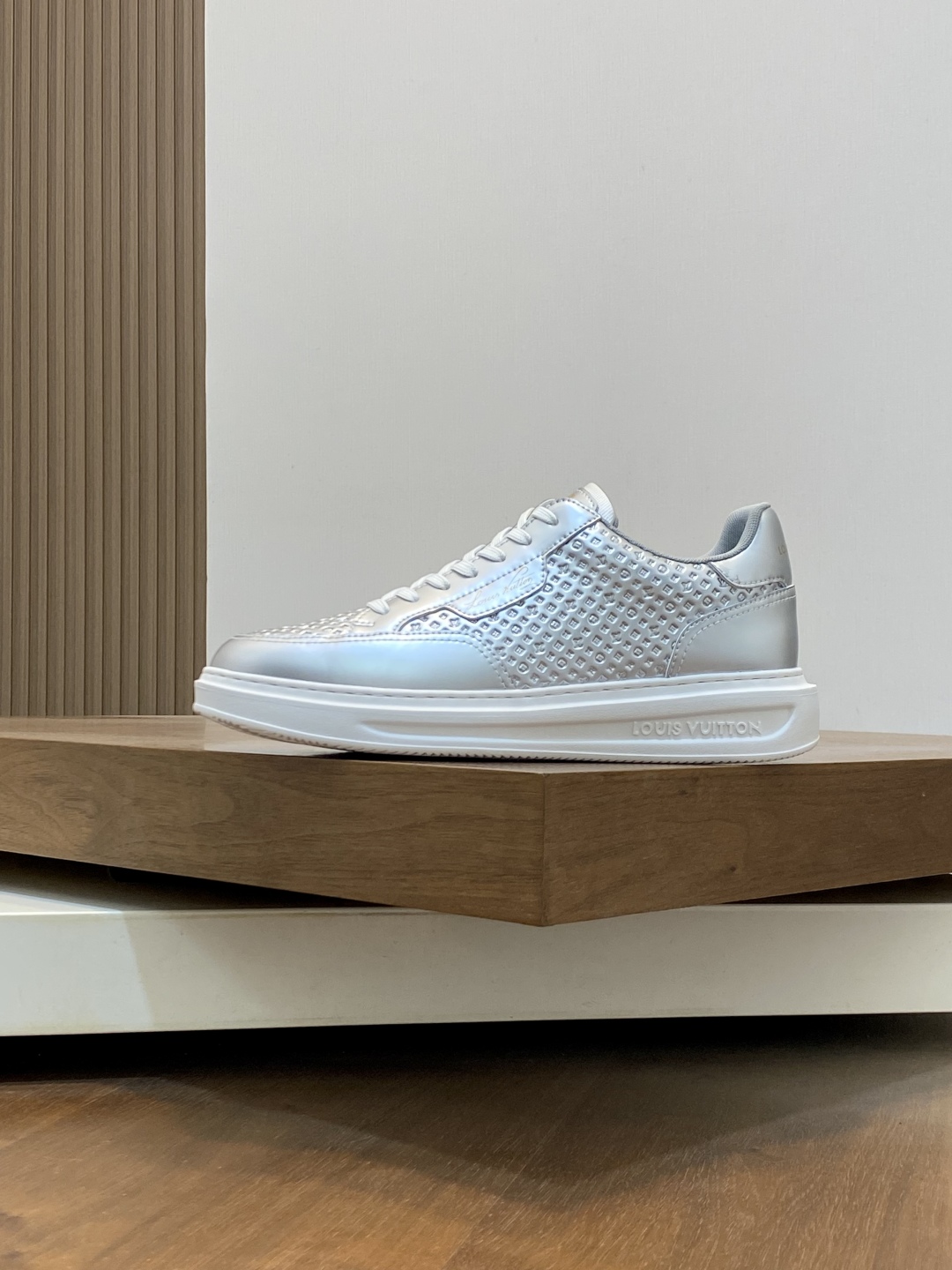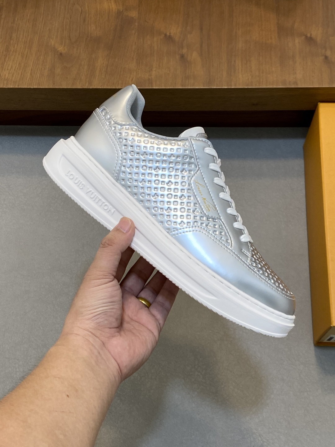 Louis Vuitton Men's Silver Leather Monogram Casual Sneakers, Lightweight TPU Outsole
