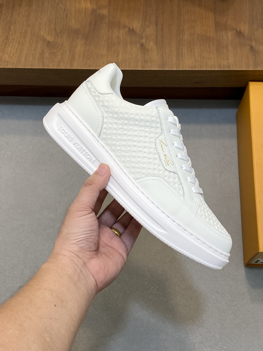 Louis Vuitton Men's White Leather Monogram Casual Sneakers Size 38-44