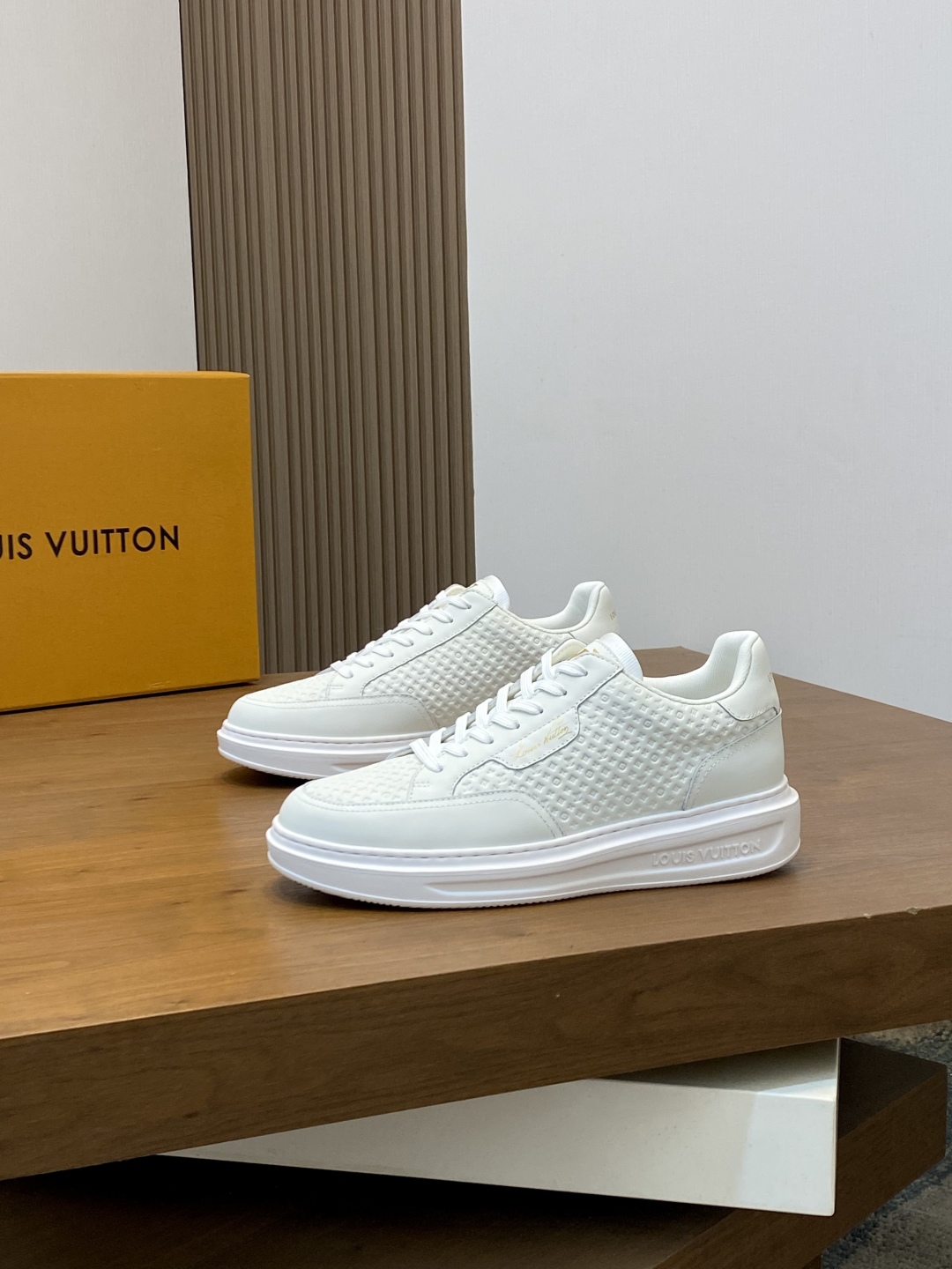 Elevate your style with these Louis Vuitton Men's Sneakers. Crafted from premium leather with monogram accents for a classic, sporty look. Available in sizes 38-44.