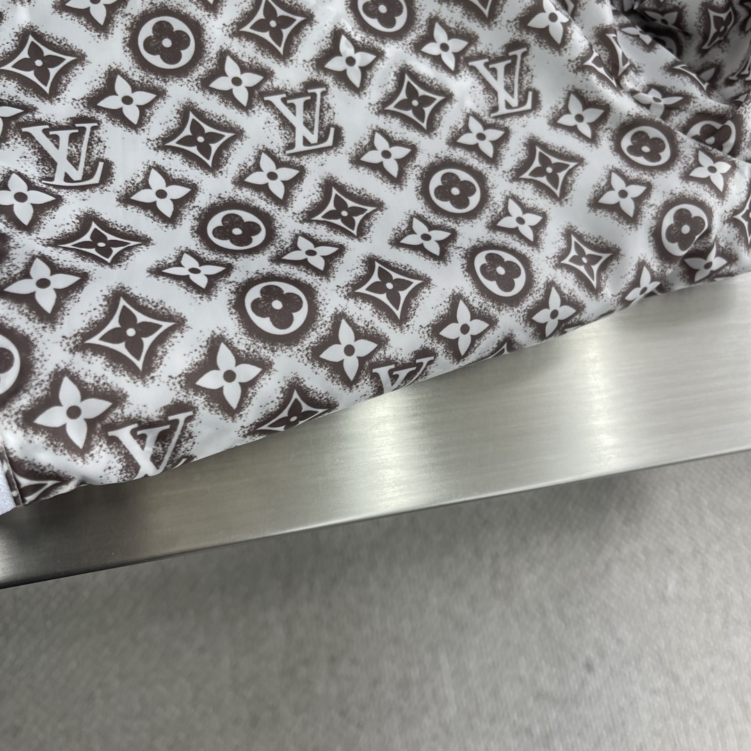- Iconic LV Print: Showcases the recognizable Louis Vuitton monogram throughout the jacket and shorts.