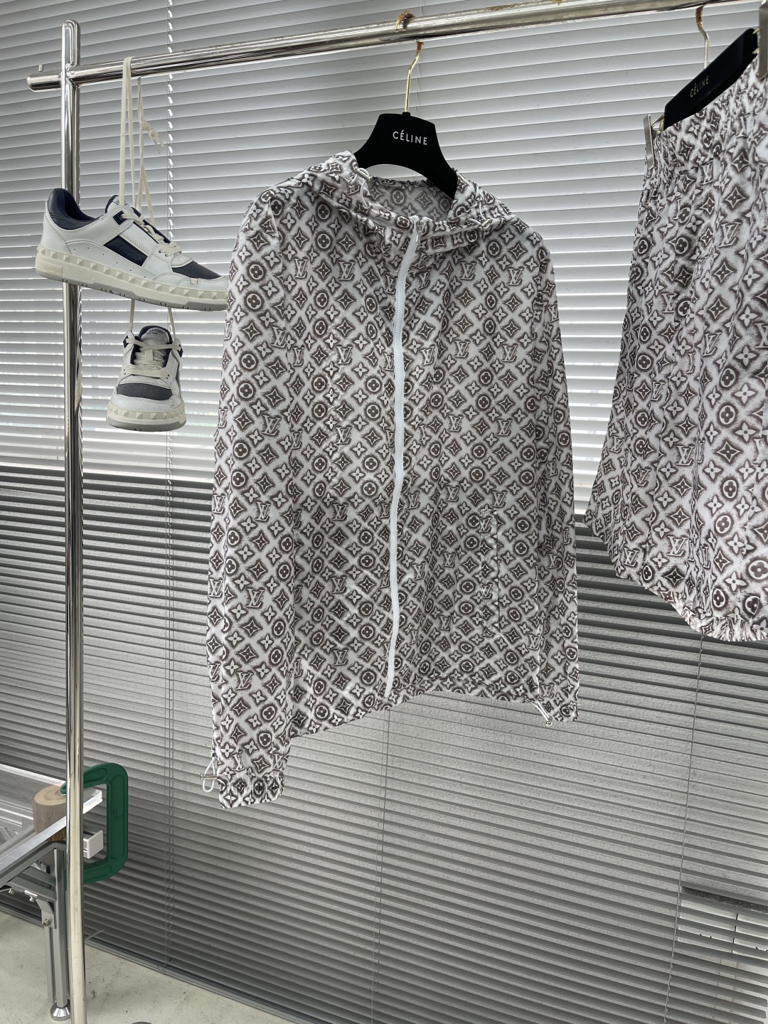 This Louis Vuitton windbreaker set is perfect for creating a stylish and protective ensemble. Whether you're strolling through the city or enjoying a casual day out, this set combines luxury with everyday wearability.