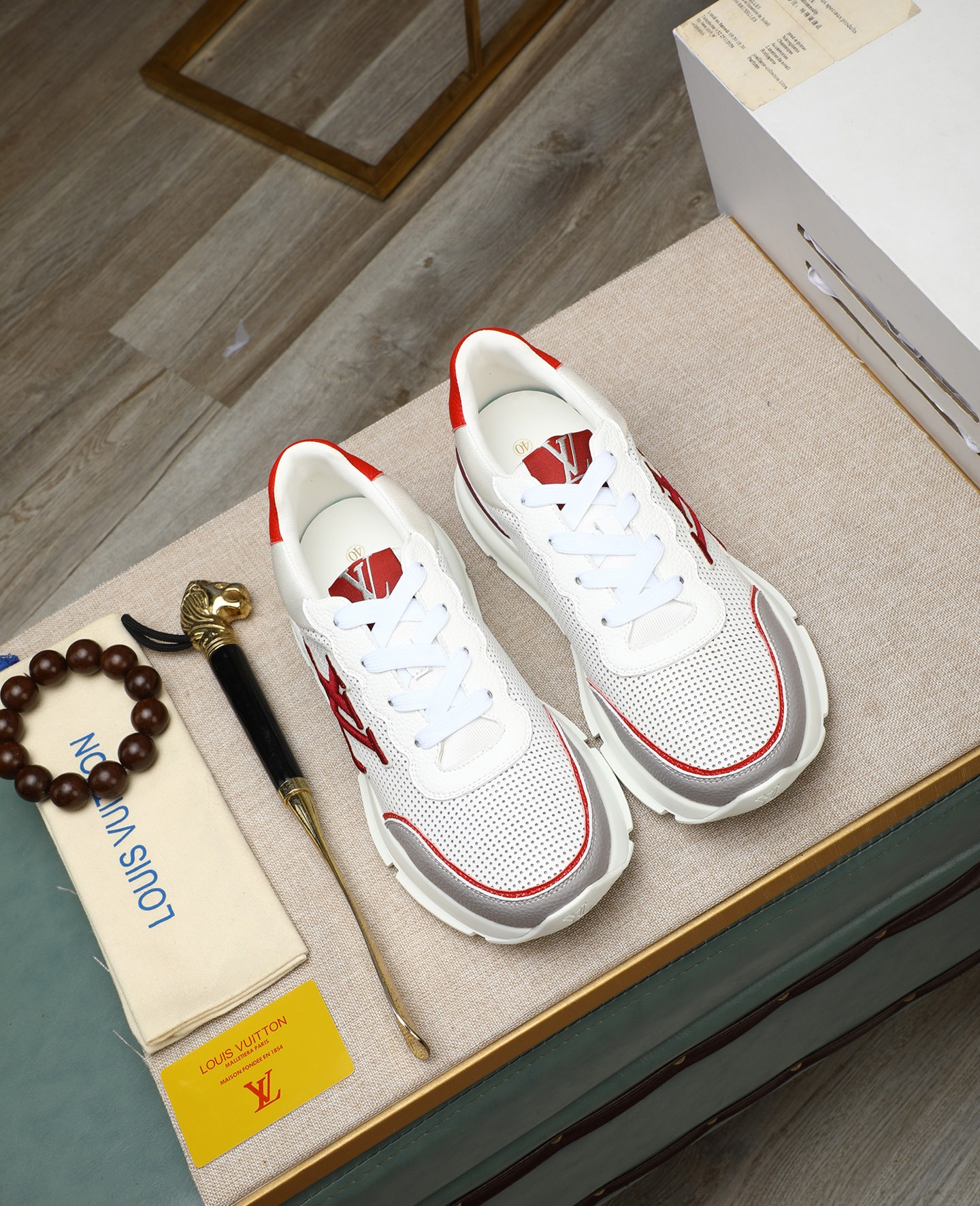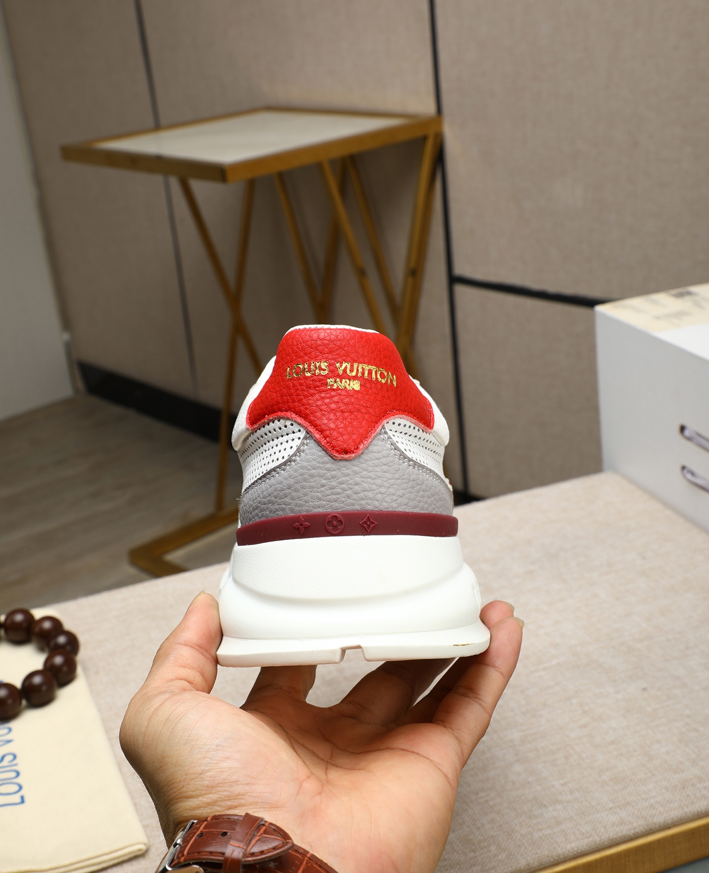 - Iconic LV logo detailing