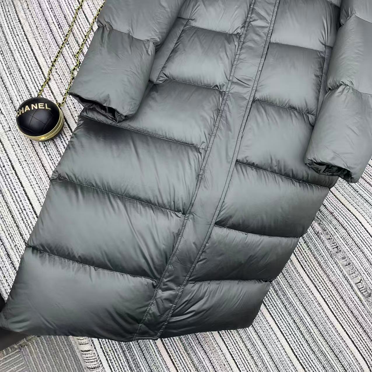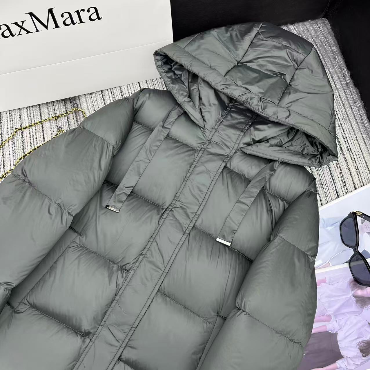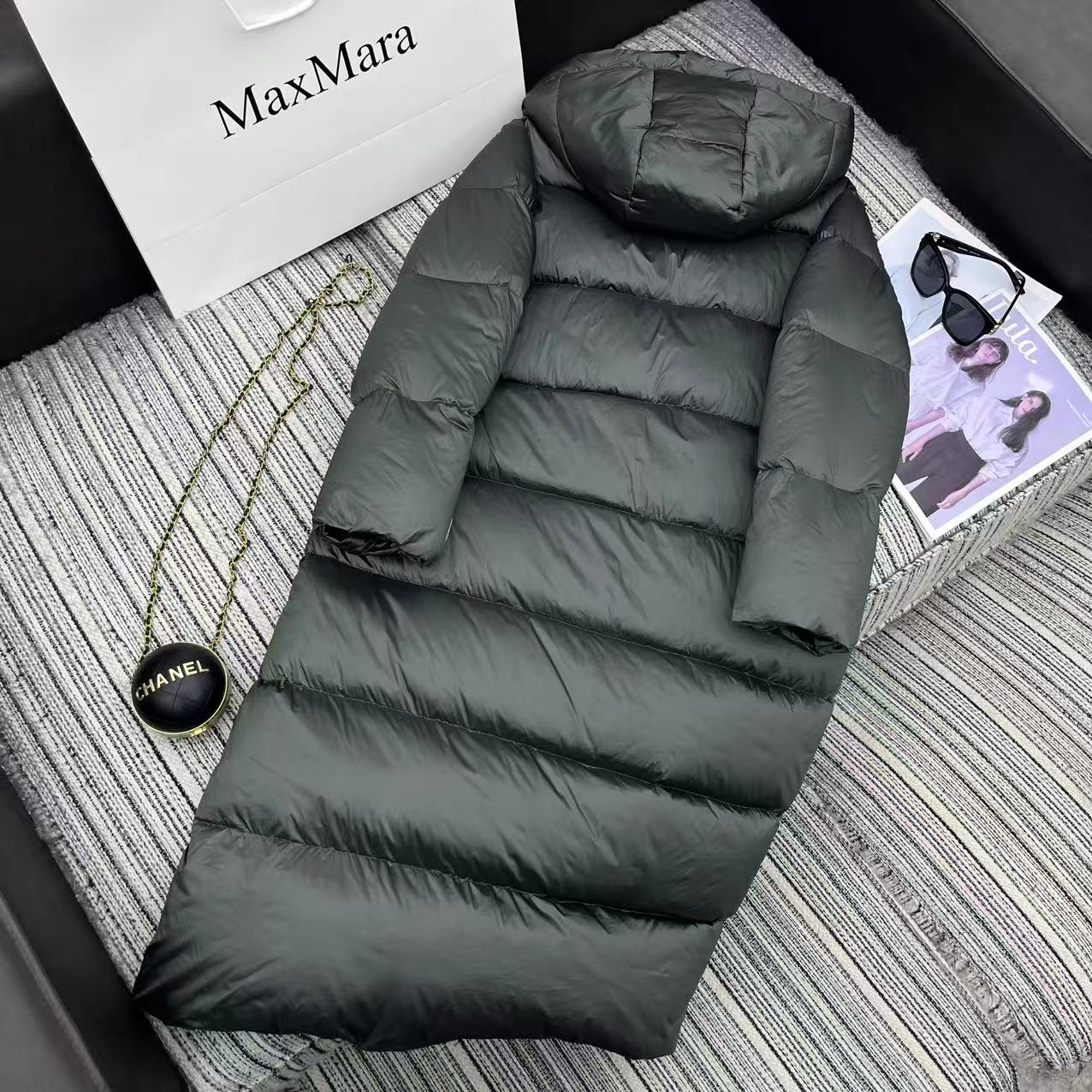 This MaxMara hooded long down coat is a luxurious and practical choice for staying warm and stylish during the colder months.