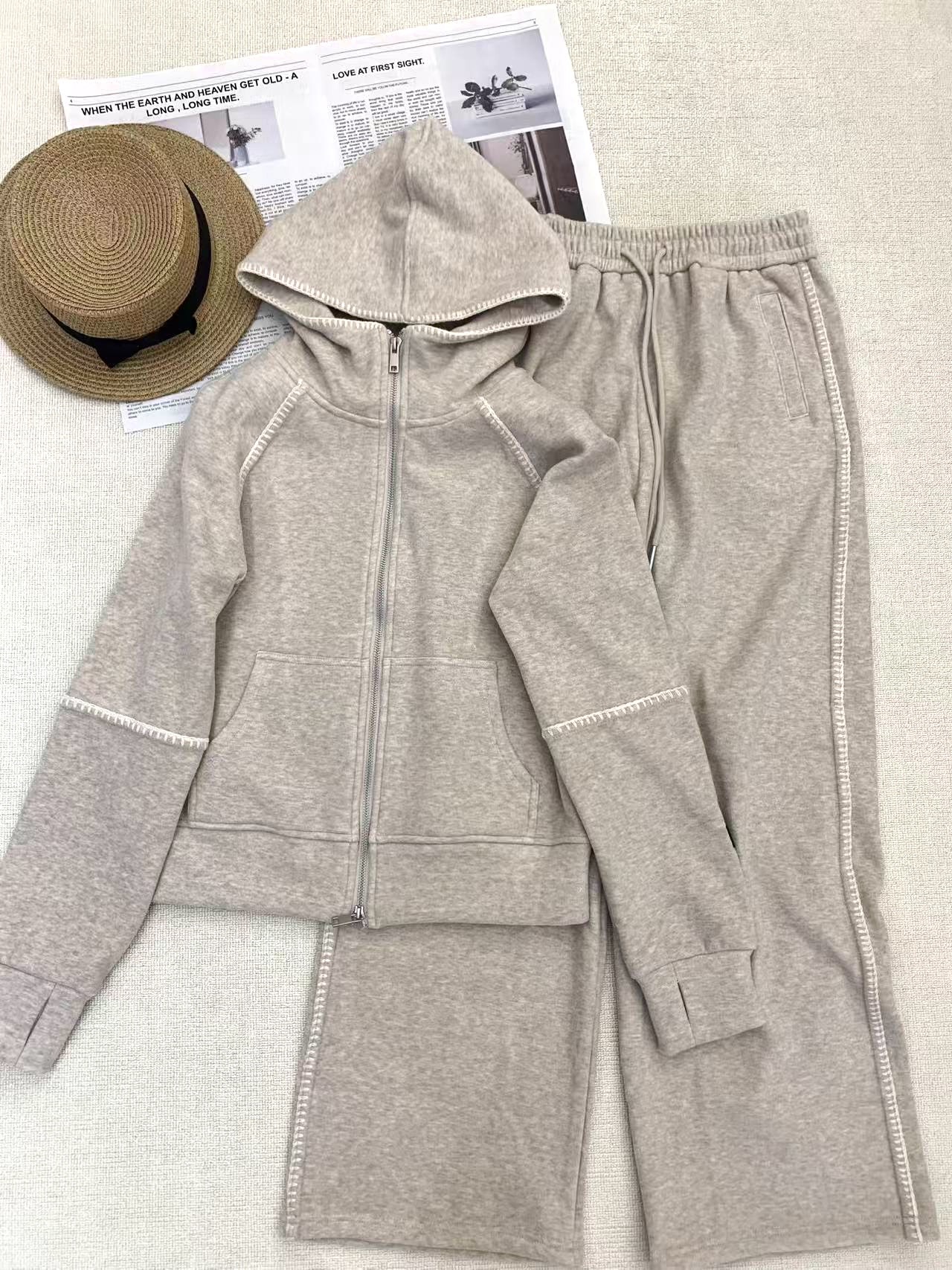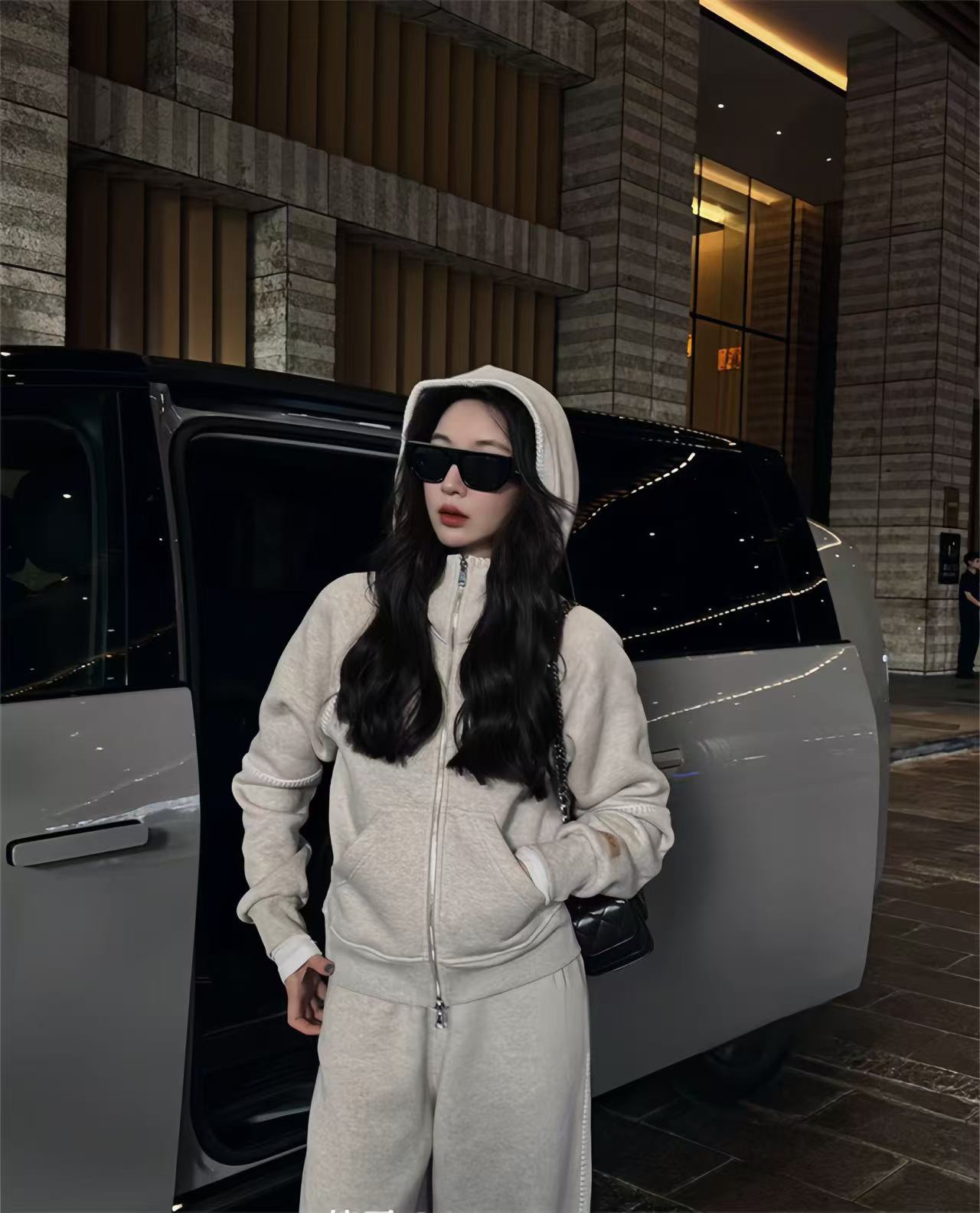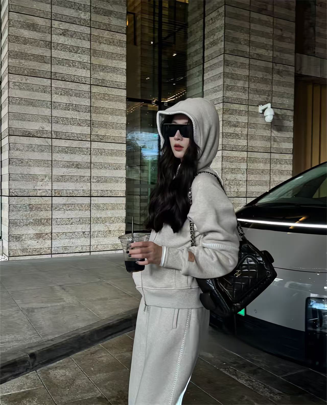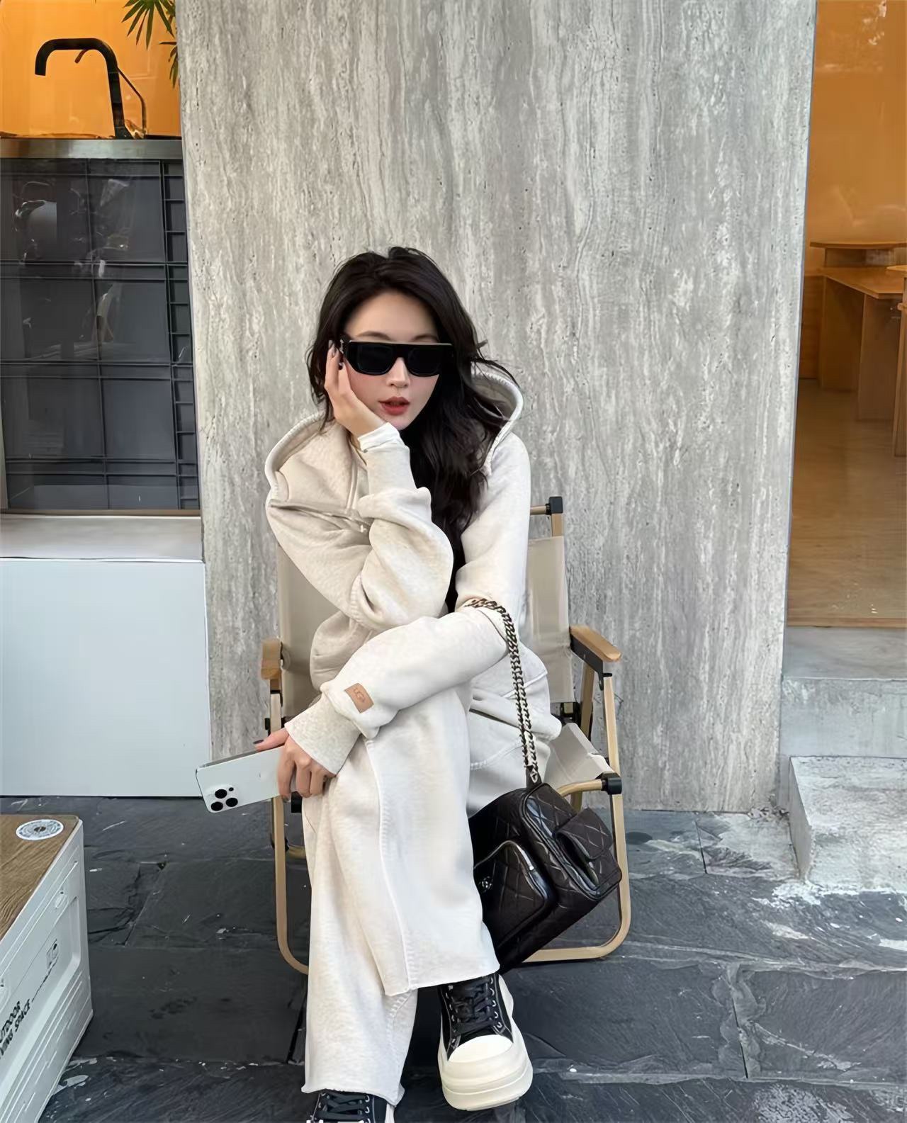 This fleece hoodie set blends minimalist design with ultimate comfort, creating a versatile outfit for various occasions.