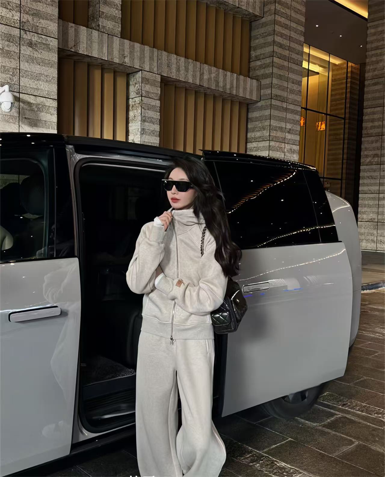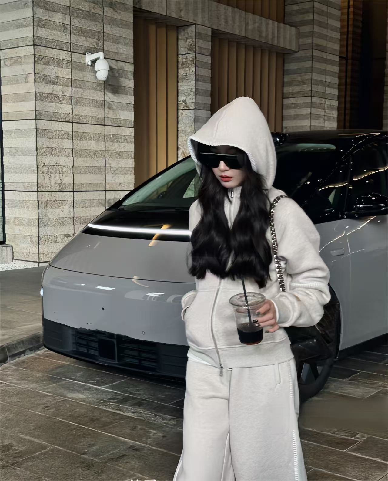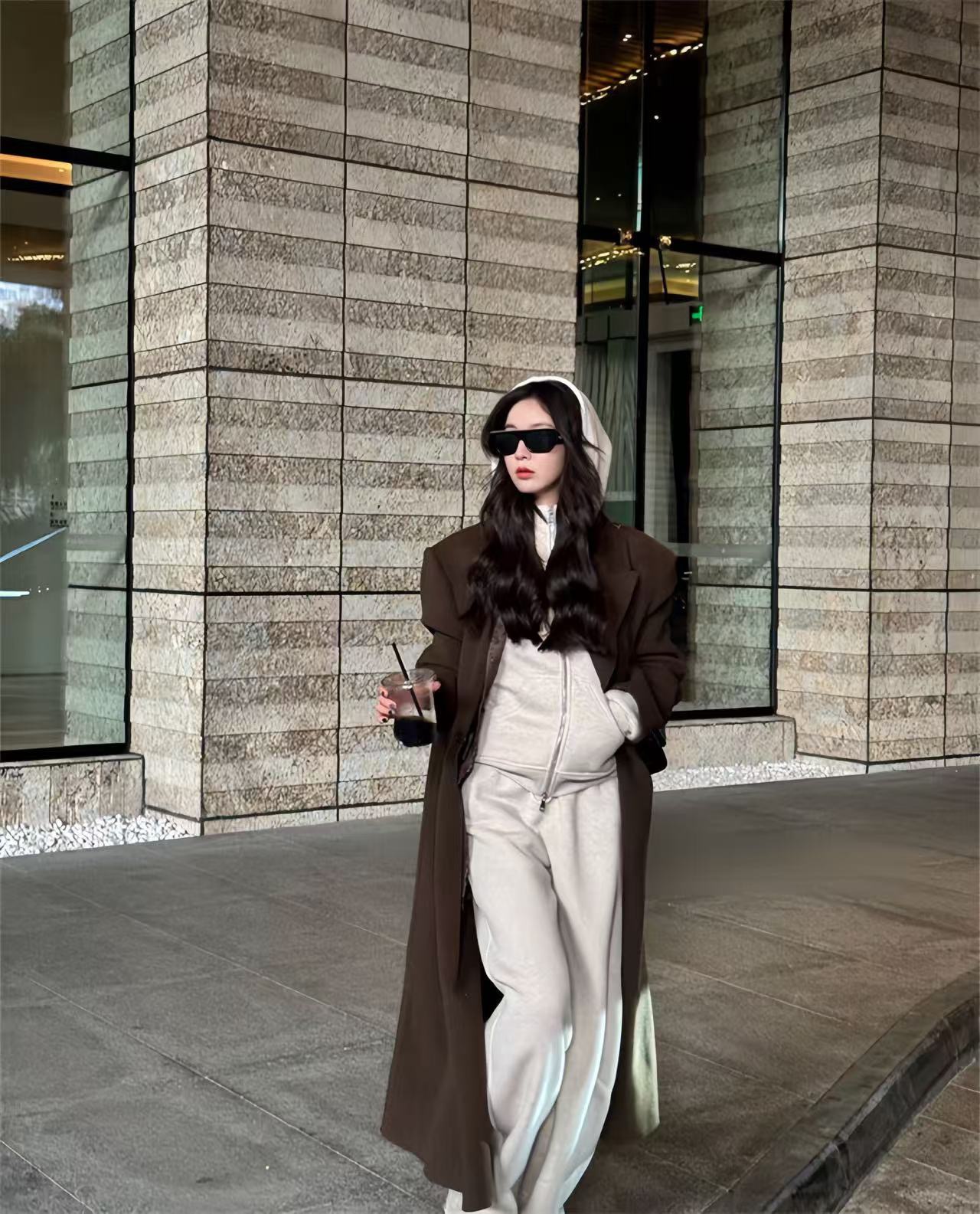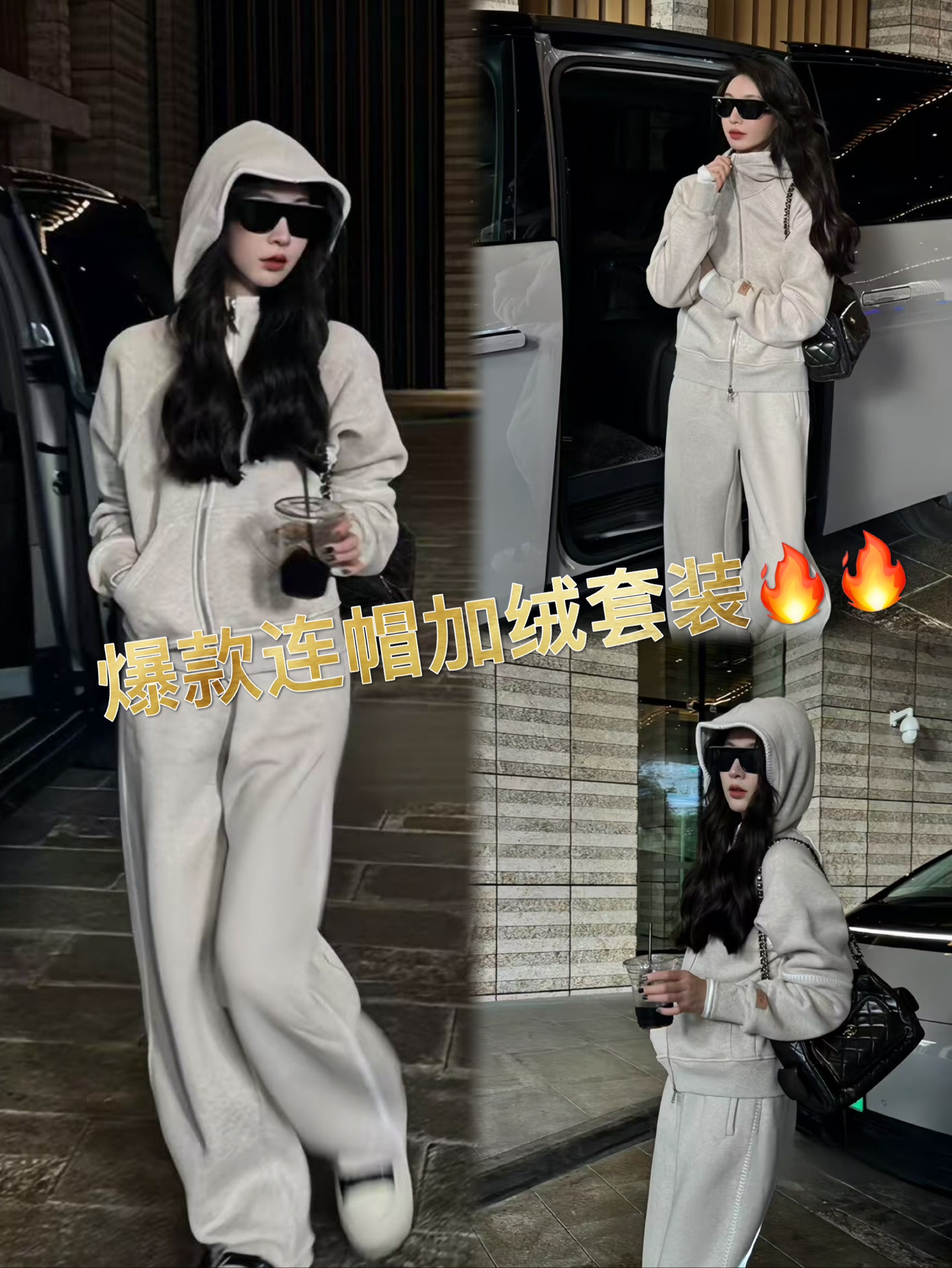 This fleece hoodie set blends minimalist design with ultimate comfort, creating a versatile outfit for various occasions.