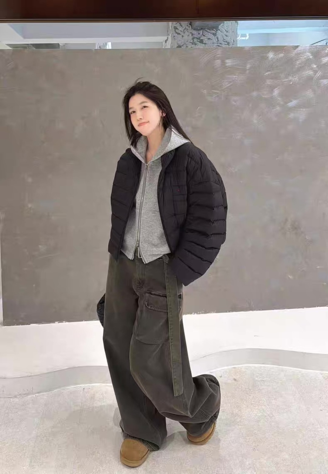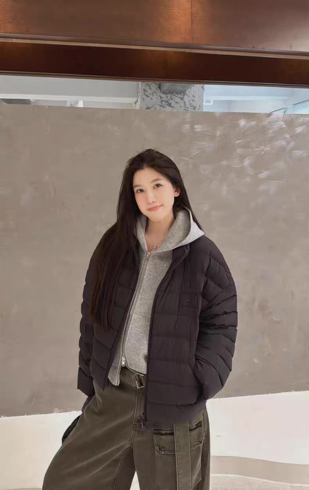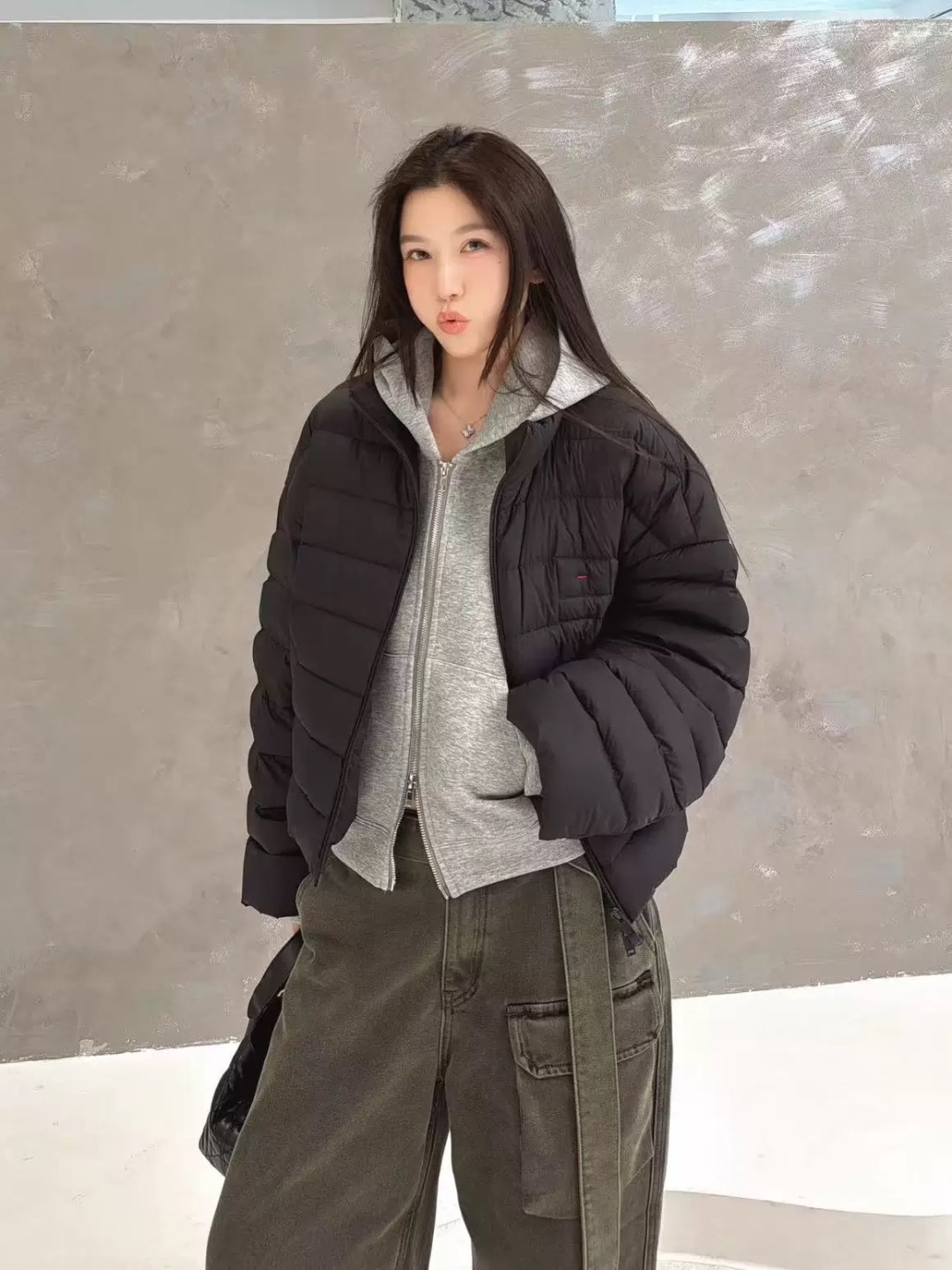 This minimalist, relaxed-fit goose down puffer jacket is designed for both comfort and style. Its short length accentuates the figure, while the loose fit ensures freedom of movement.