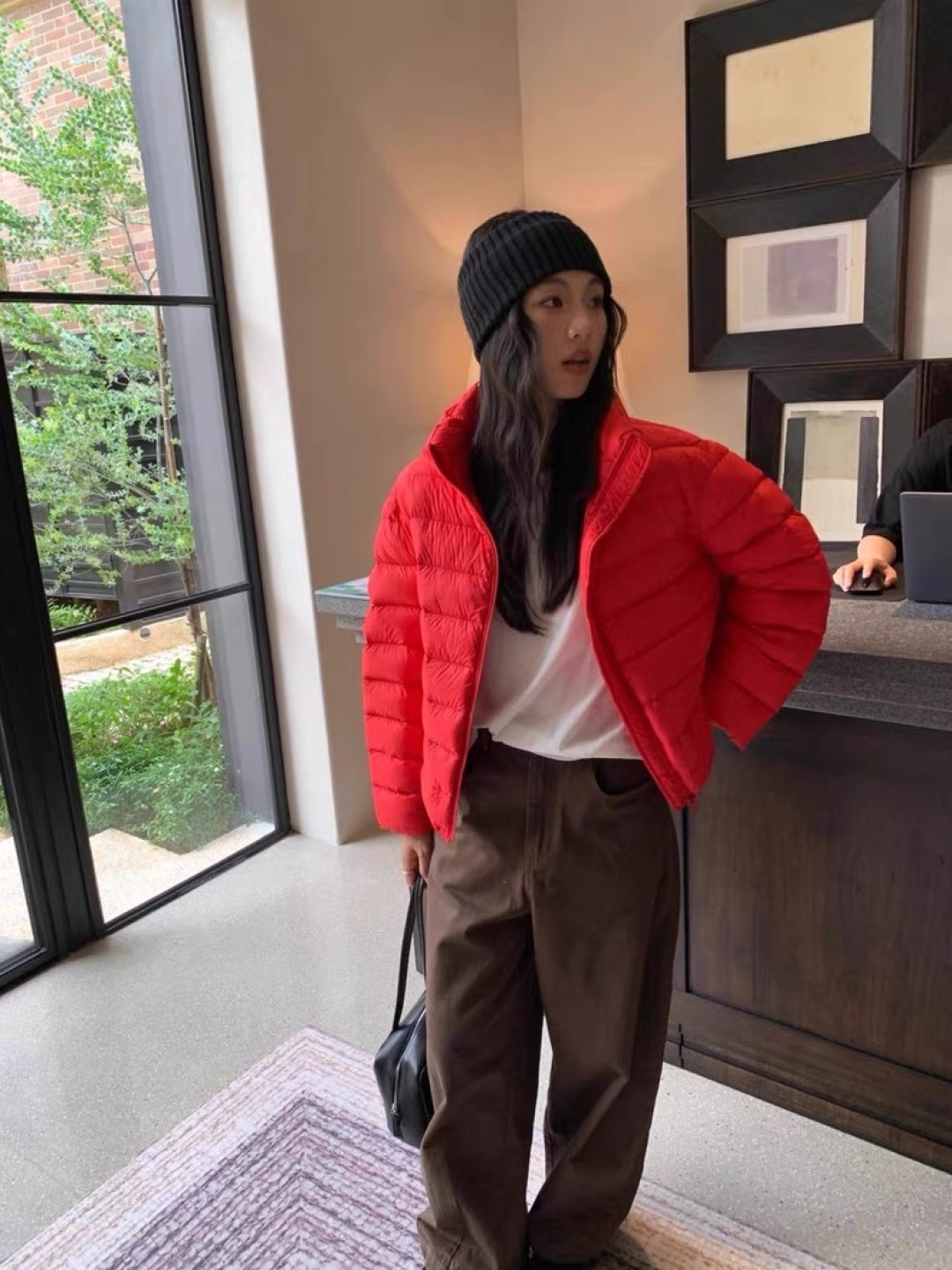 This puffer jacket is perfect for creating a chic and effortless look, providing warmth and style in a minimalist design.