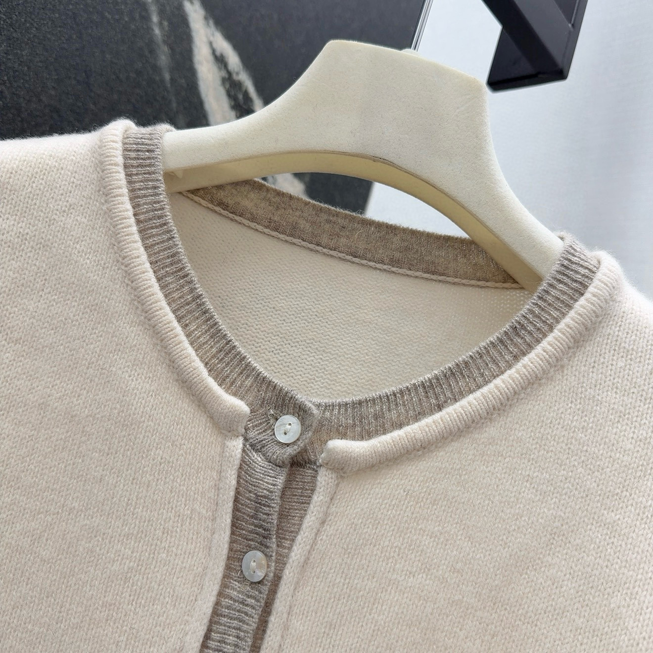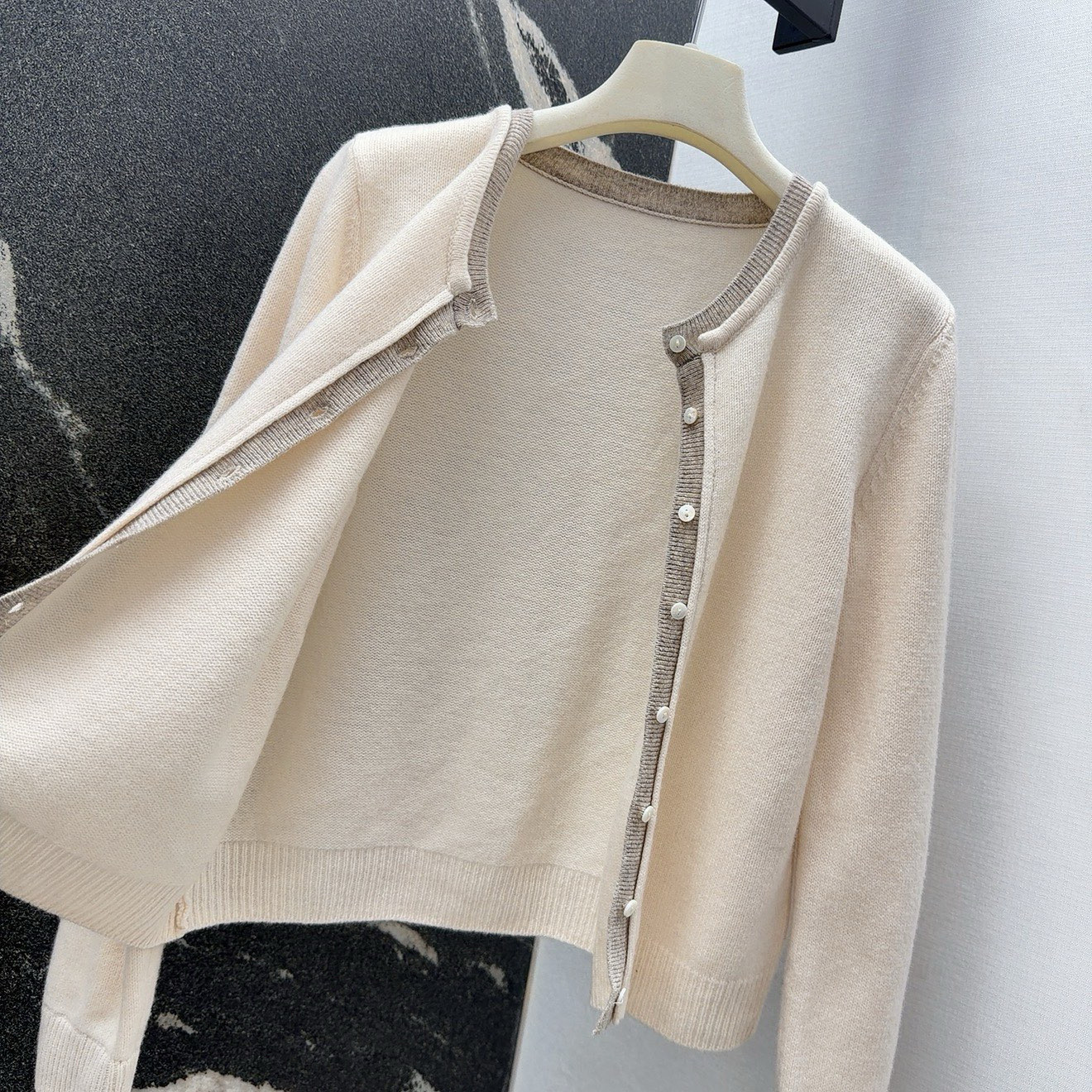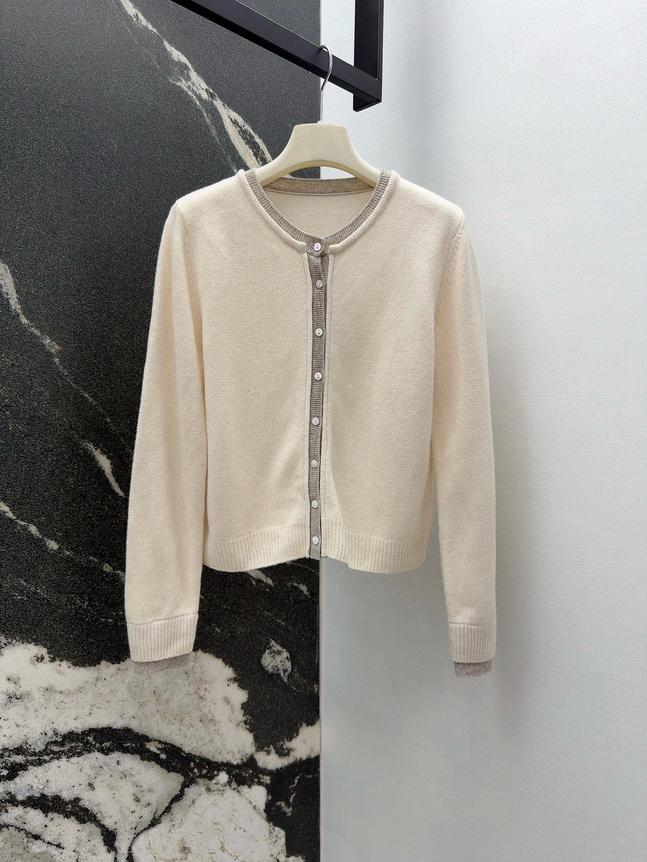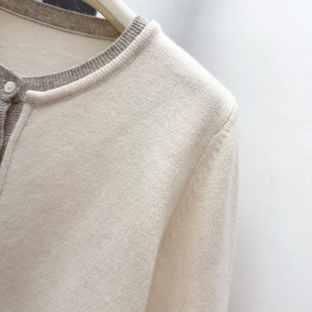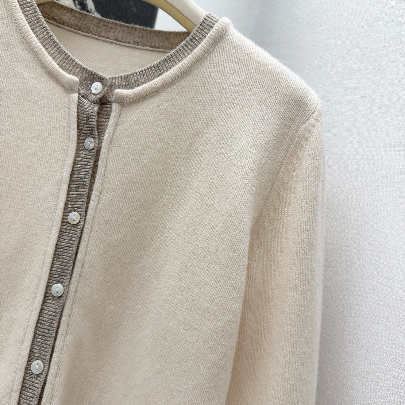 - Round neck cardigan with button closure