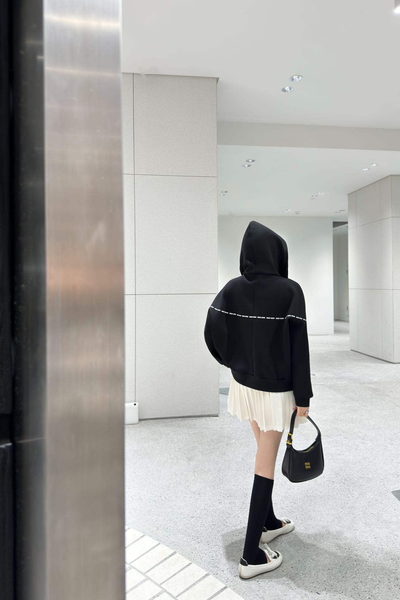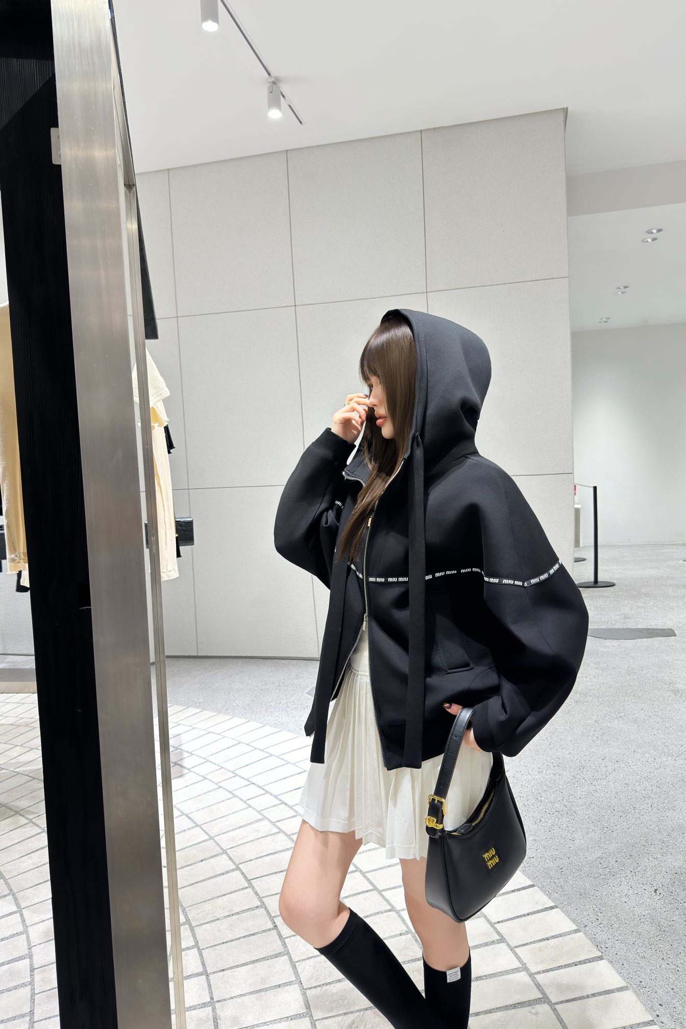 Elevate your style with this Miu Mi 2025FW hoodie jacket. Loose fit, custom fabric, and chic design for a trendy, comfortable look. Available in S, M, L.