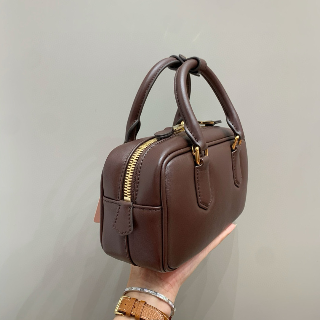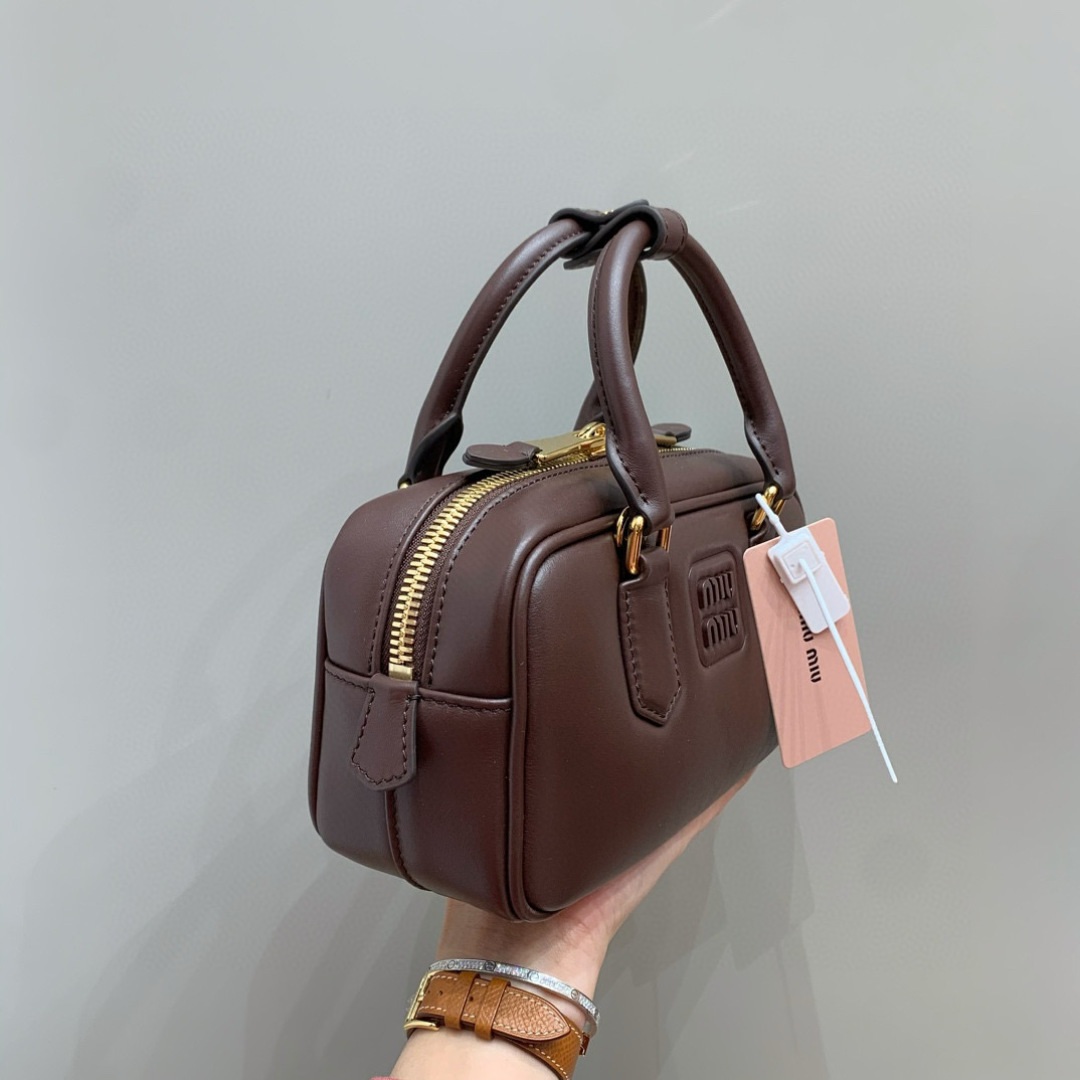 Miu Miu Arcadie Bowling Bag - Heather Wood, Leather, Gold Hardware, Chic Style