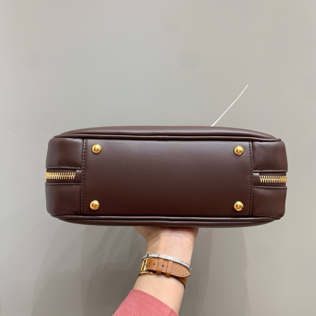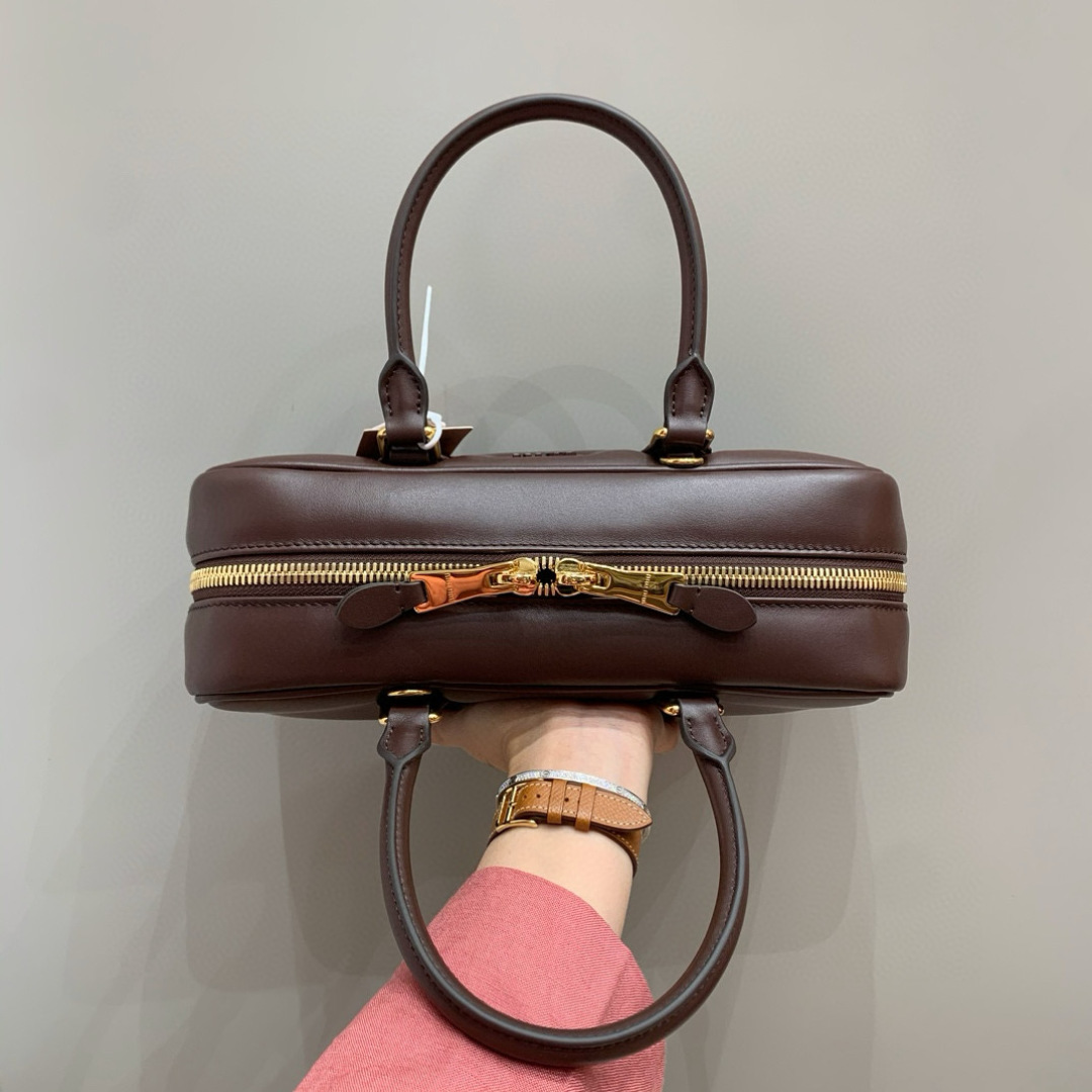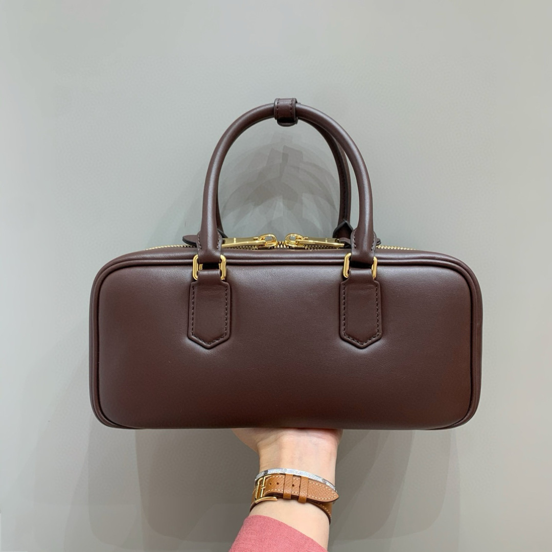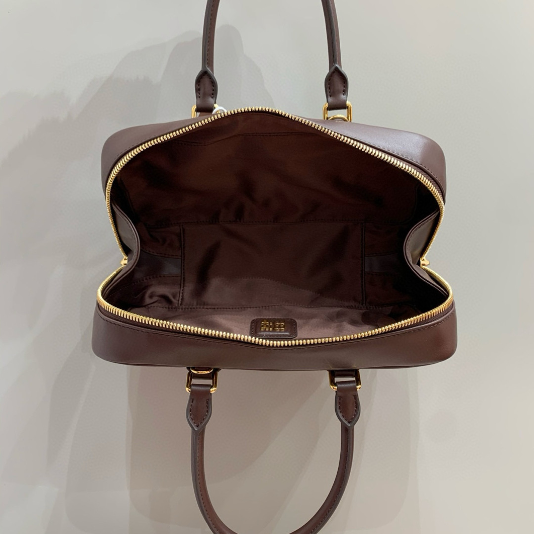 Miu Miu Arcadie Bowling Bag Heather Wood Leather Satchel, 27 cm