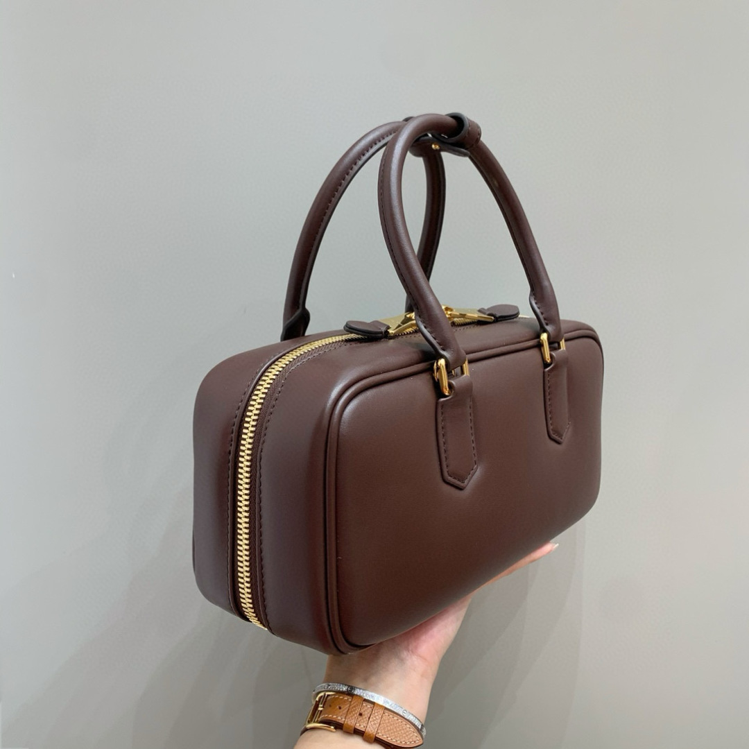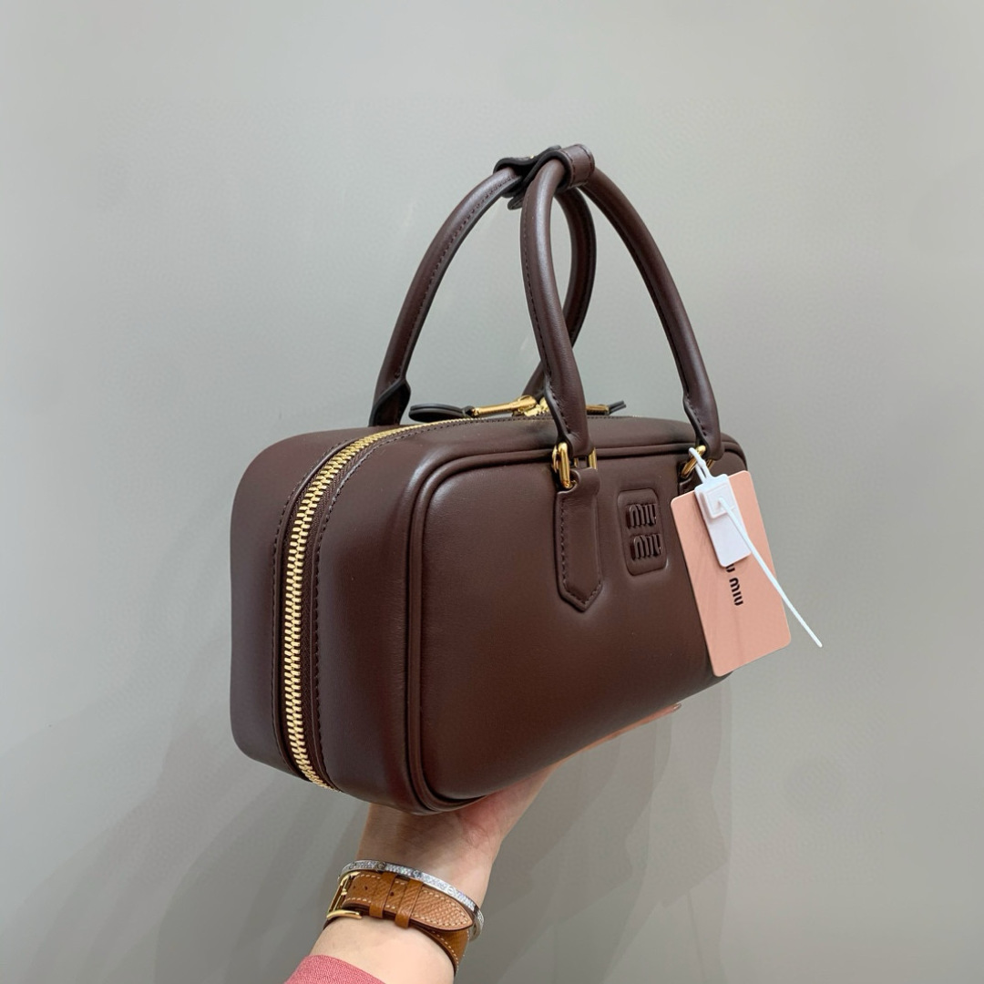 Tags: Arcadie Bowling Bag, Designer Satchel Bags, Heather Wood Handbag, Leather Bowling Bag, Luxury Leather Bag, Miu Miu Satchel