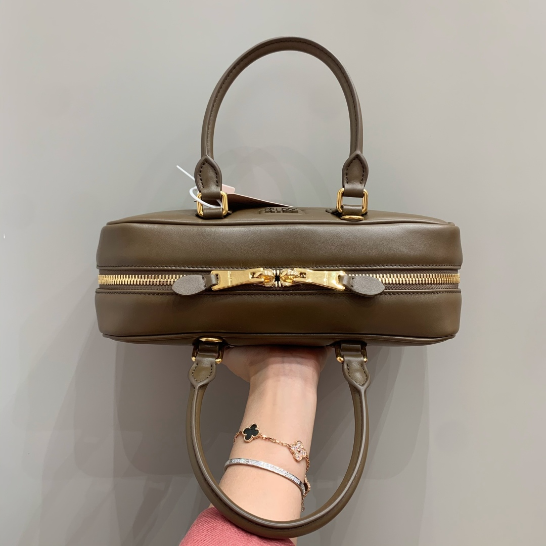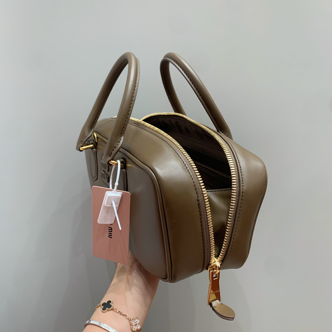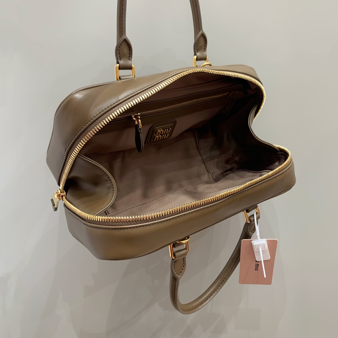 Miu Miu Arcadie Bowling Bag in Tundra Leather, Gold Hardware - Chic & Stylish