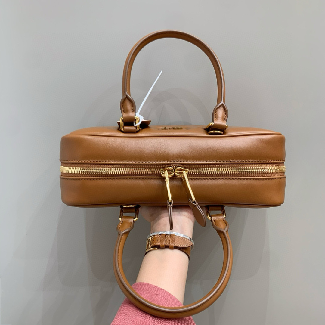 Miu Miu Arcadie Cognac Leather Bowling Bag - Chic & Versatile Design