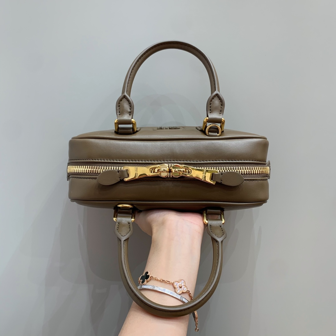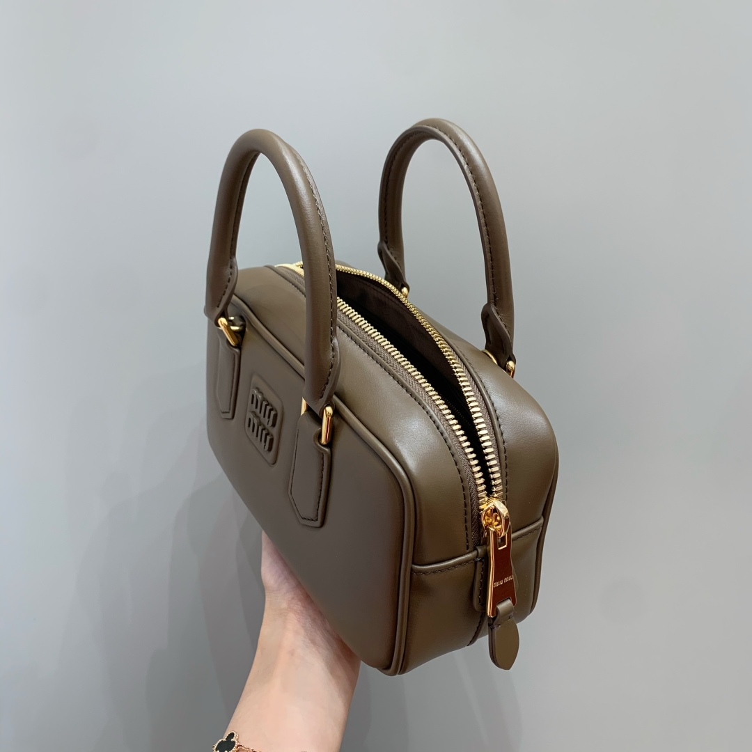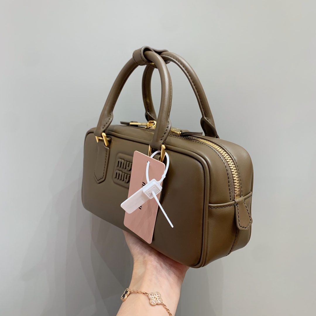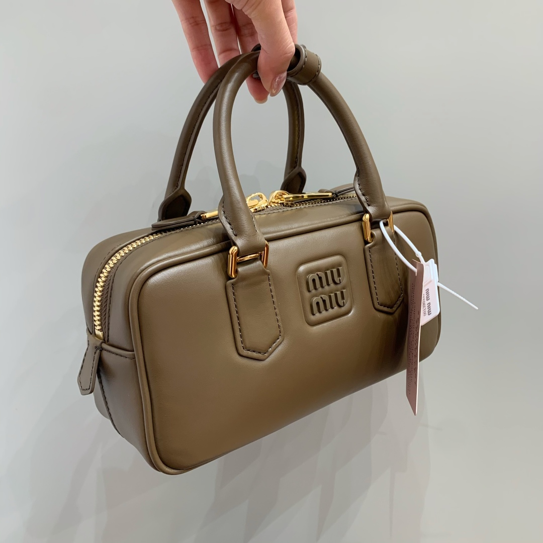 Tags: Designer Bag, Leather Handbag, Luxury Accessories, Miu Miu Arcadie Bag, Small Bowling Bag, Tundra Color Bag