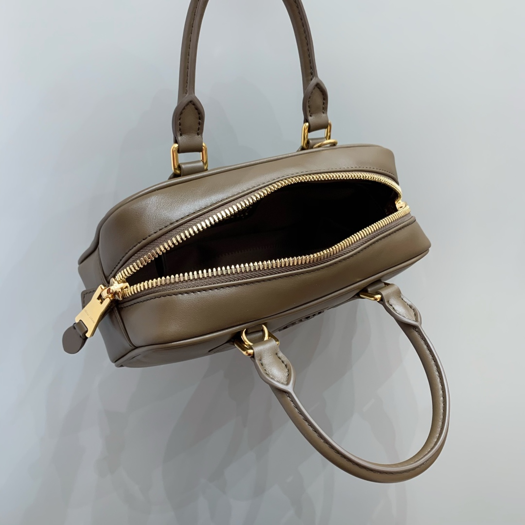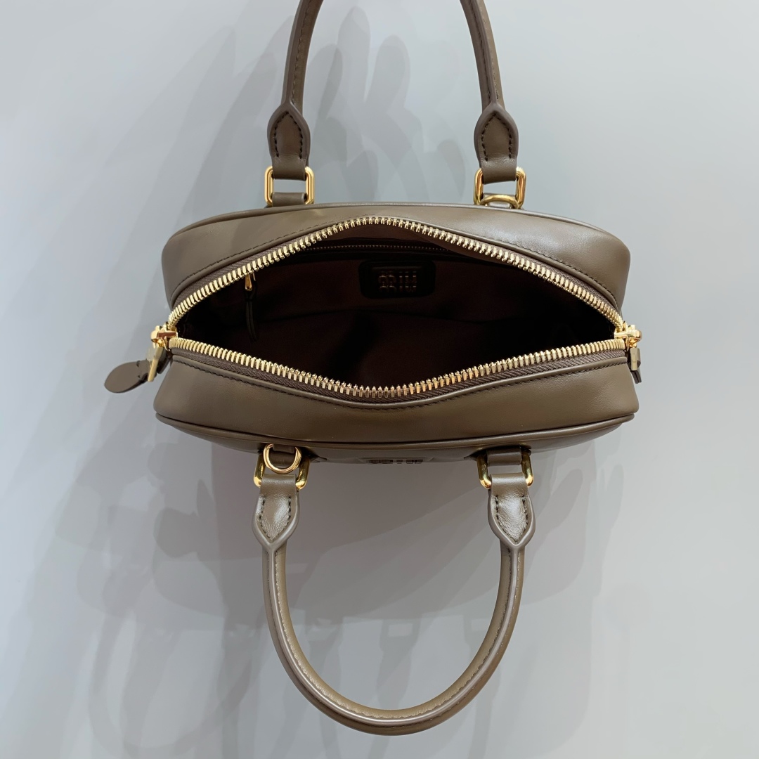 Miu Miu Arcadie Small Bowling Bag, Leather, Tundra Color - Chic & Compact