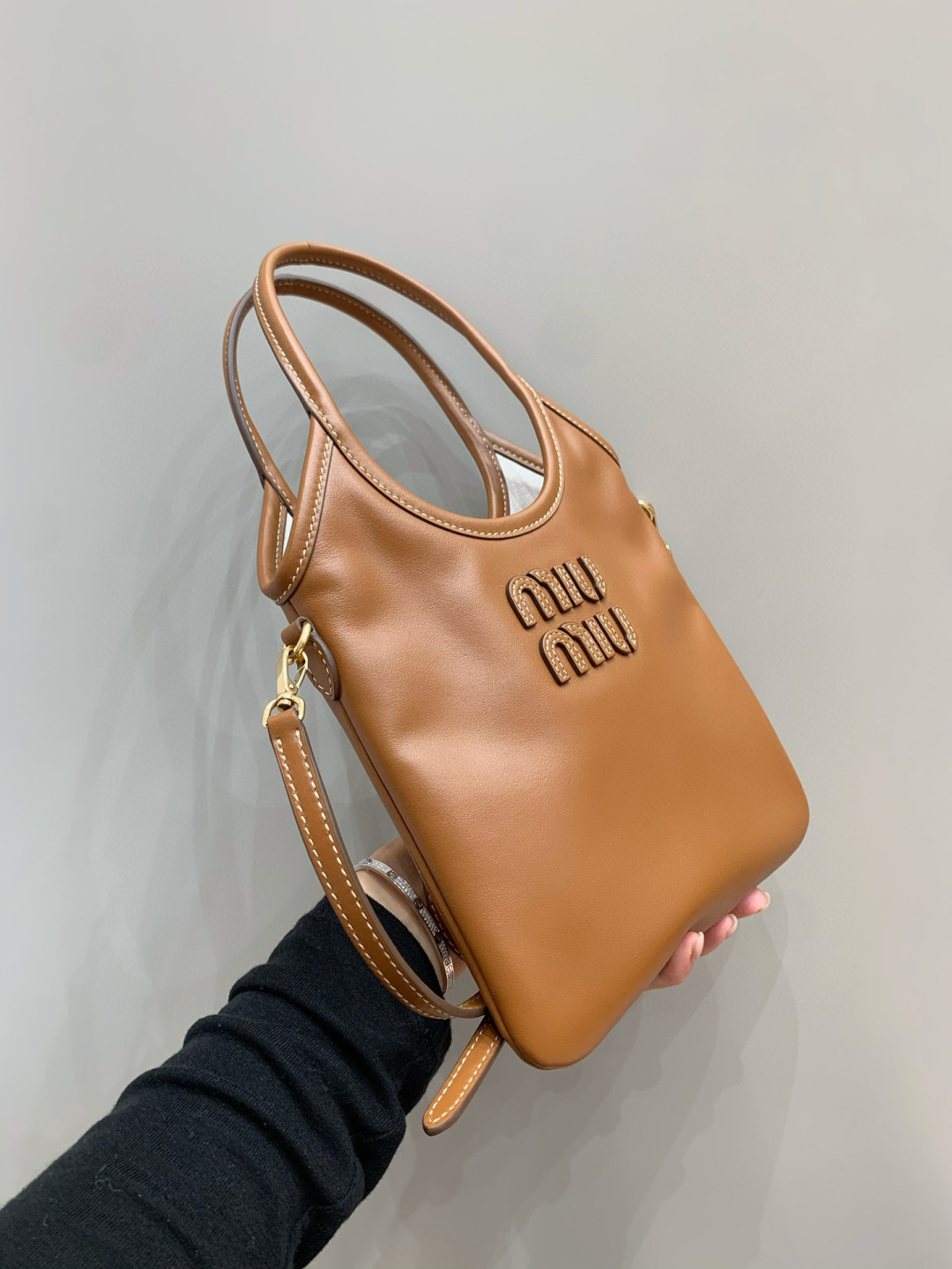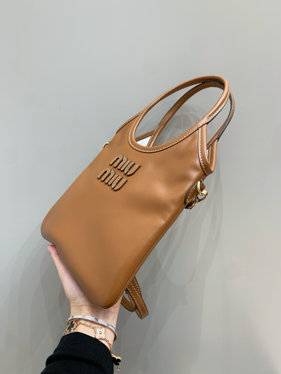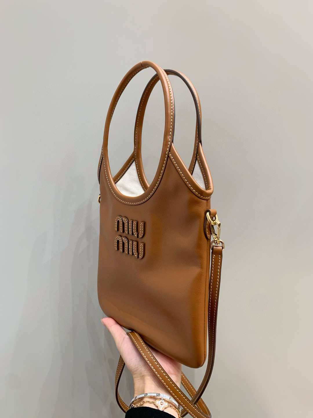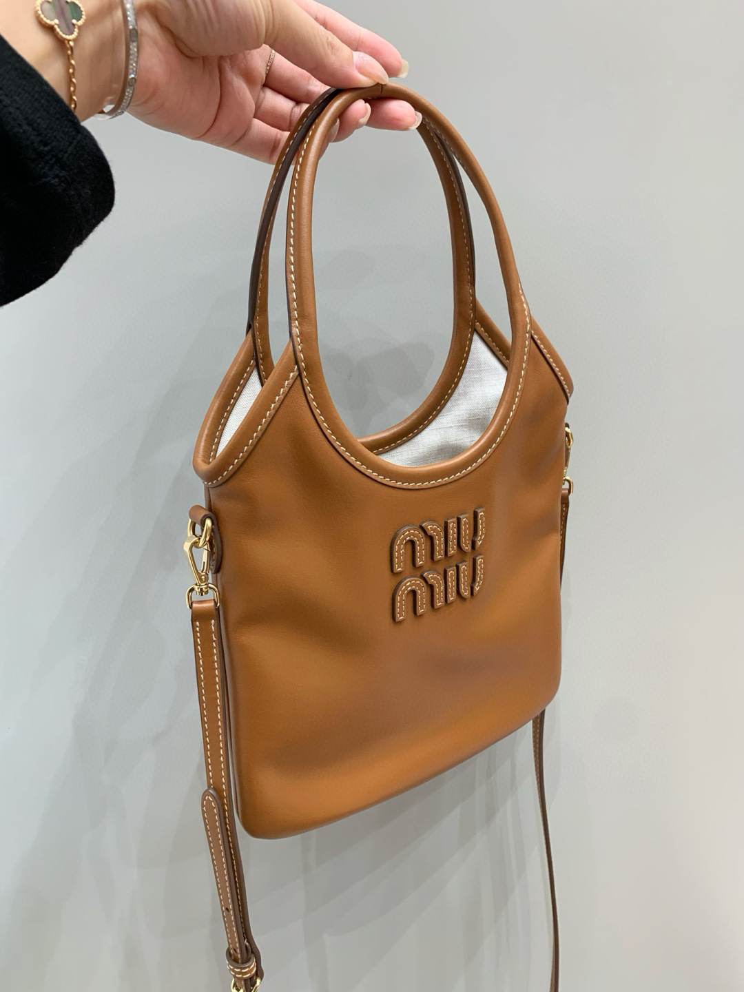 Miu Miu Mini Ivy Leather Top Handle Bag in Cognac - Stylish & Versatile