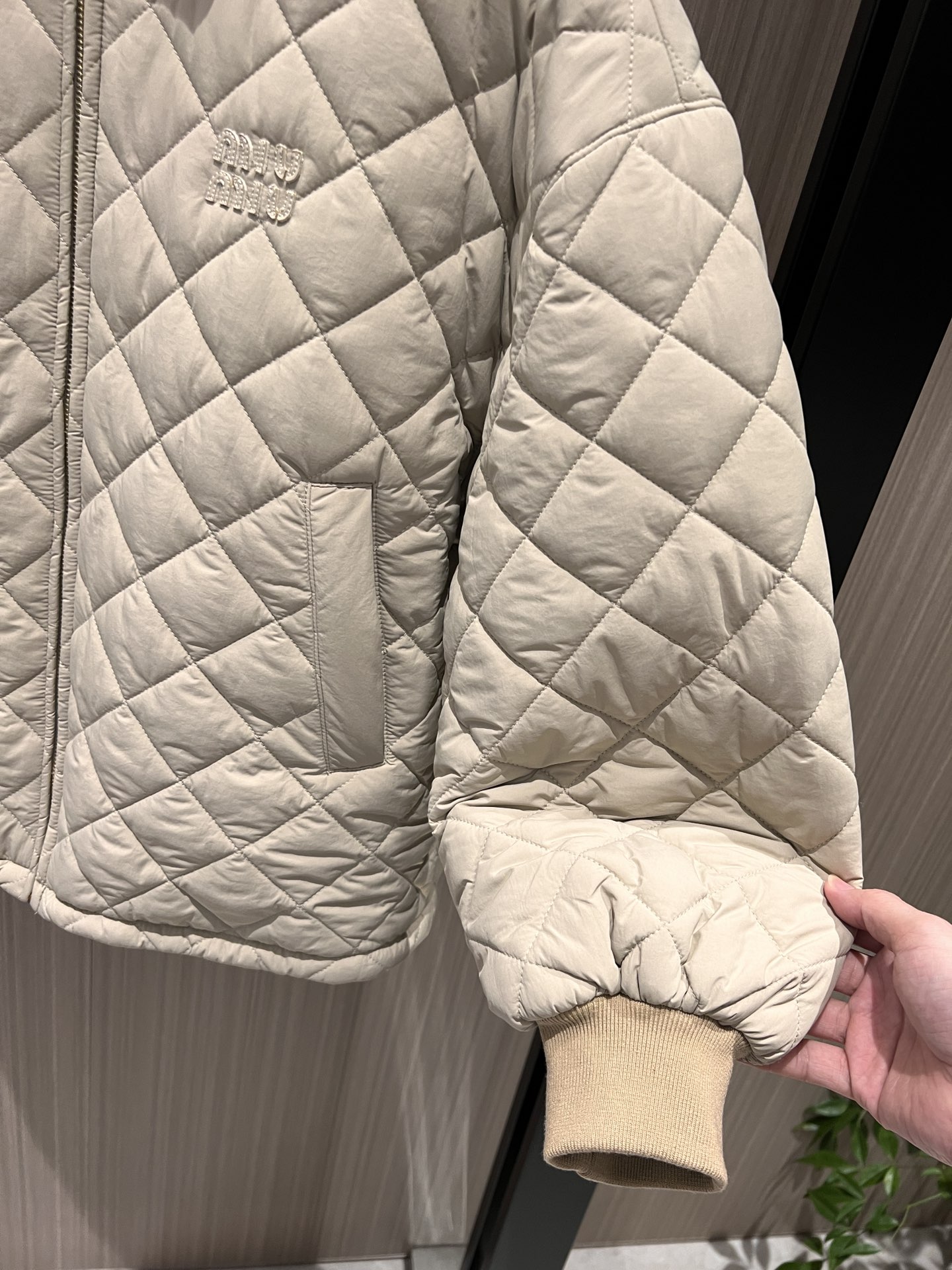 I absolutely love this jacket! It's so stylish and comfortable. The quilted design keeps me warm without being too bulky. The Miu Miu logo is a nice touch. I highly recommend it!