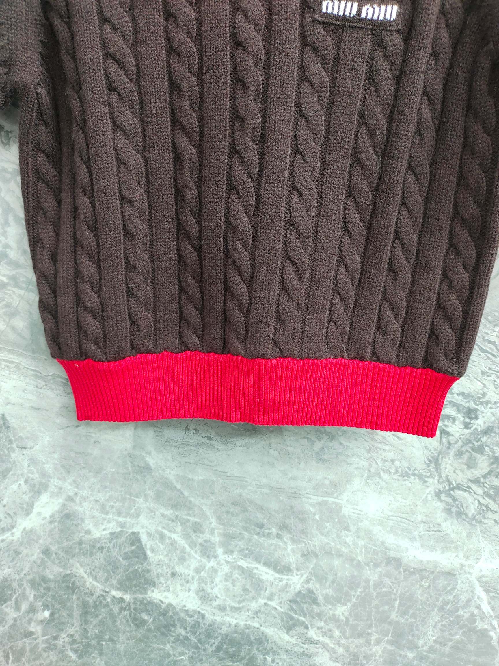 Elevate your wardrobe with this Miu Miu cable knit top. A blend of comfort and style, perfect for a chic, retro look. Available in S, M, L.