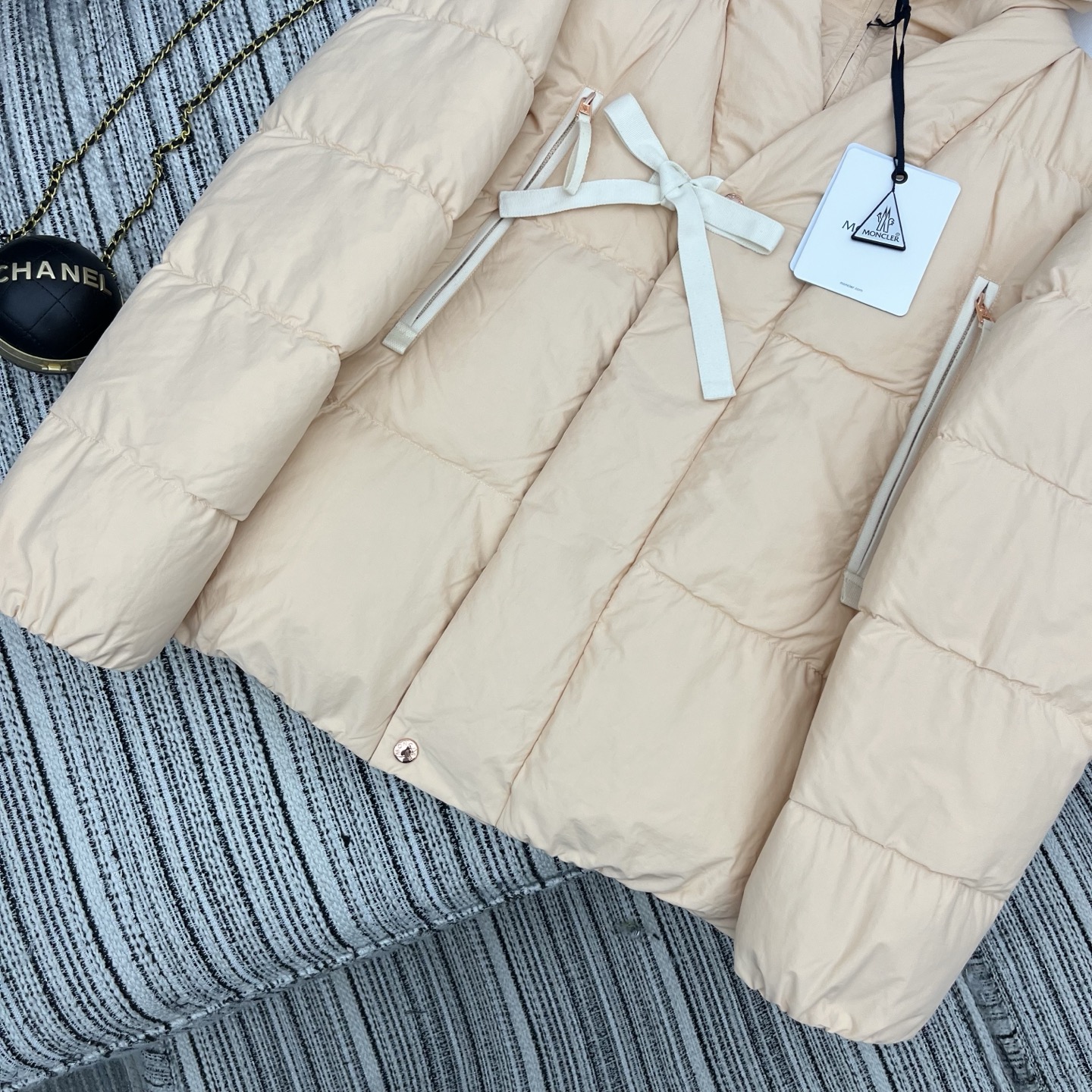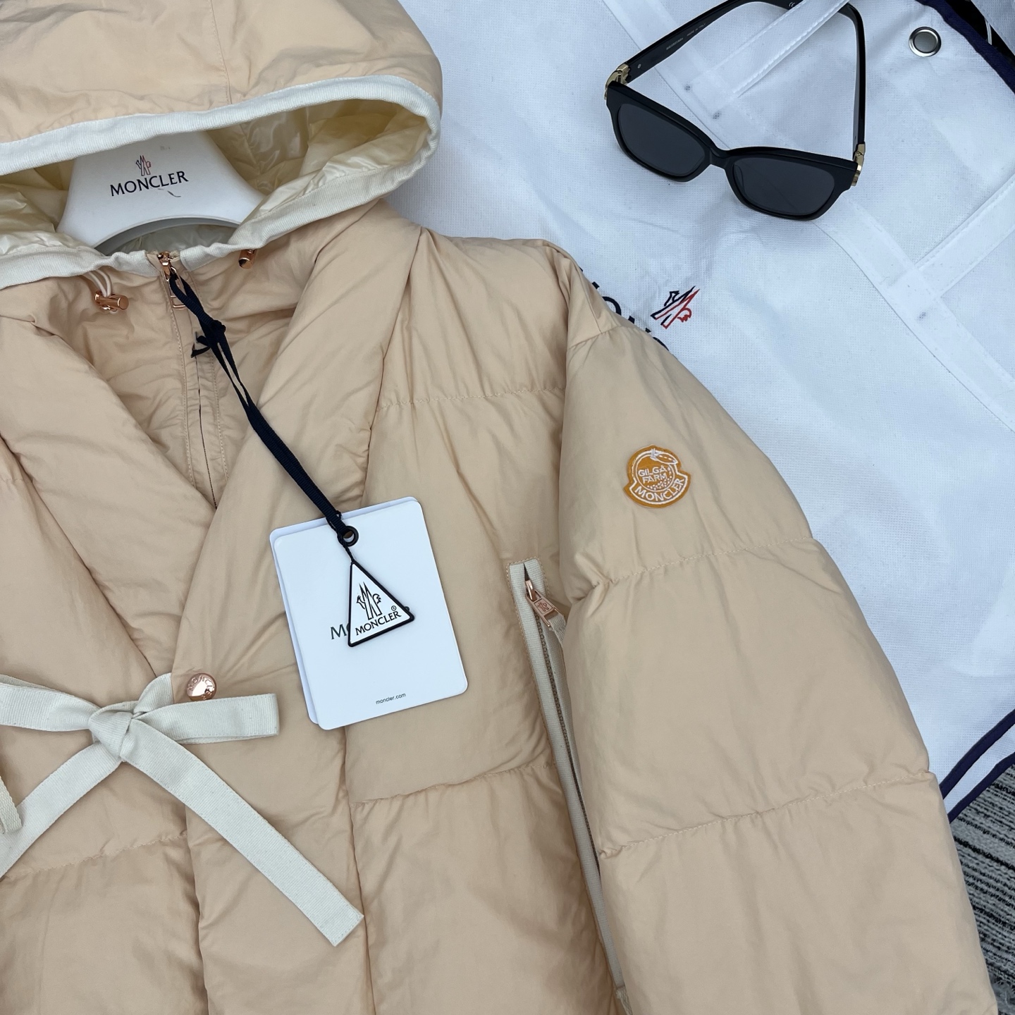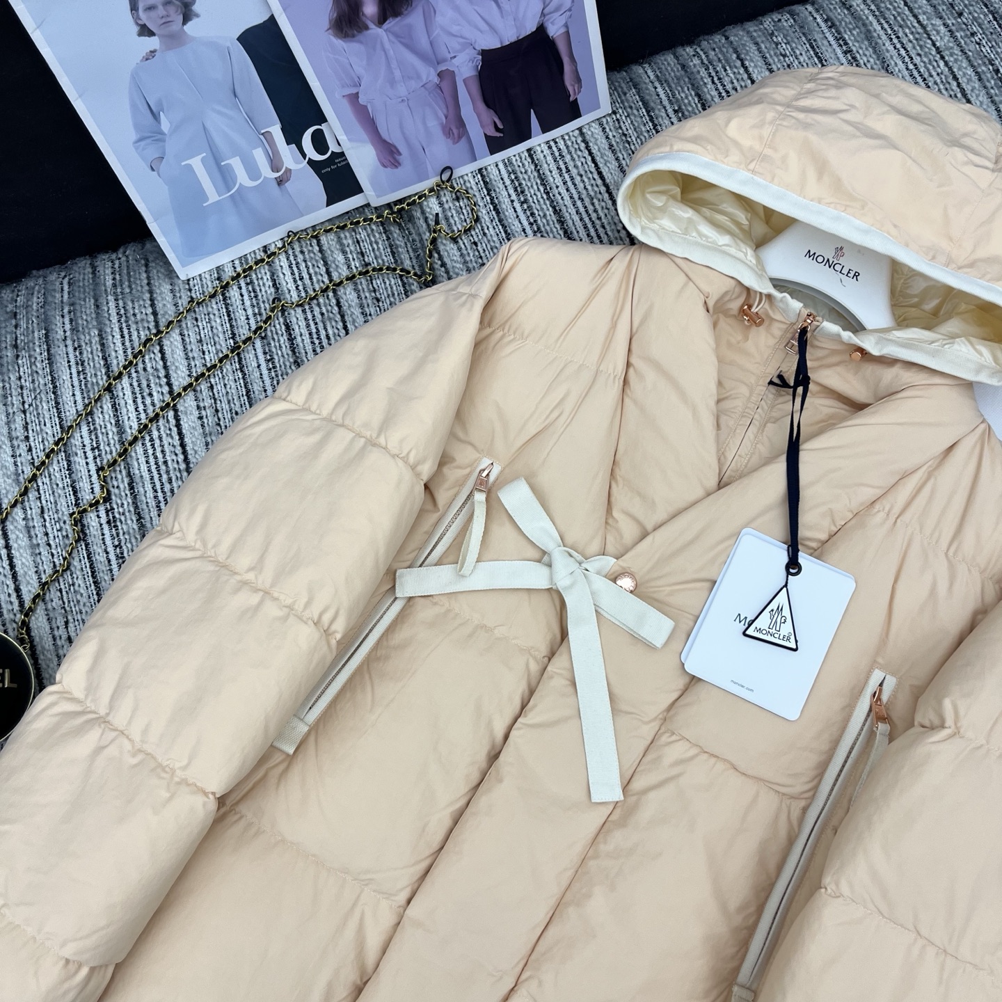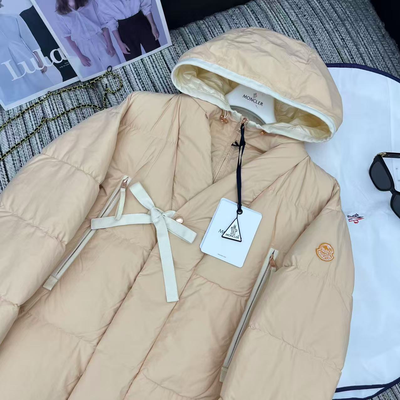 Moncler Women's Hooded Down Jacket with Ribbon Detail - Elegant & Warm
