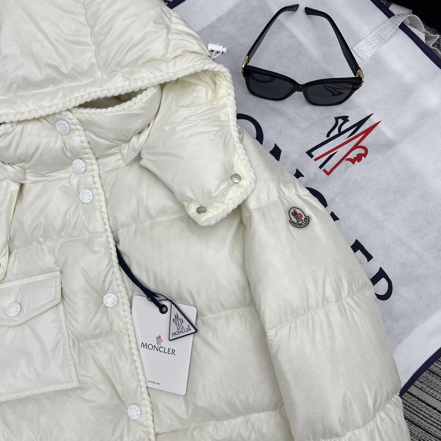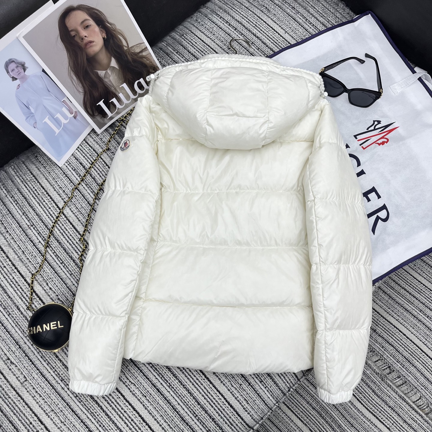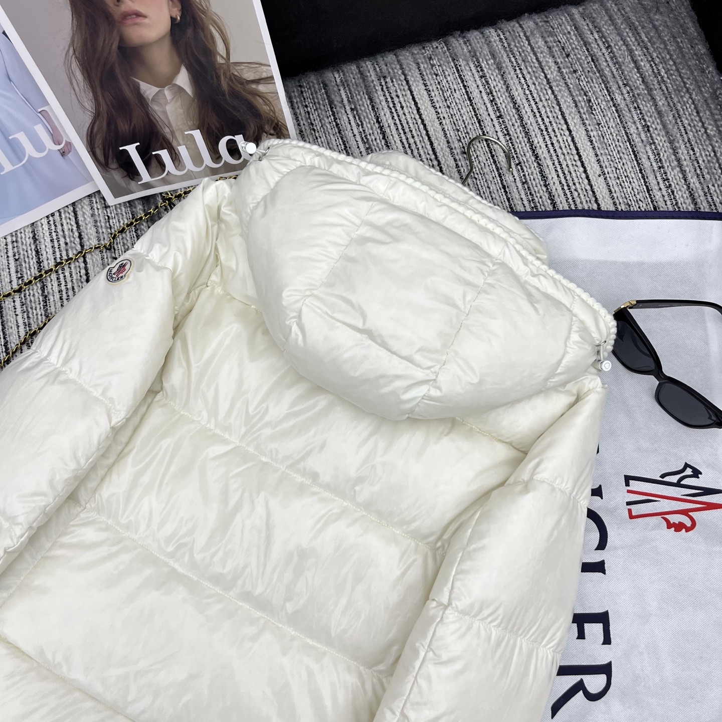 Stay warm and stylish with this Moncler hooded puffer jacket filled with premium 90% white goose down.