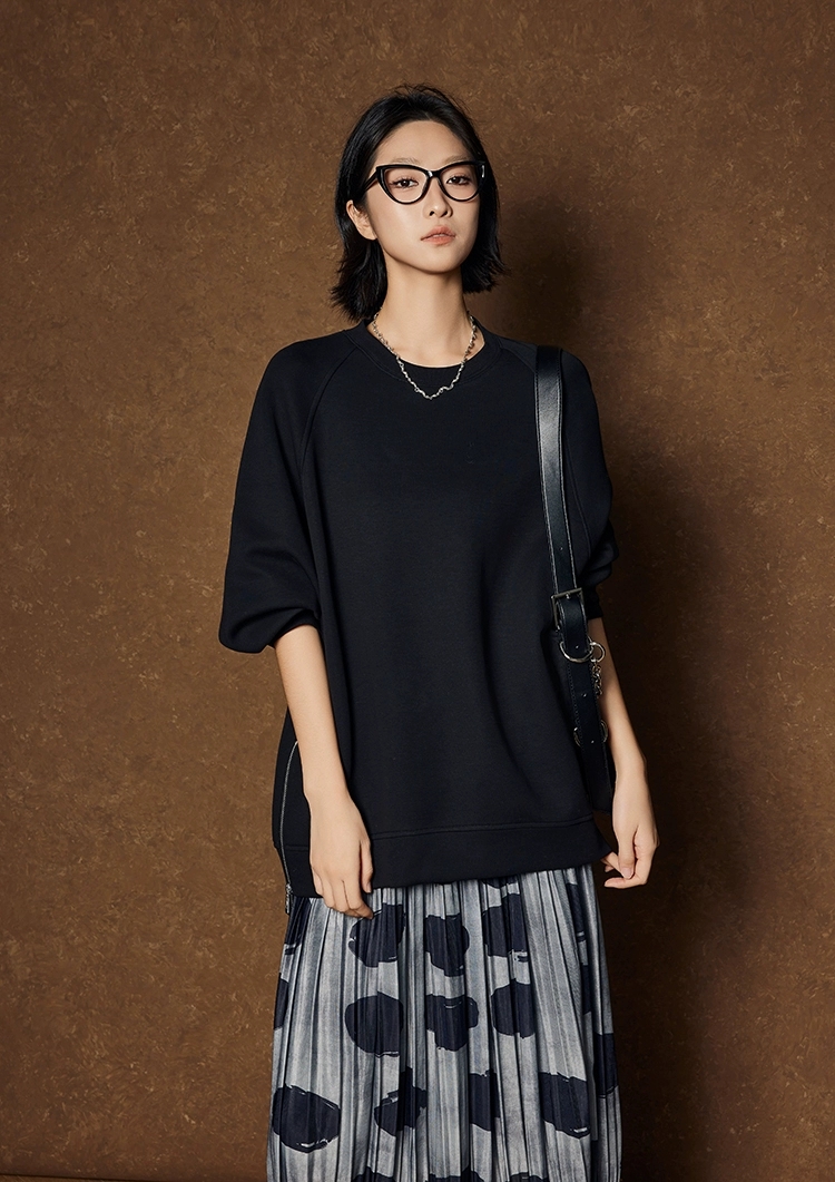 This relaxed fit sweatshirt combines comfort and style. The raglan sleeves and oversized cut ensure a comfortable fit, while the zipper adds a touch of uniqueness.