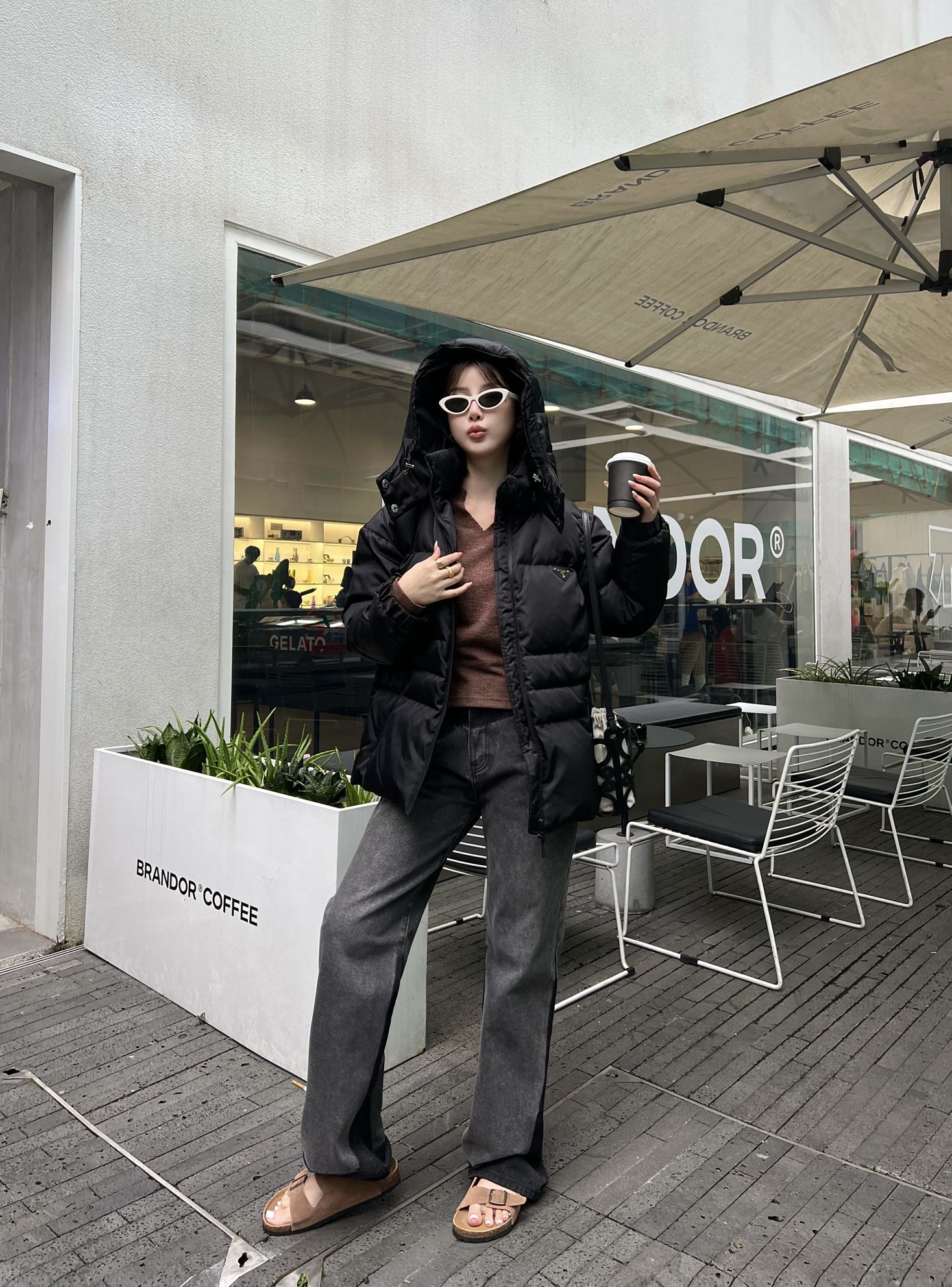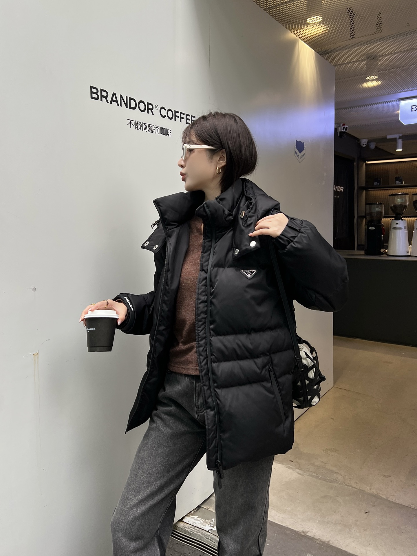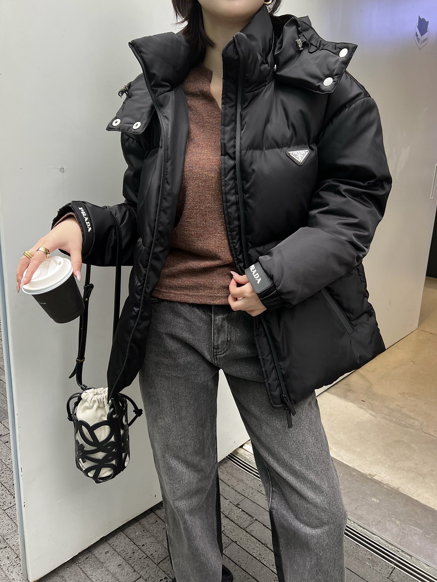This Prada hooded down jacket is a must-have for the fashion-forward individual seeking warmth and style. It combines practicality with high-end design, making it an essential addition to your winter wardrobe.