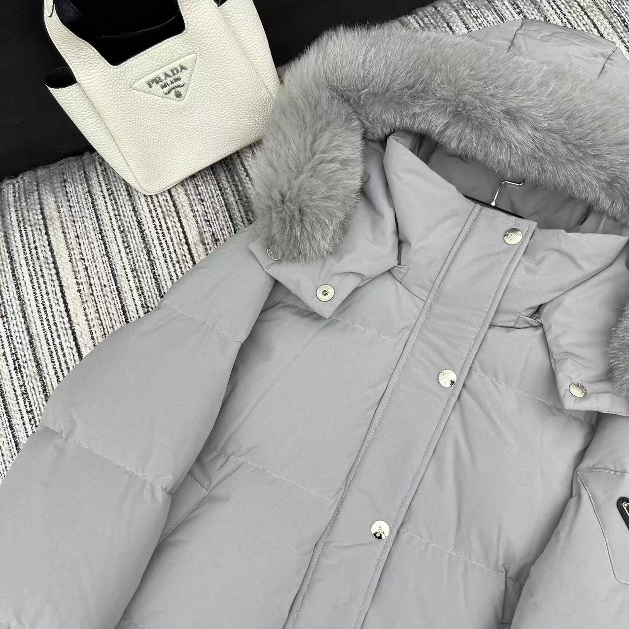Prada 2025 Early Autumn Down Jacket with Fox Fur Hood Trim