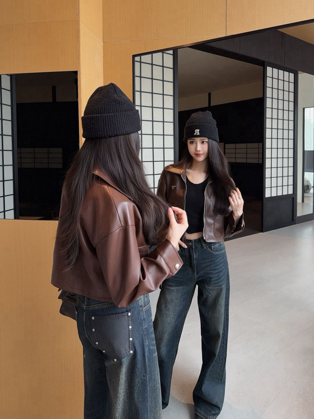Elevate your style with this Prada 2025FW cropped jacket. Crafted from premium PU leather, it offers a unique blend of sophistication and edge. Perfect for any outfit.