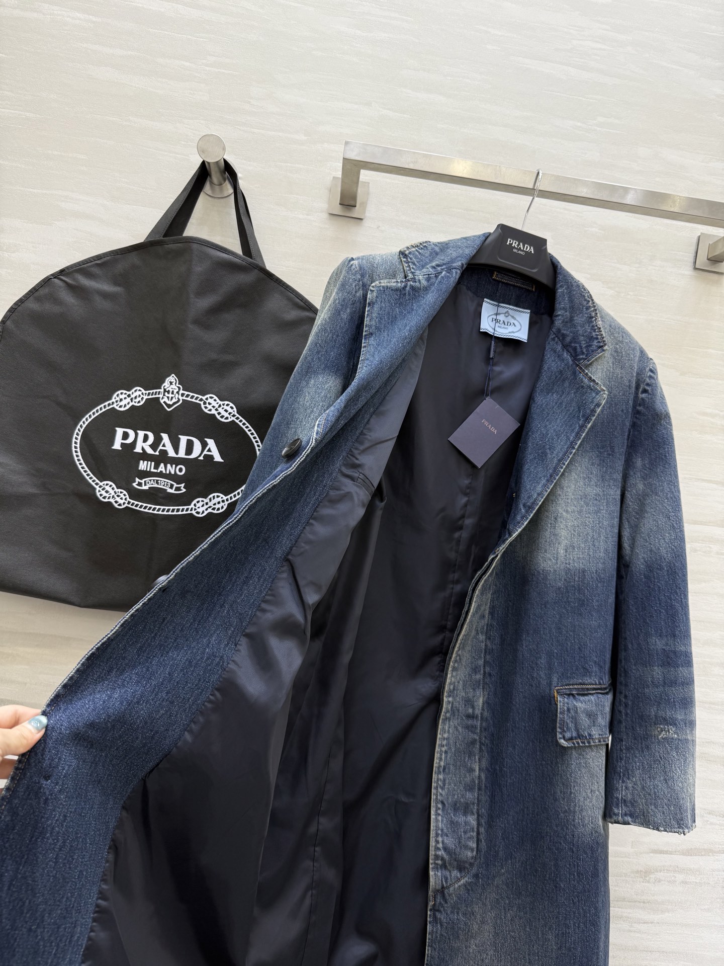 Prada Denim Long Coat Blazer Jacket, Western Style, Women's Fashion
