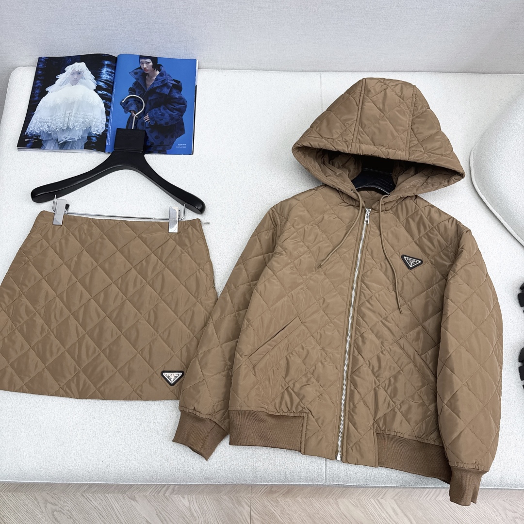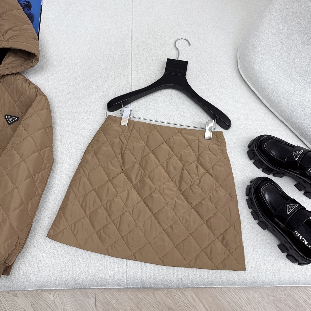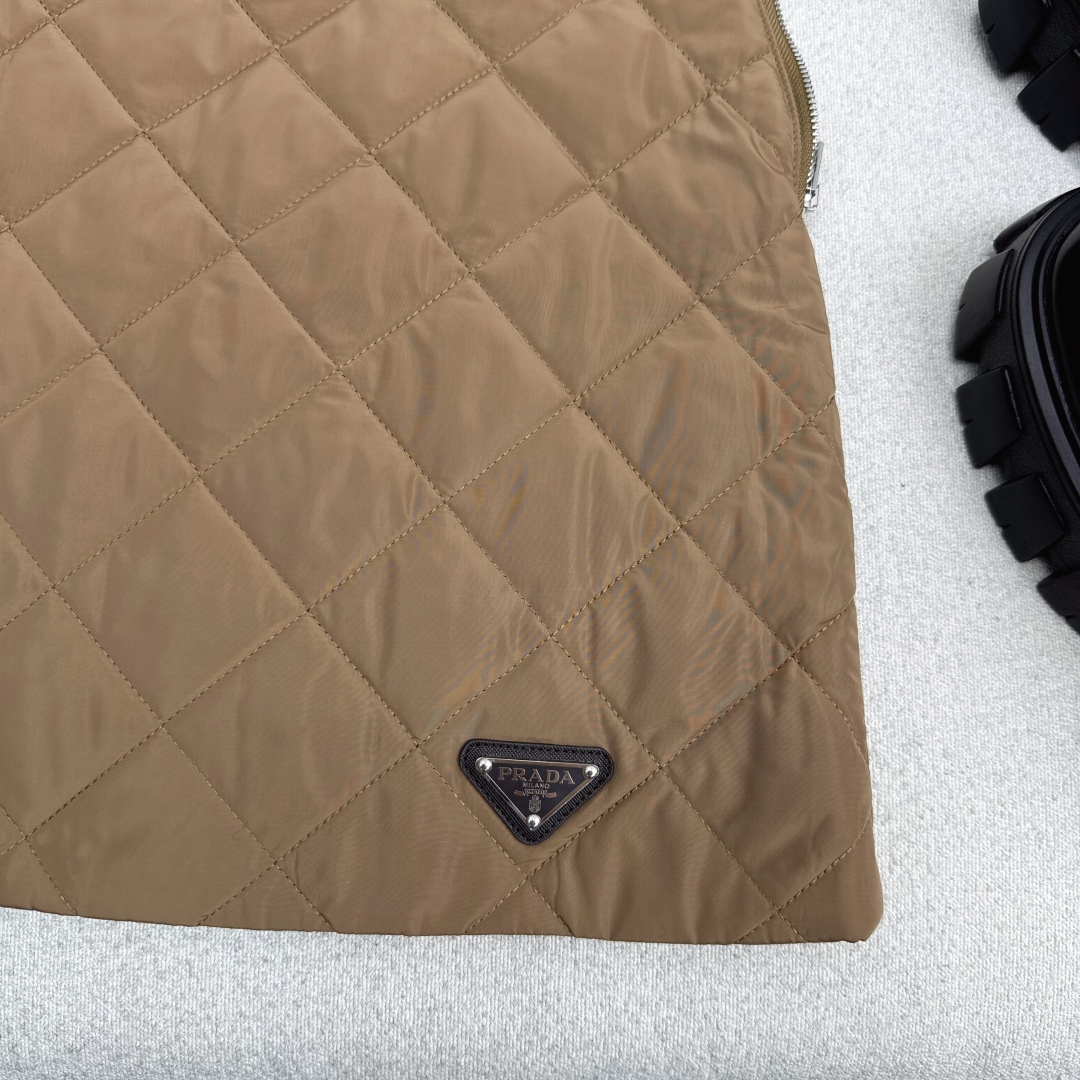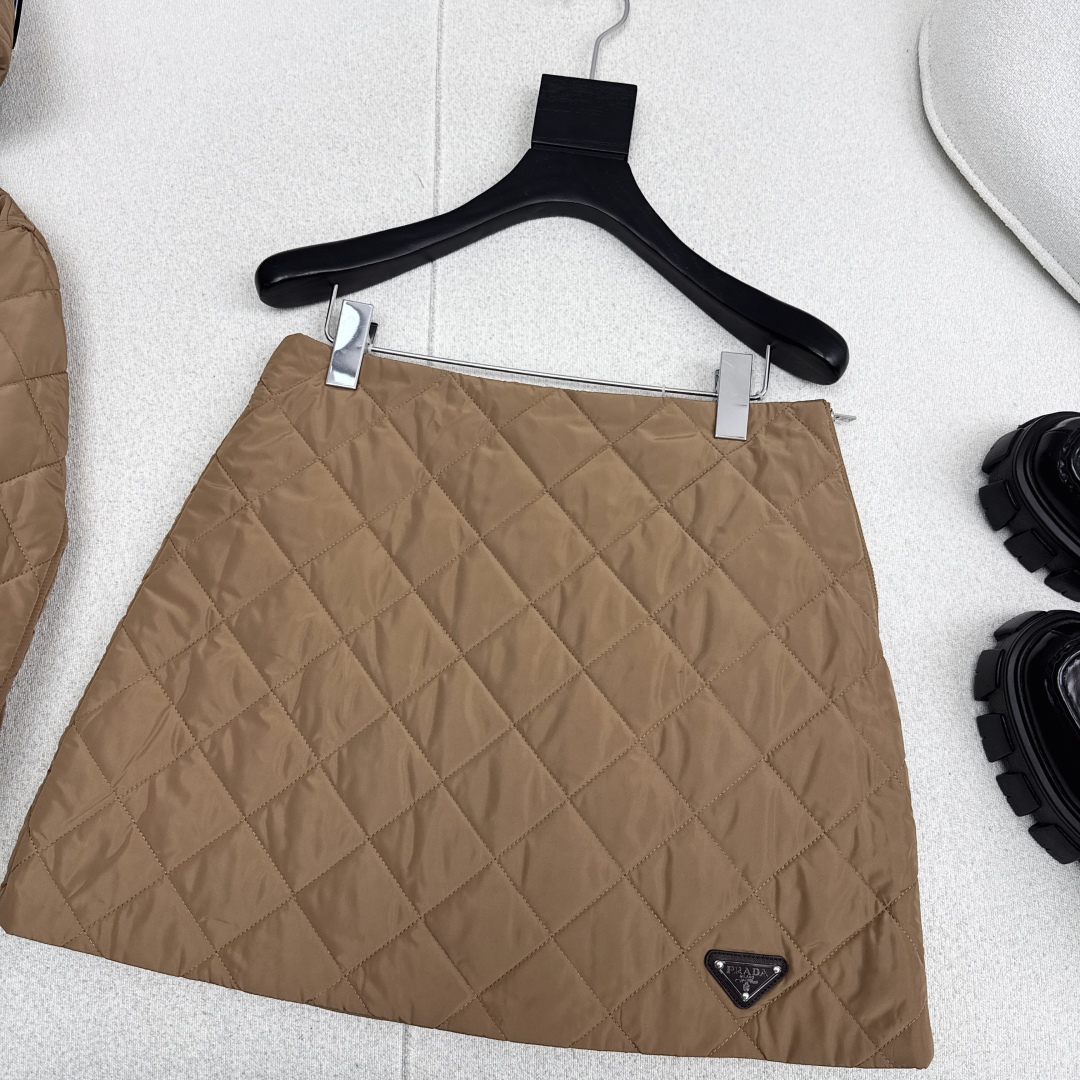 Prada Quilted Mini Skirt, Recycled Nylon, Triangle Logo, A-Line Cut