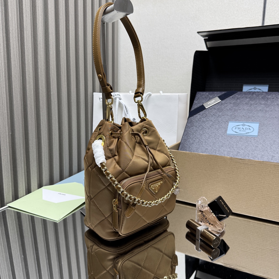 Prada Re-Nylon Bucket Bag, Quilted Design, Versatile Shoulder & Crossbody Bag