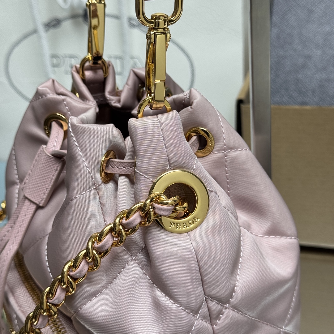 Prada Re-Nylon Quilted Bucket Bag Shoulder Bag 1BH038, Pink