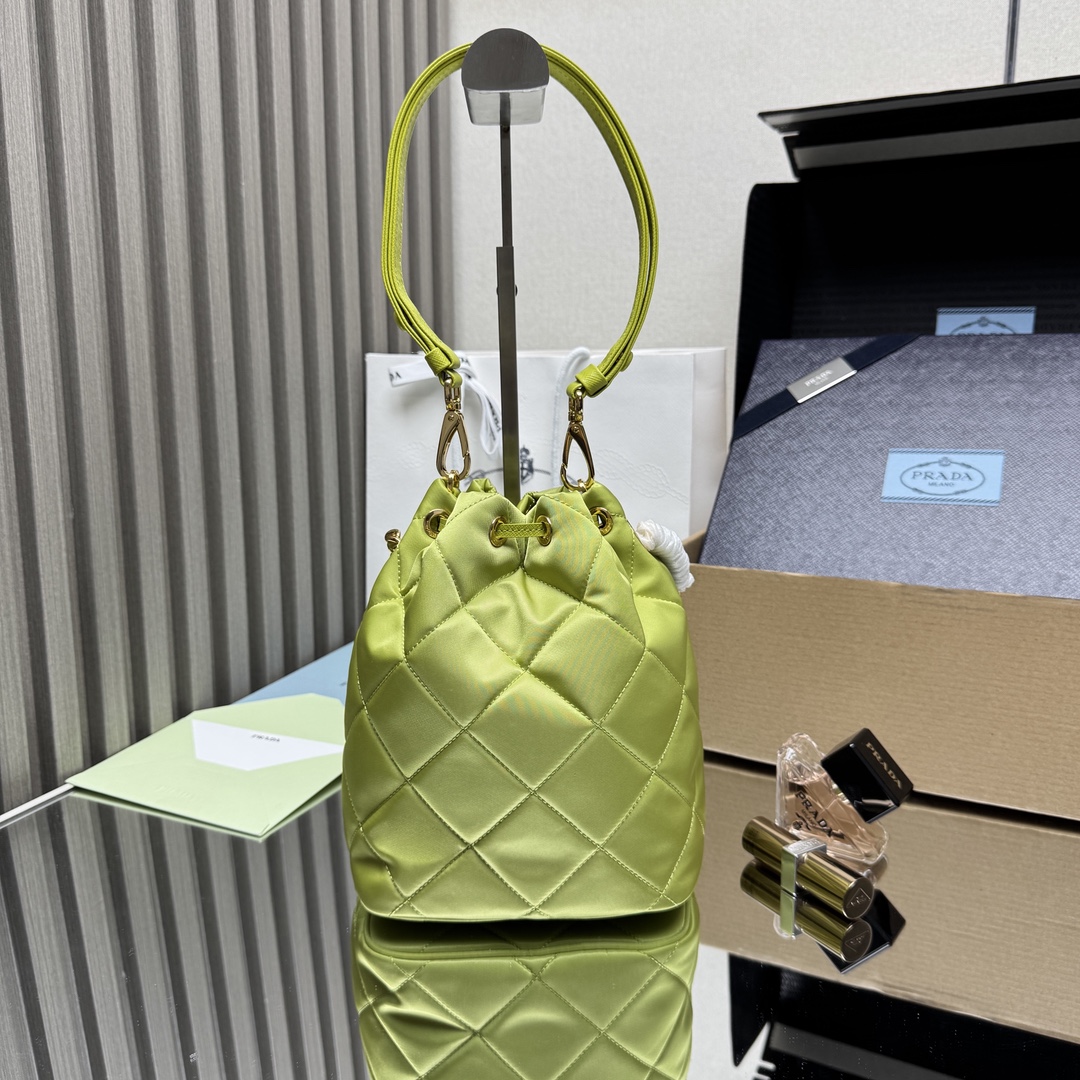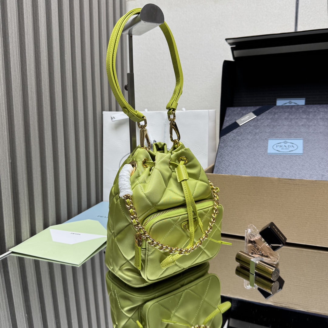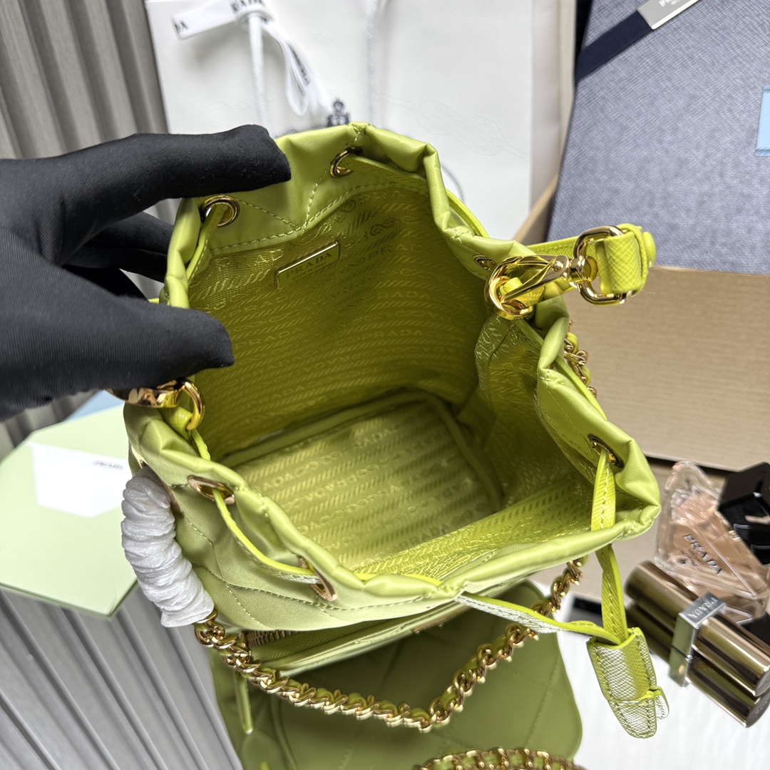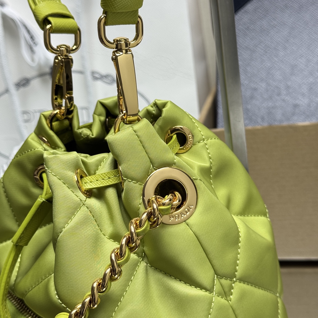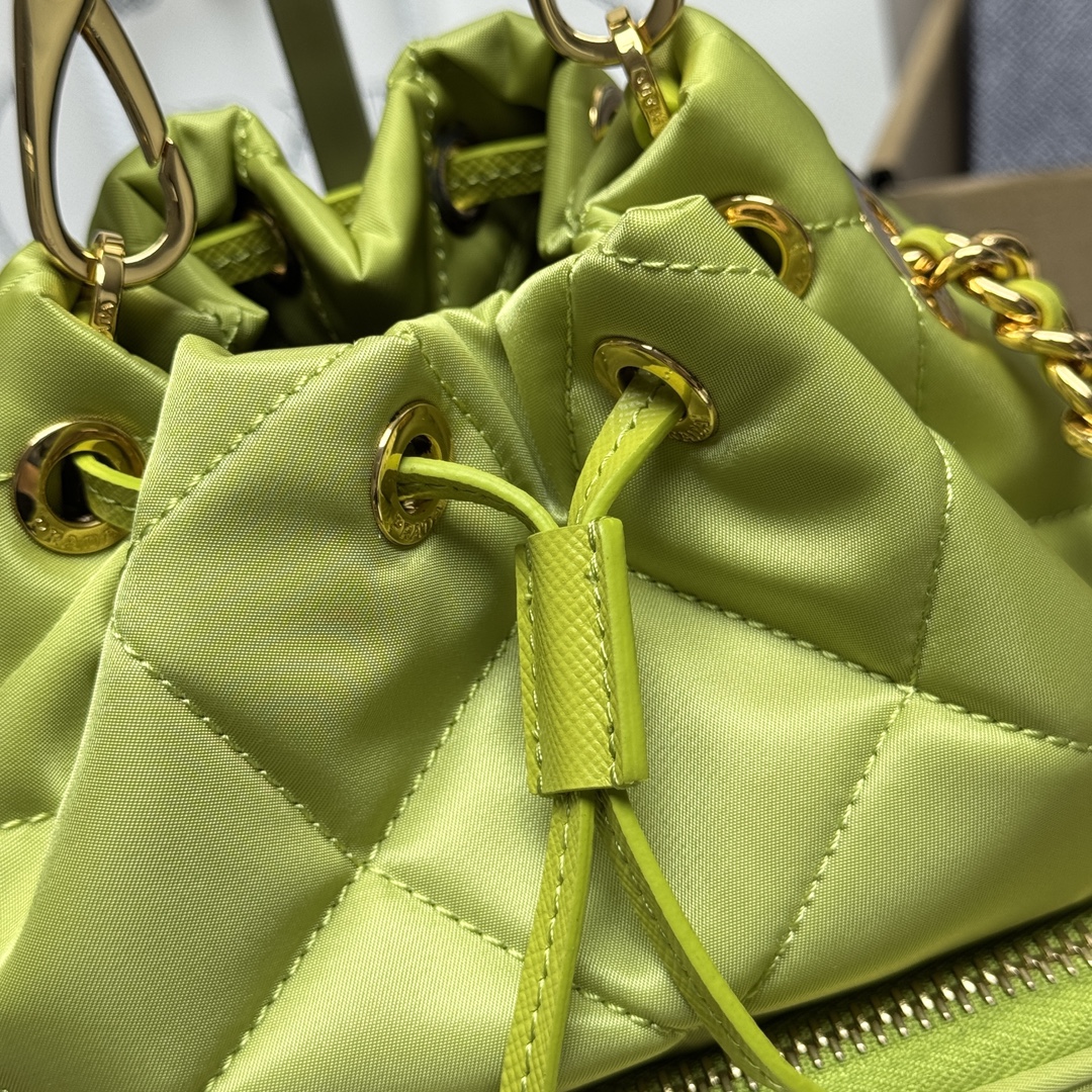 Tags: Chain Strap Bag, Designer bucket bag, Green Nylon Bag, Prada Bucket Bag, Quilted Crossbody Bag, Re-Nylon Handbag