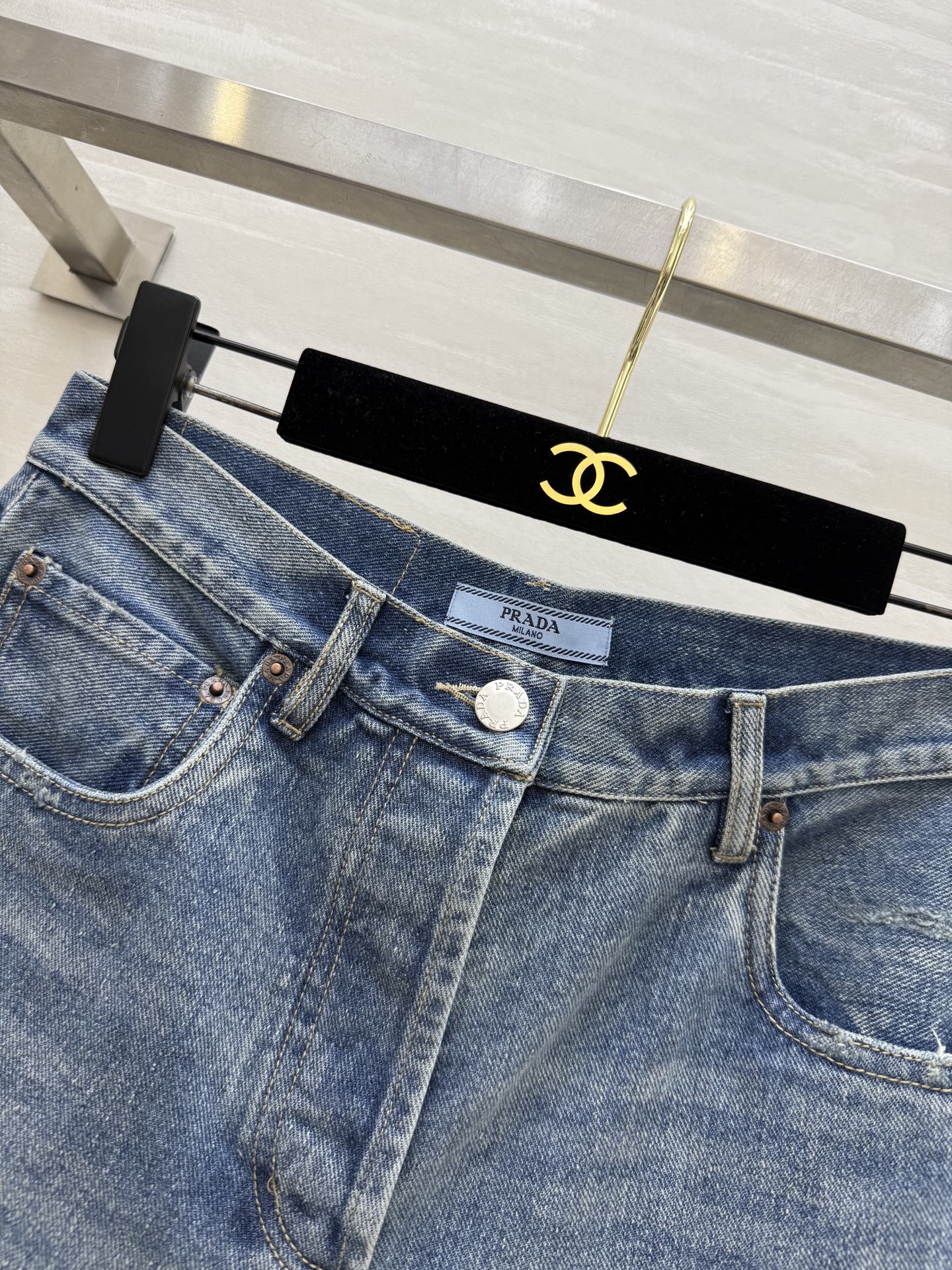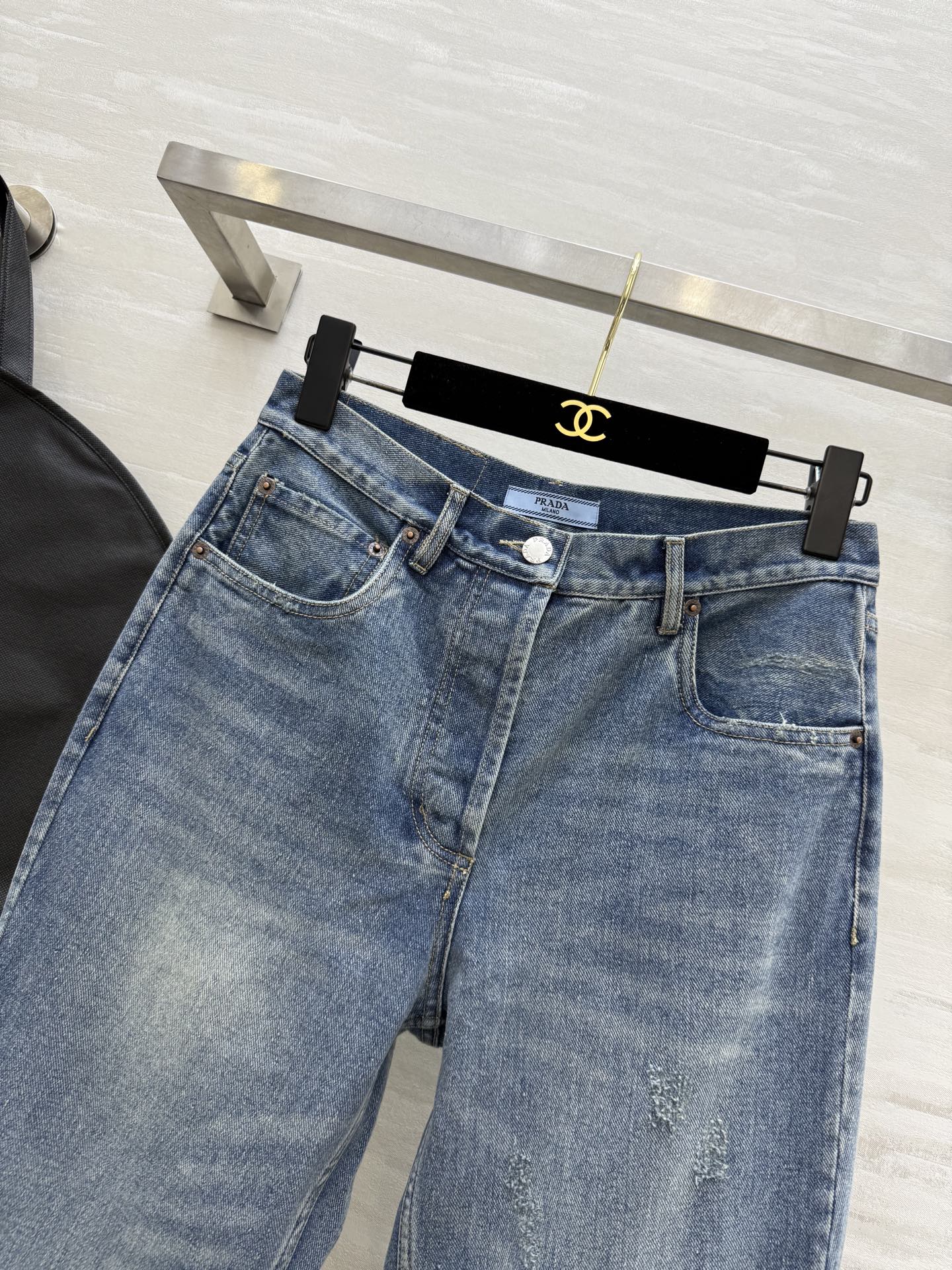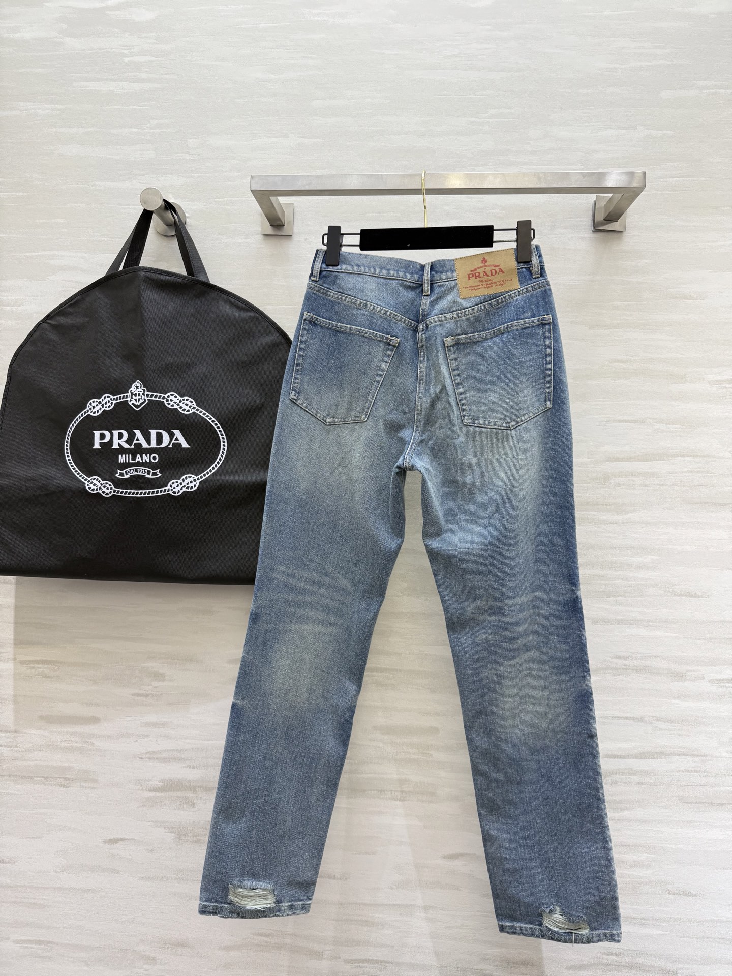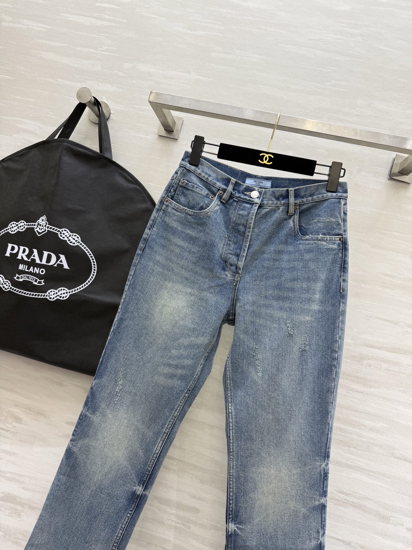 These Prada washed denim jeans blend classic design with modern style, perfect for the fashion-forward individual.