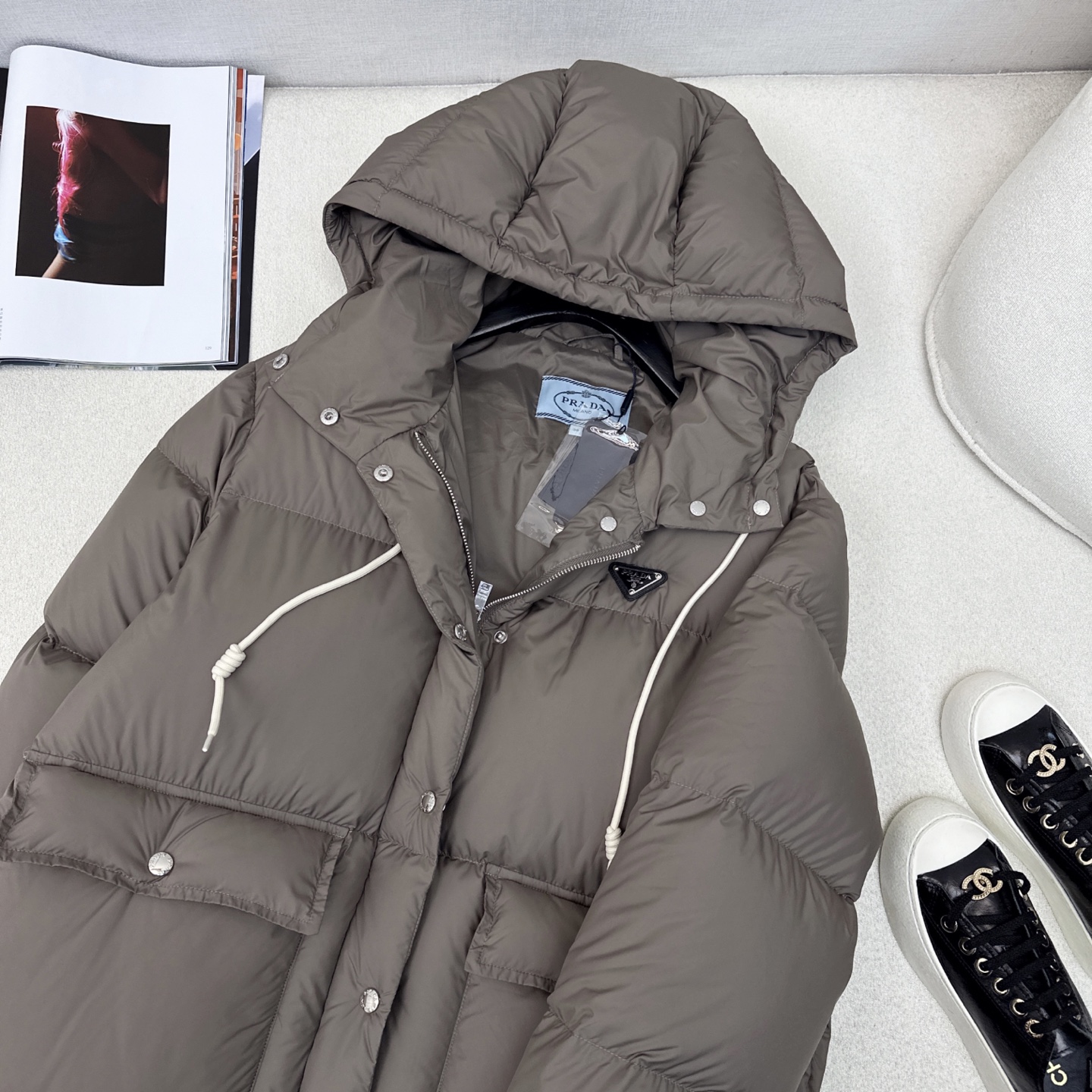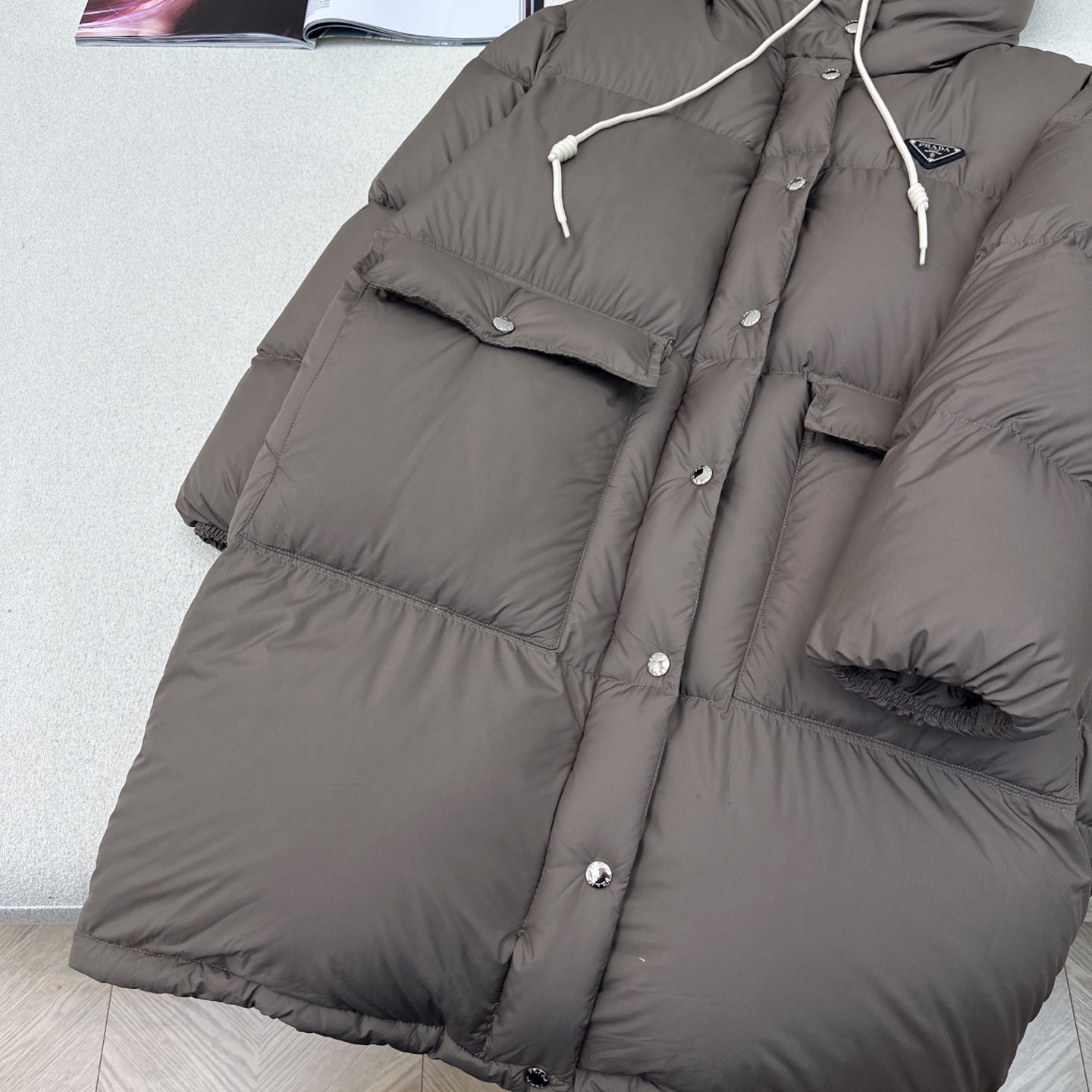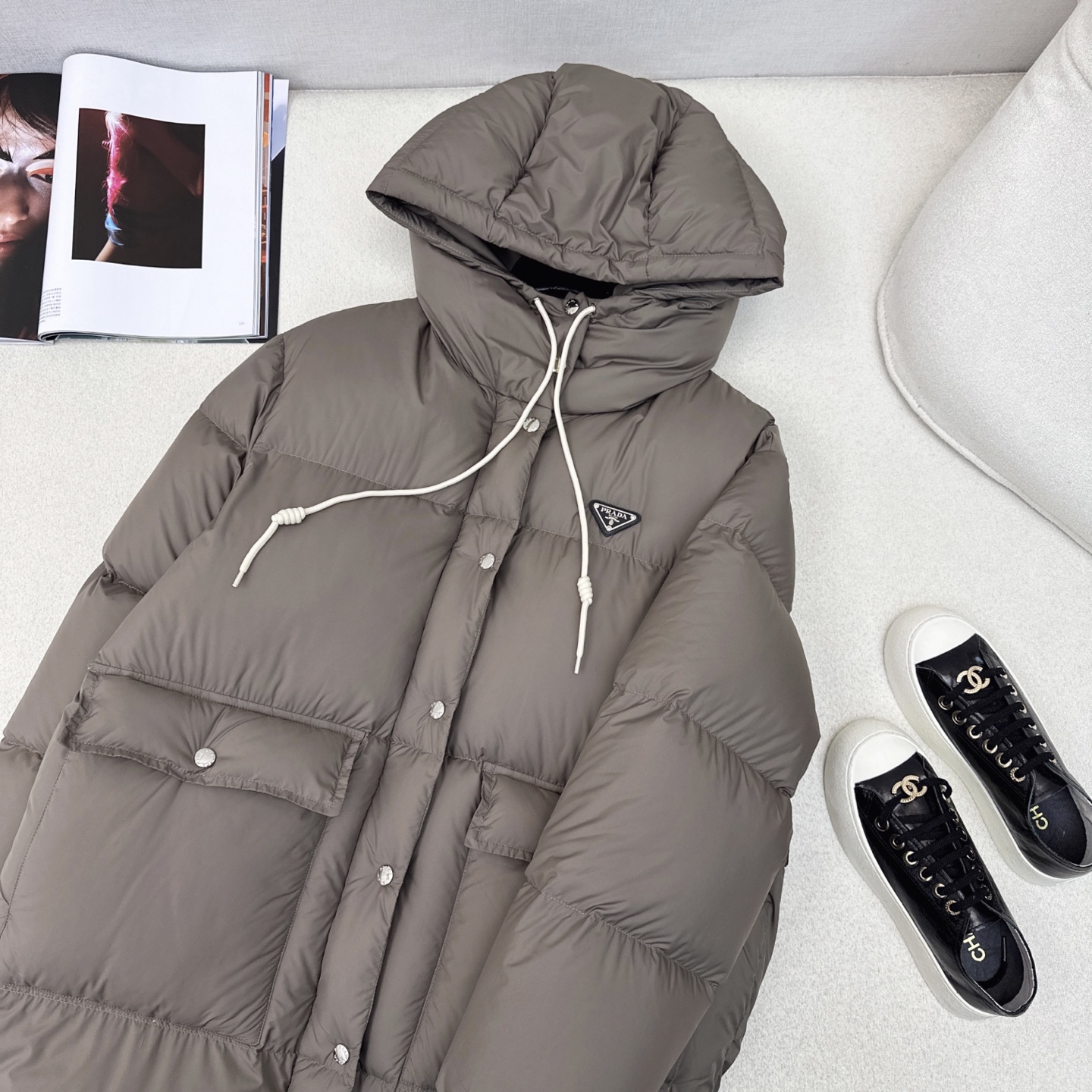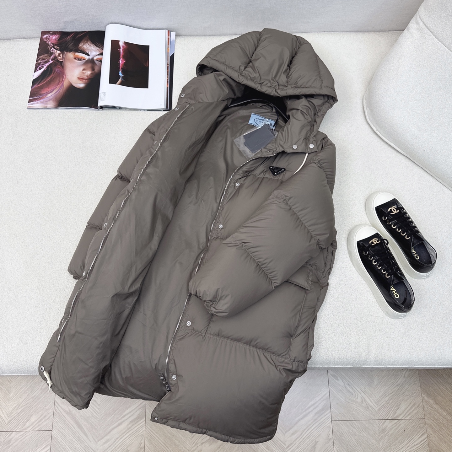 Prada Women's Hooded Padded Puffer Coat Goose Down Filled Overcoat