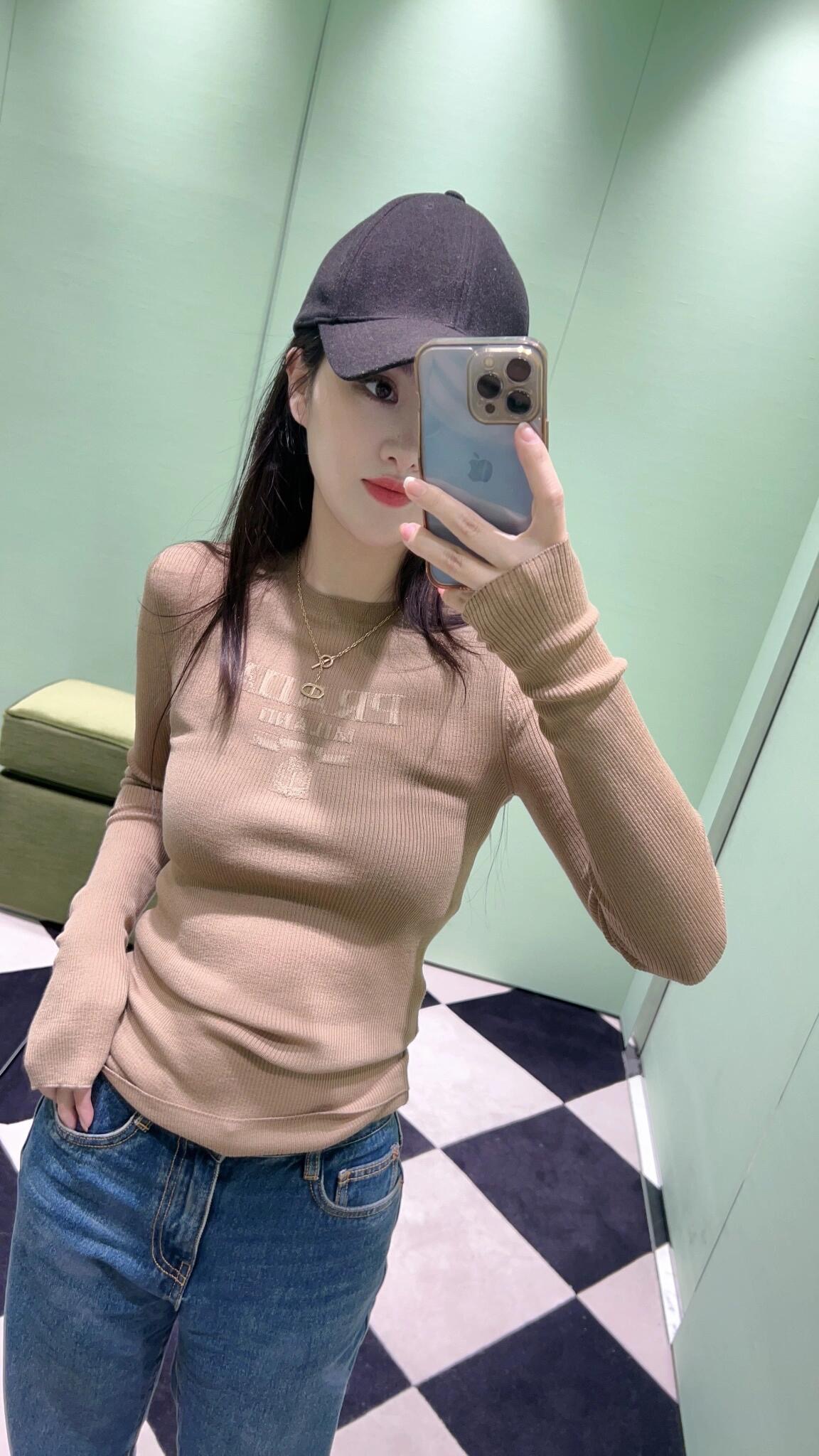 Tags: Designer Wool Top, Long Sleeve Top, Prada Autumn Winter Collection, Prada Wool Blend Top, Slim Fit Long Sleeve Top, Wool Blend Top