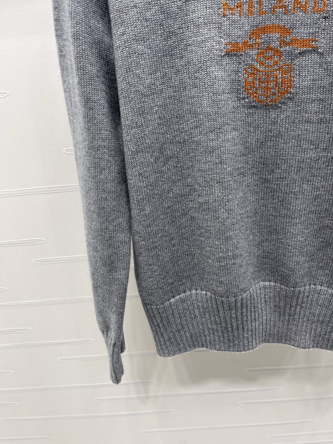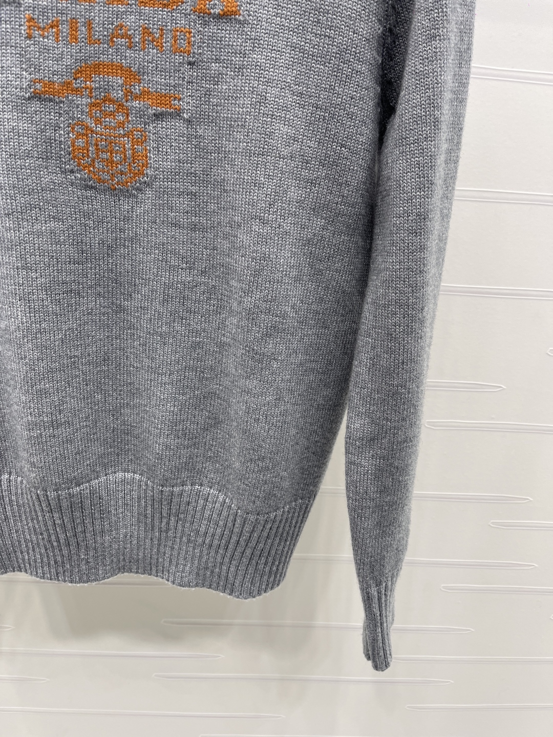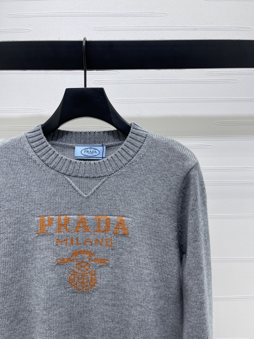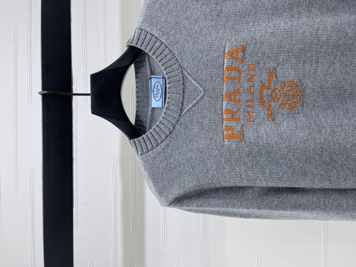 This luxurious wool sweater embodies timeless elegance and comfort. Crafted from high-quality materials and featuring the iconic Prada logo, it's a must-have for any fashion-conscious individual.