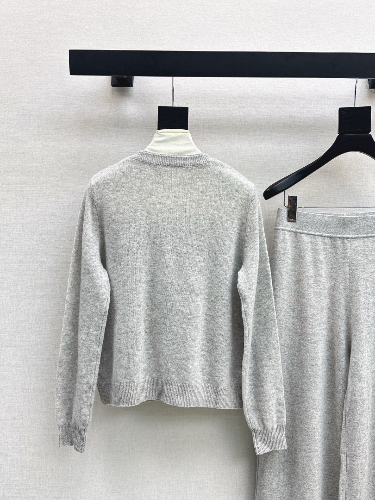 Ralph Lauren Women's Gray Wool Knit Set: Cardigan & Wide Leg Pants