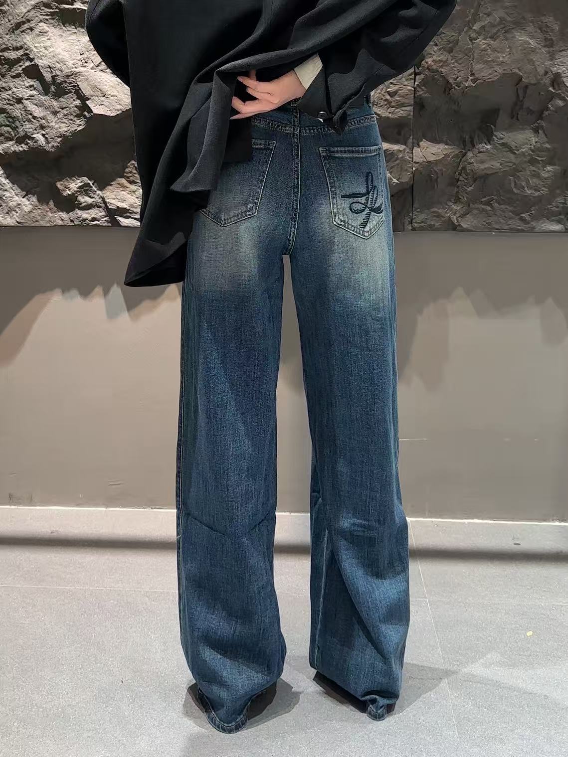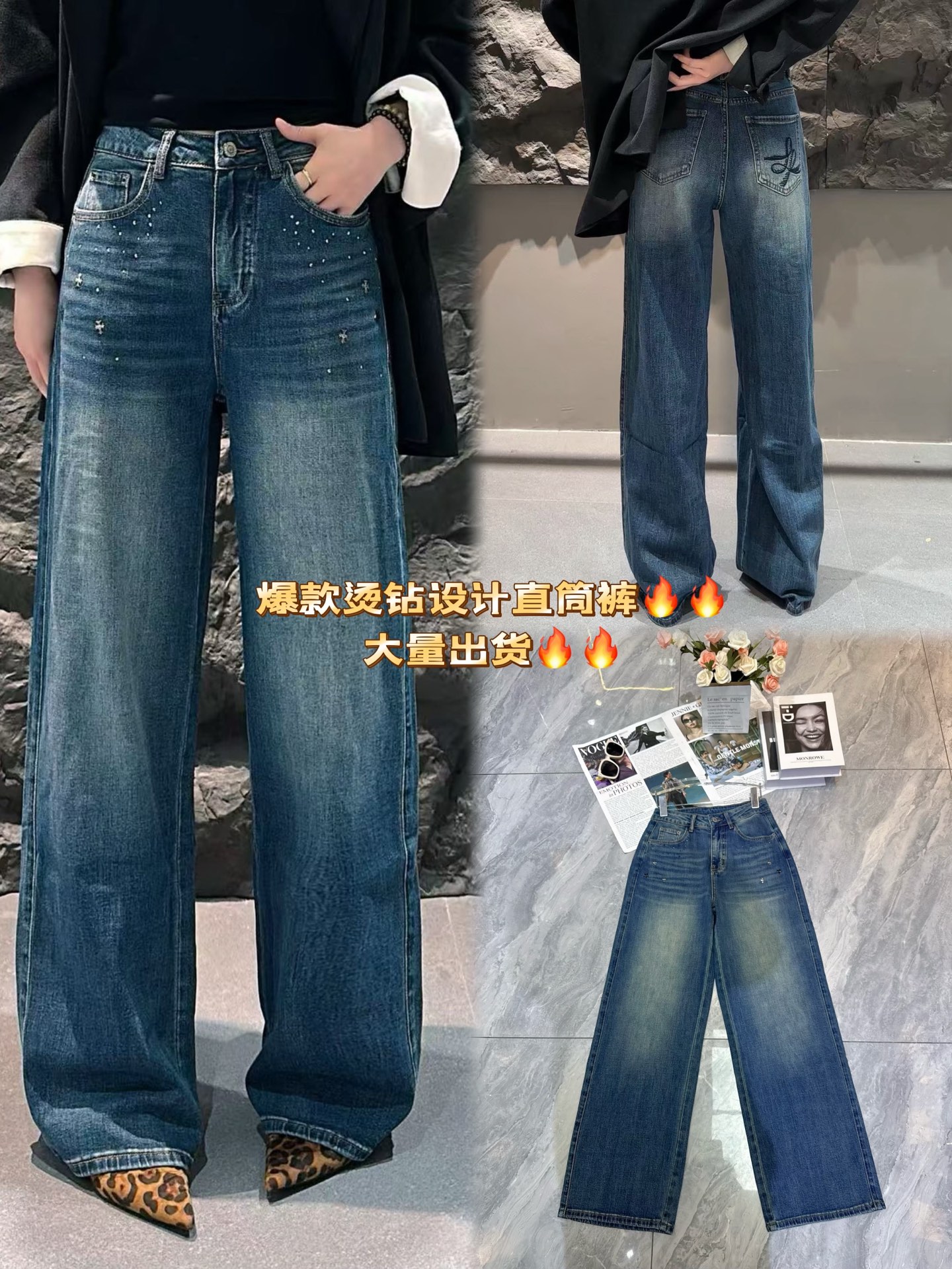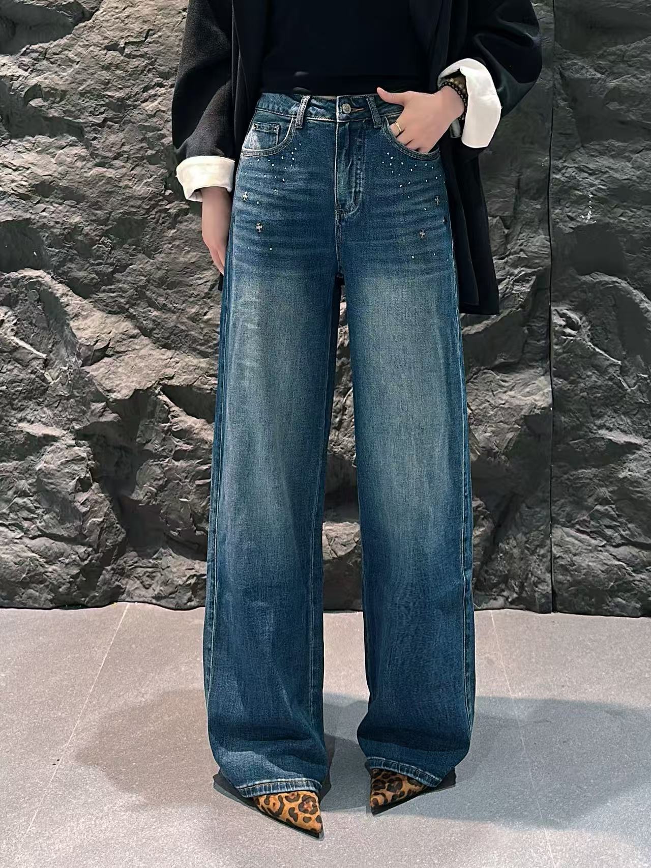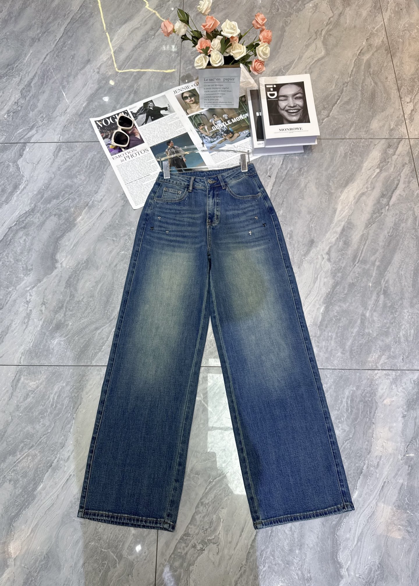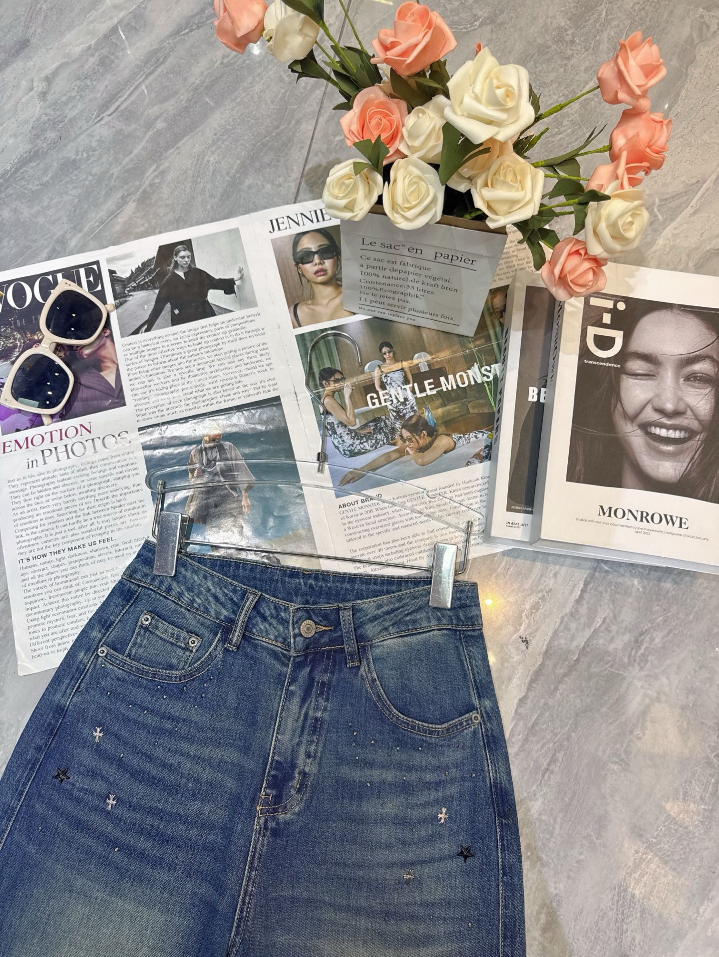 These jeans perfectly blend vintage aesthetics with contemporary fashion. The rhinestone details add a touch of glamour, while the straight-leg cut ensures a flattering fit for all body types.