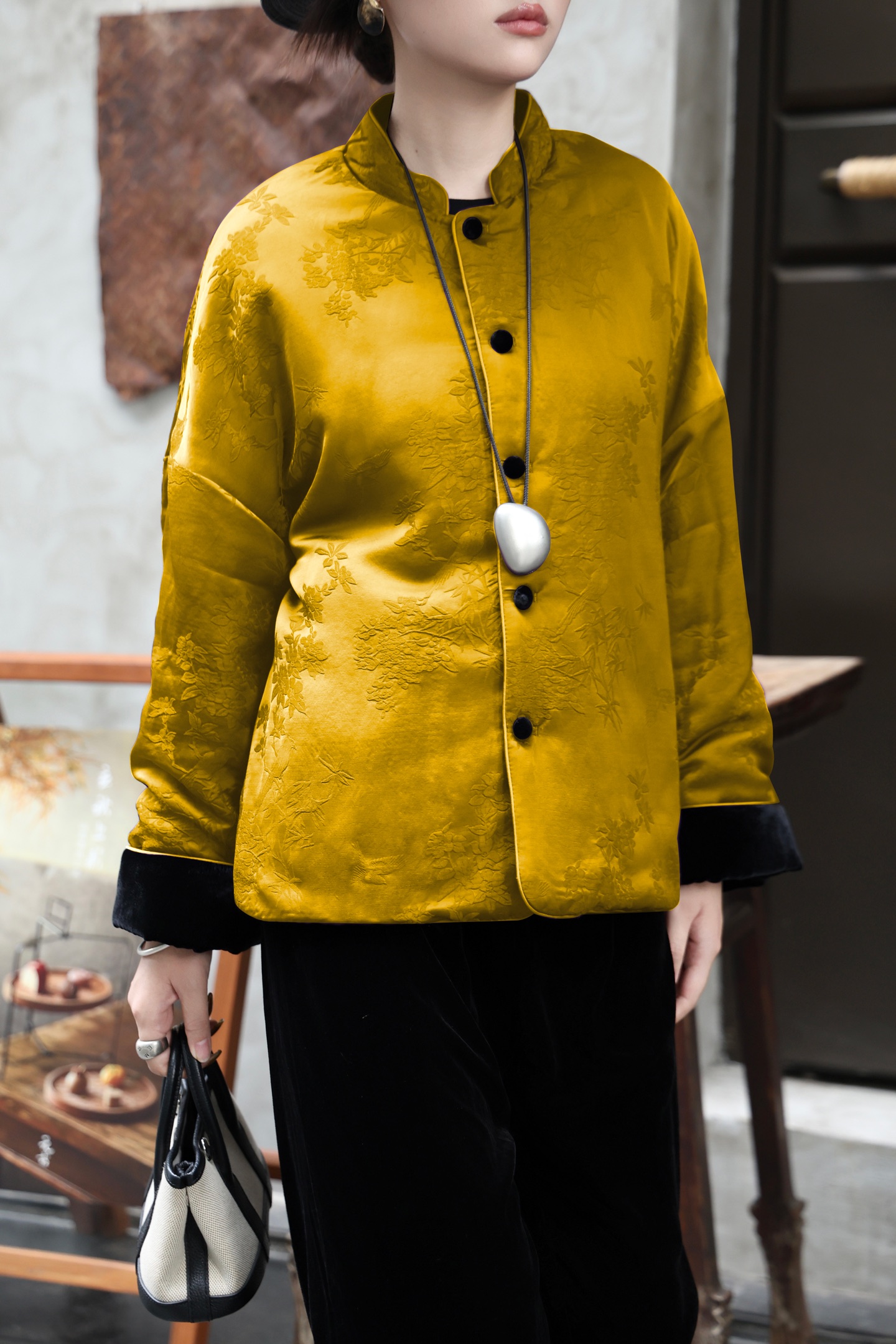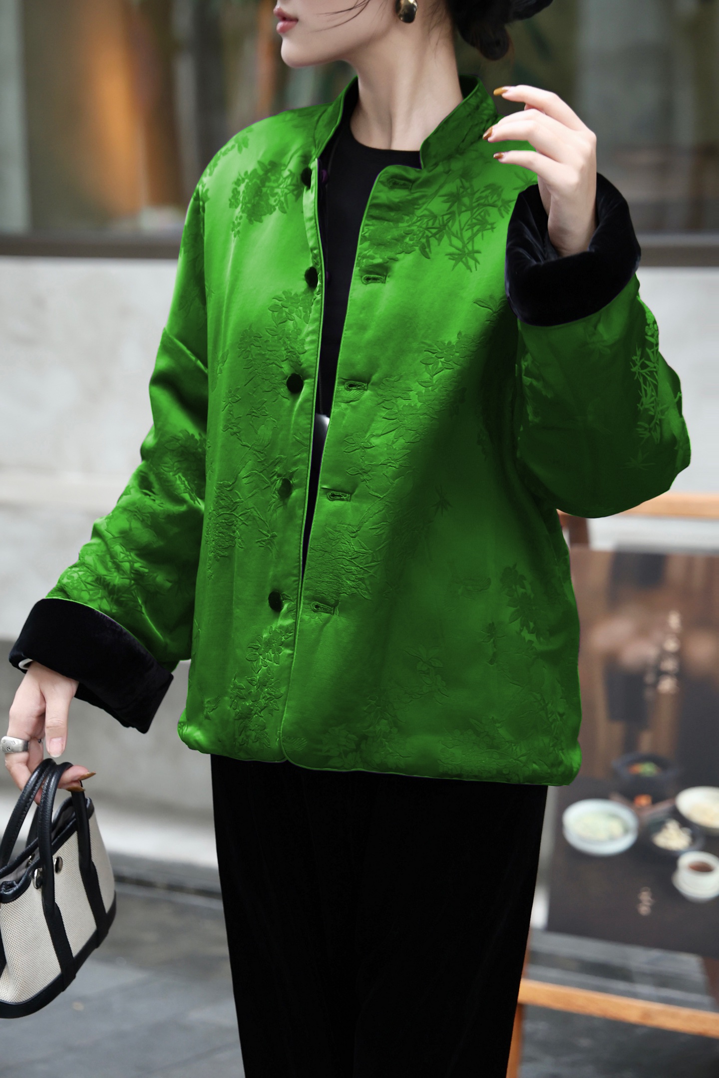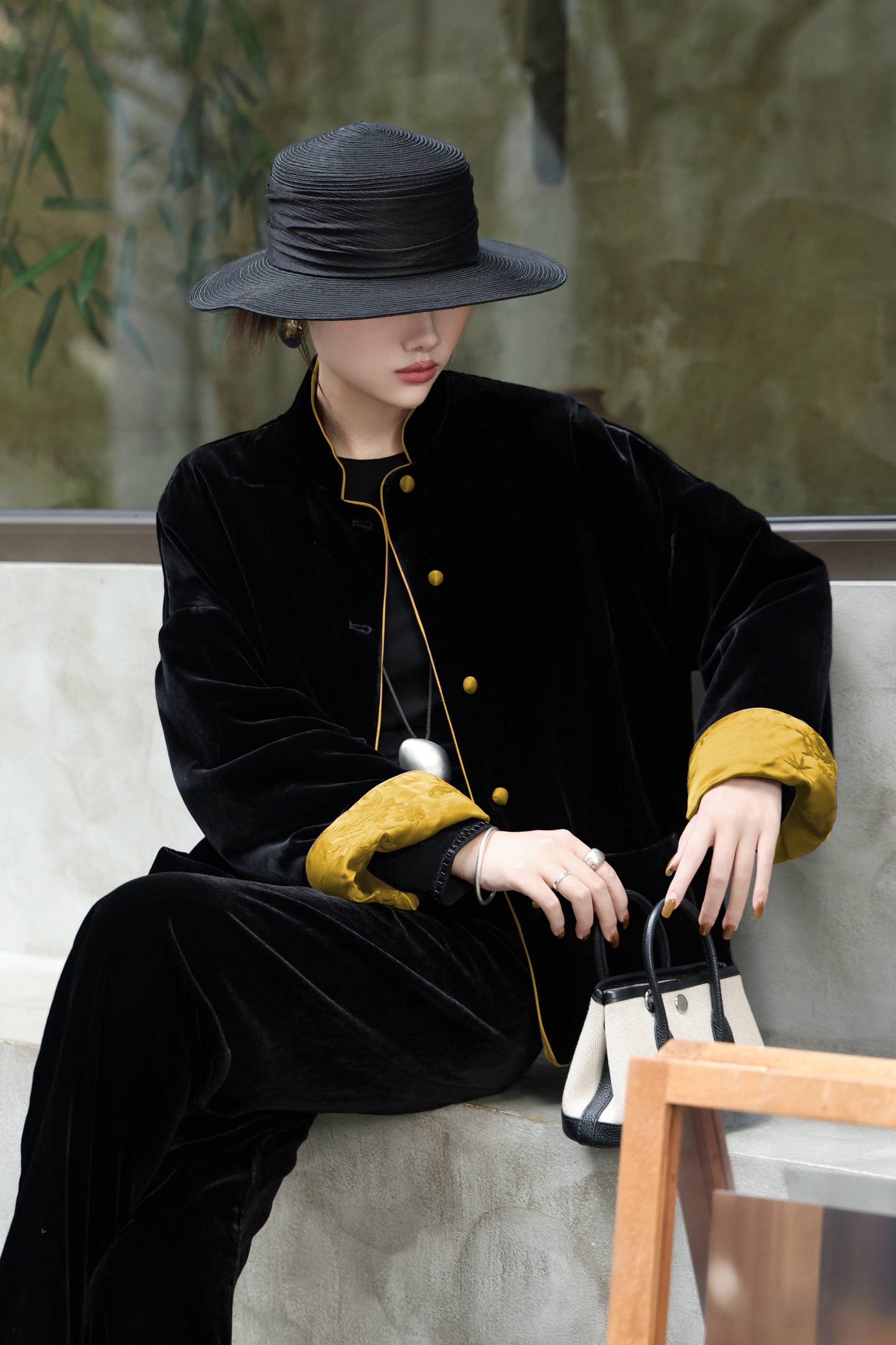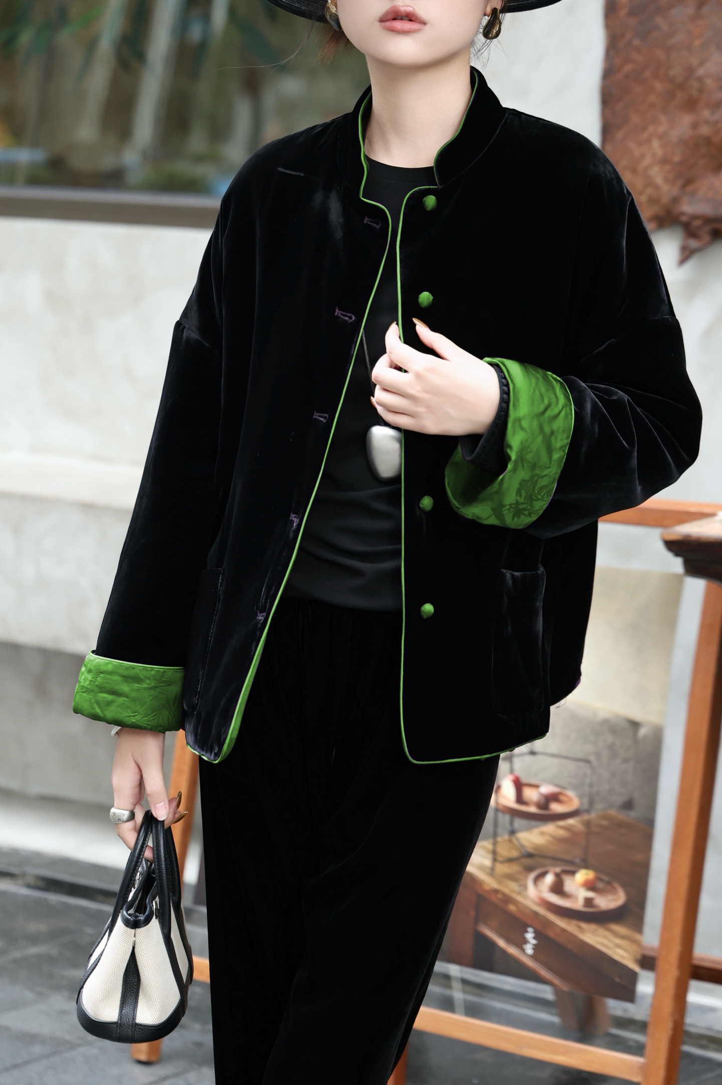 This reversible silk velvet jacket marries comfort, style, and functionality, making it an essential addition to any fashion-forward wardrobe.