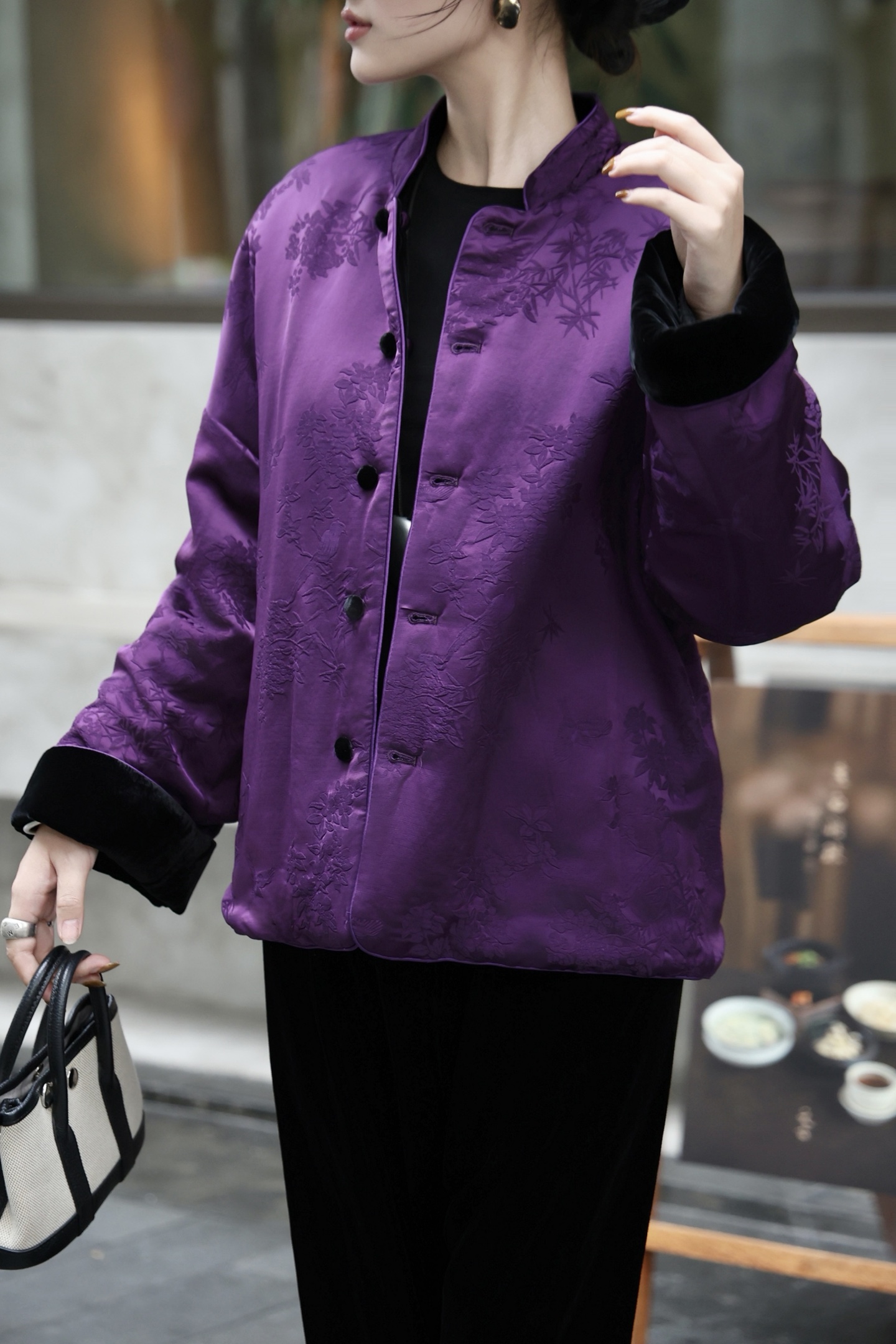 Reversible Silk Velvet Jacket Quilted Cotton Blend Contrast Trim