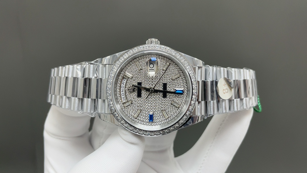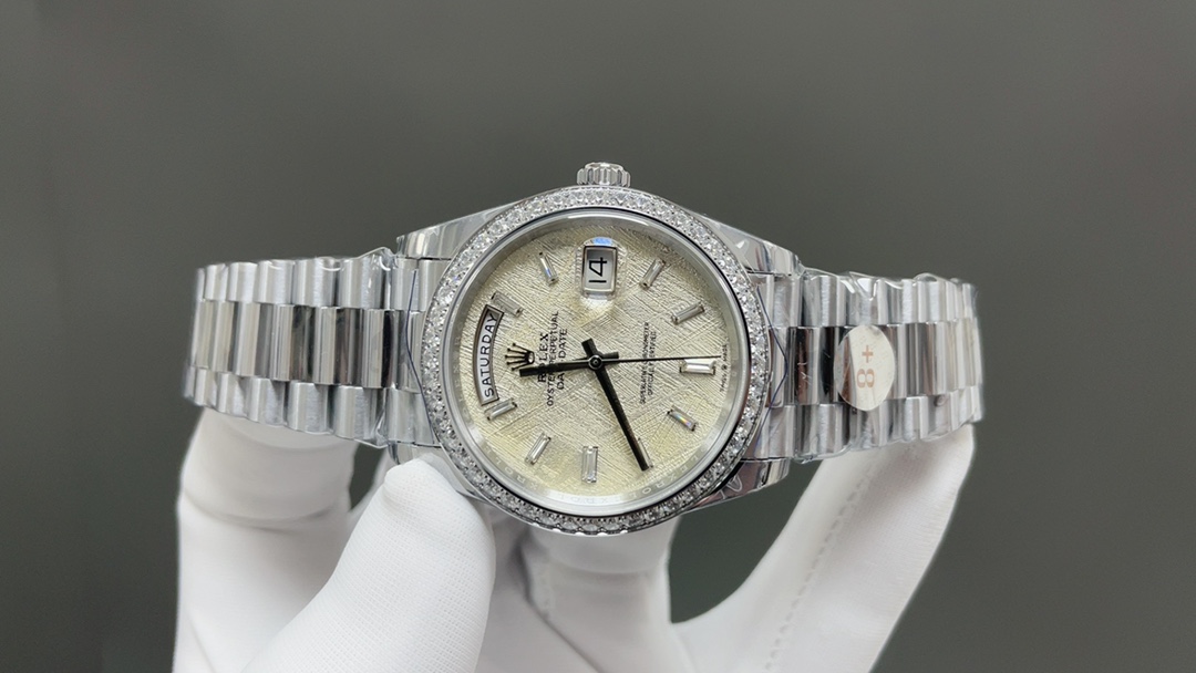 Tags: Automatic Movement Watch, Diamond Bezel Watch, Luxury Watch, Rolex Day-Date watch, Stainless Steel Watch