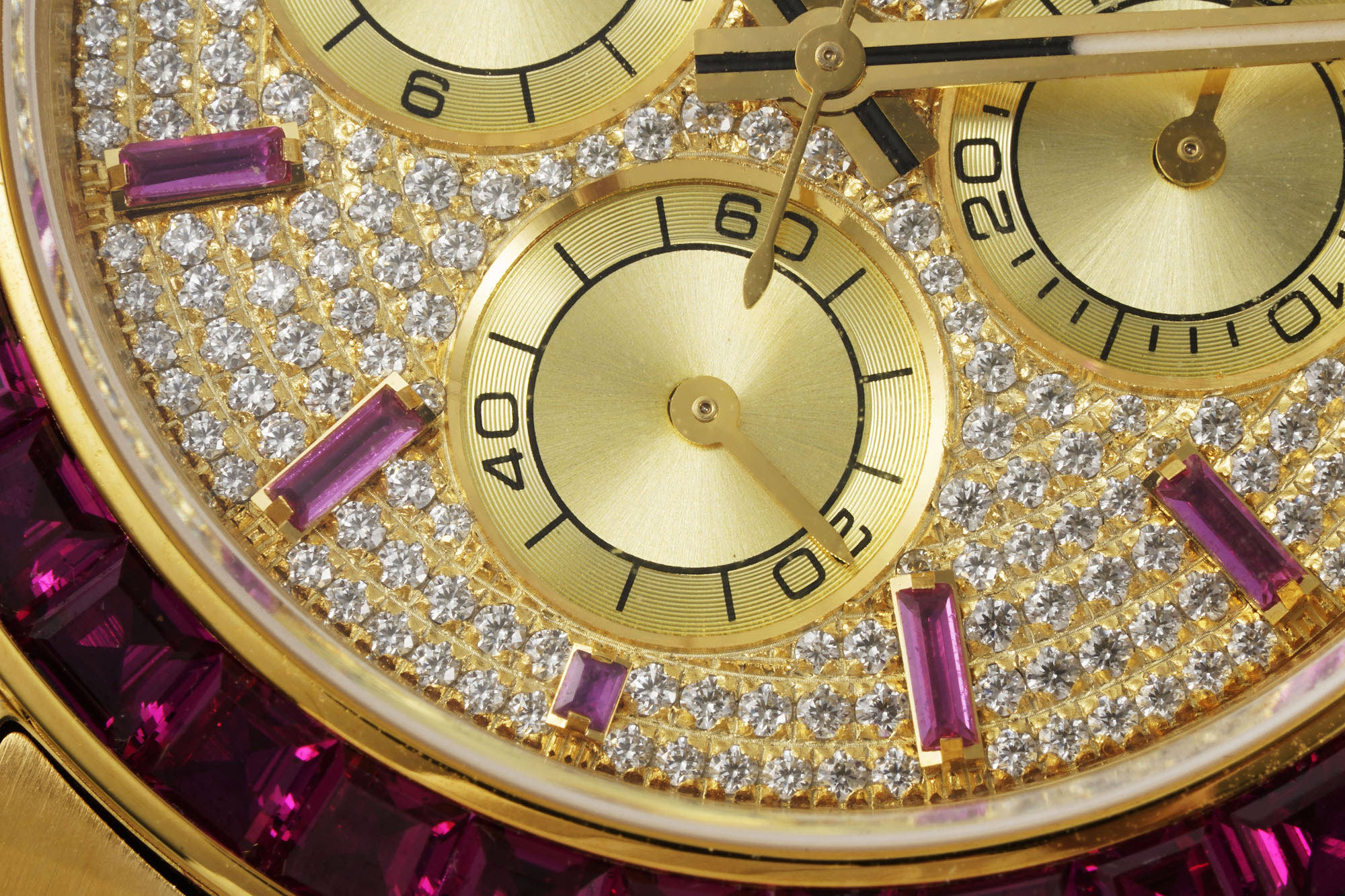 Tags: Cvd Diamond Watch, Designer Diamond Watch, Gemstone Bezel Watch, Gold Chronograph Watch, Luxury Custom Watch, Rolex Daytona Watch